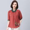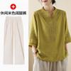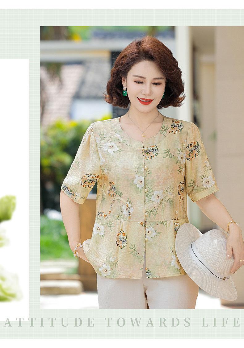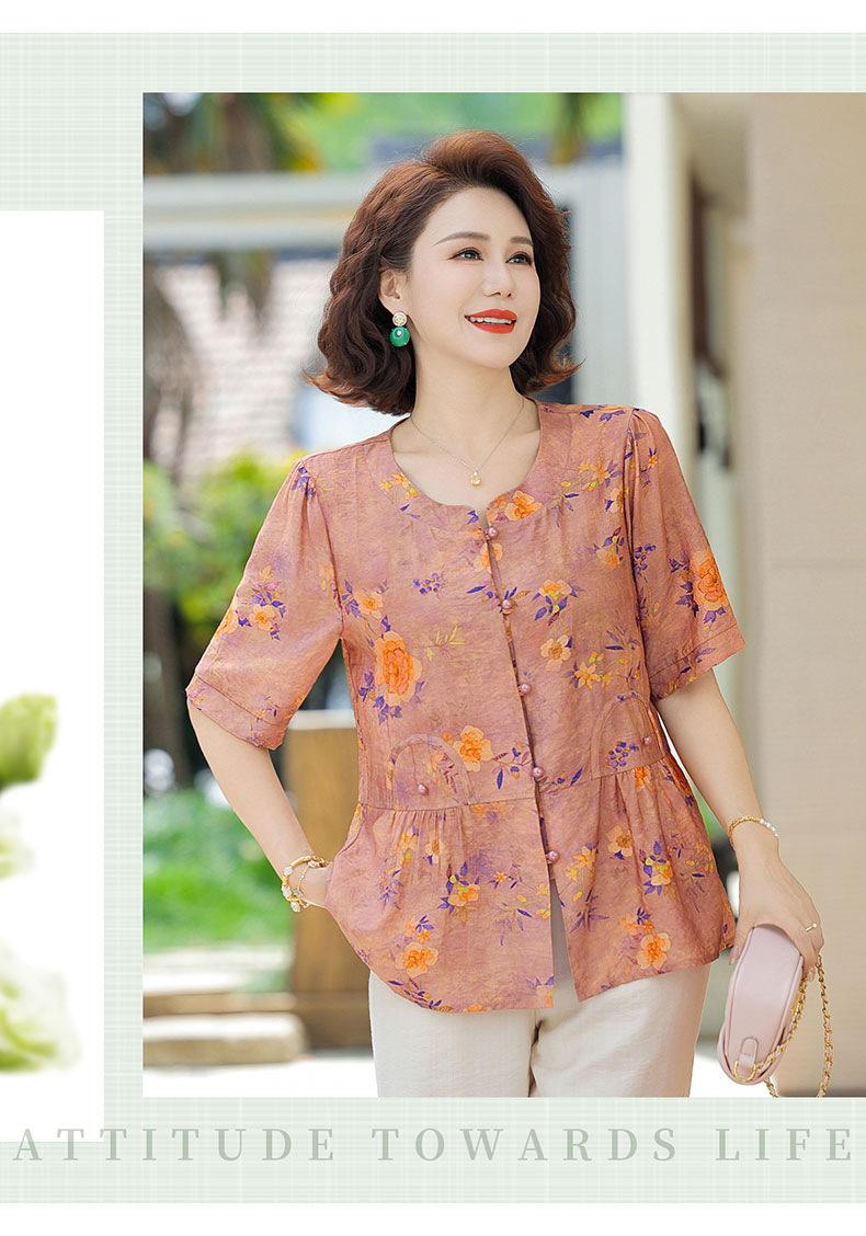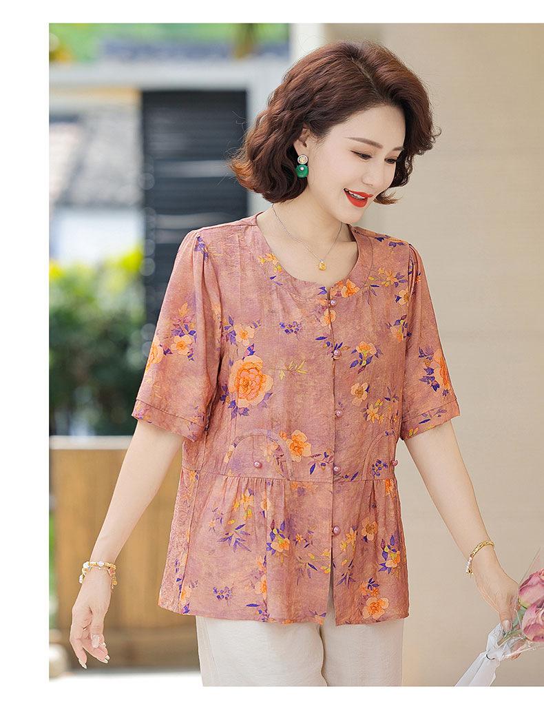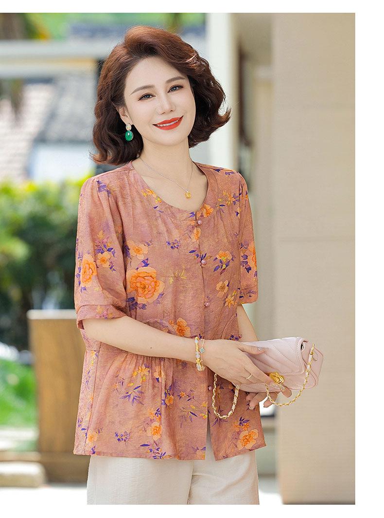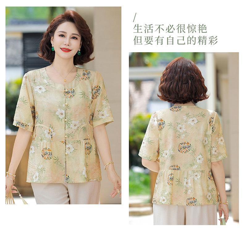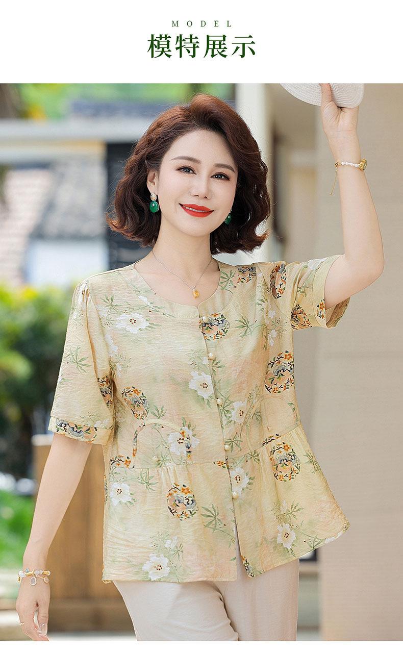 Traje de Camiseta de Manga Corta de Lino Tencel de Verano para Madre 2025 Nuevo para Mujeres de Mediana Edad y Mayores, Camiseta Fina Transpirable