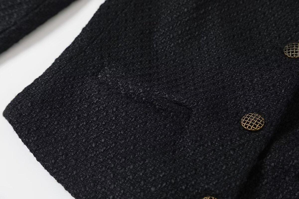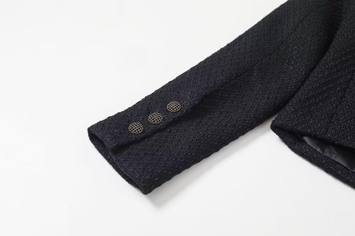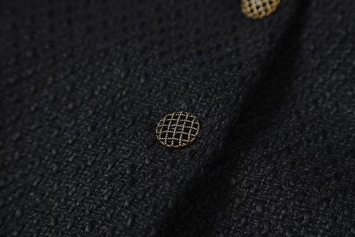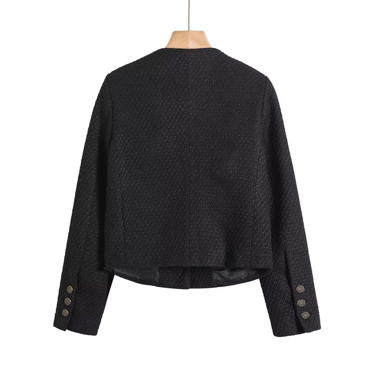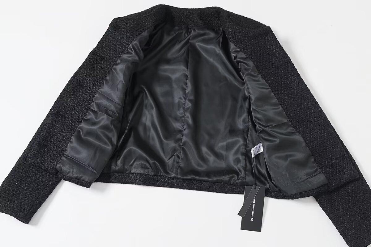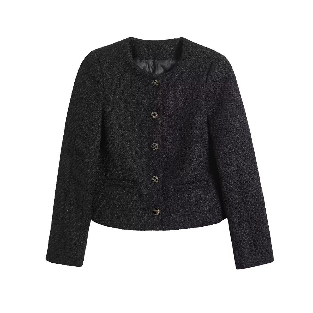 Otoño e Invierno Nuevo Elegante Casual Negro Lana de Bucle Cuello Redondo Holgado Adelgazante Estilo Chanel Abrigo Corto Top para Mujer