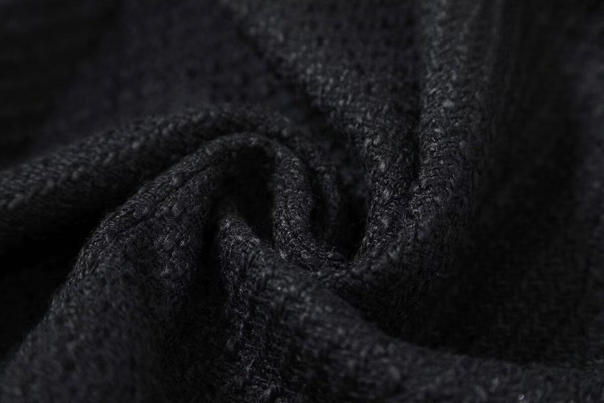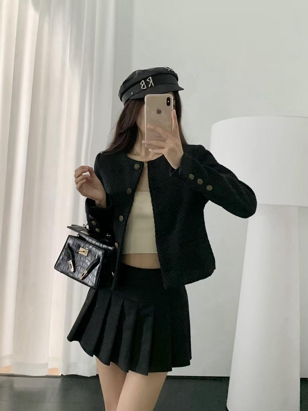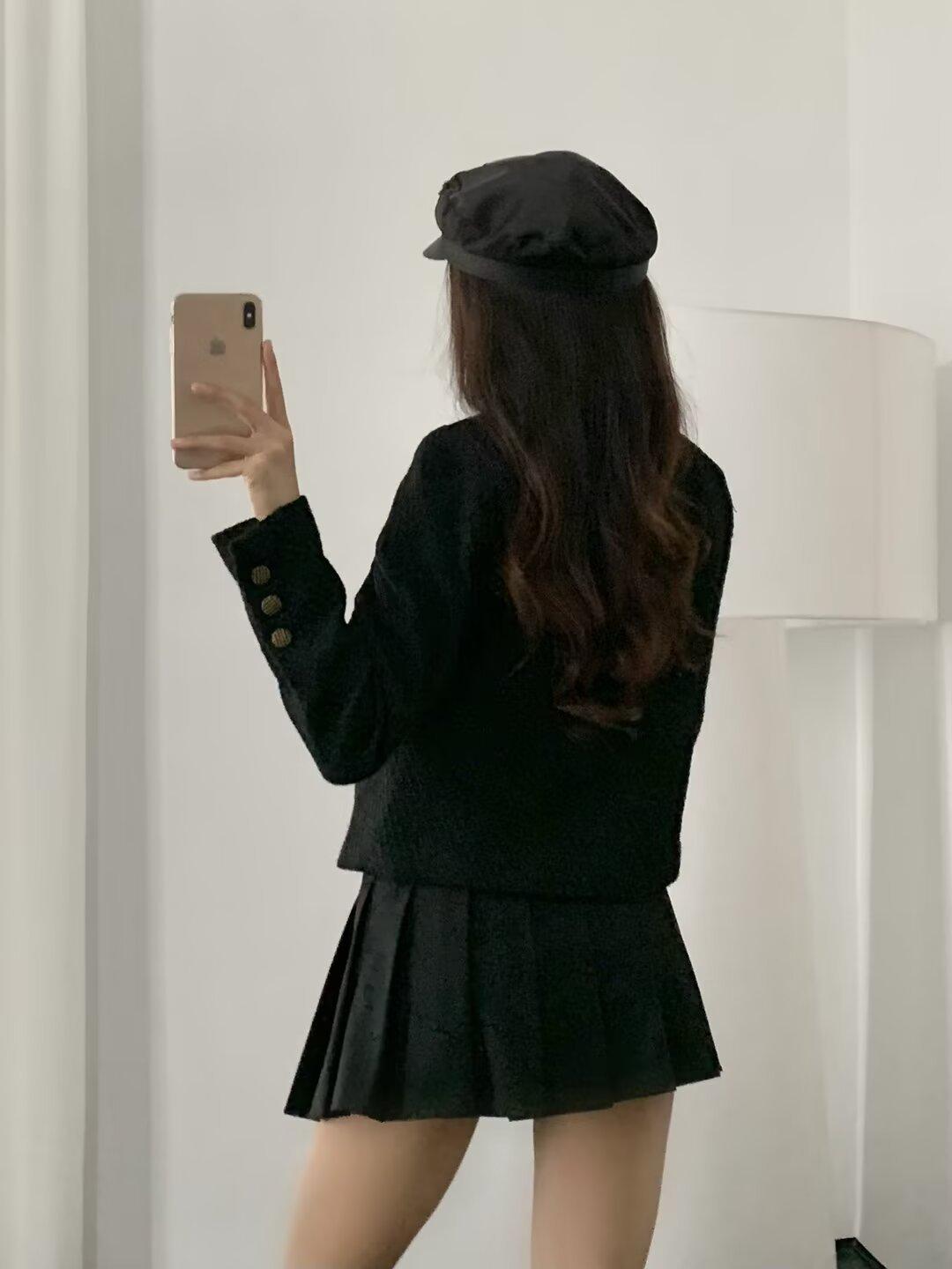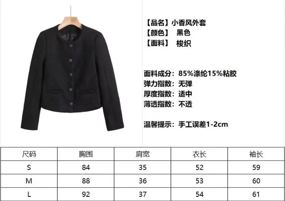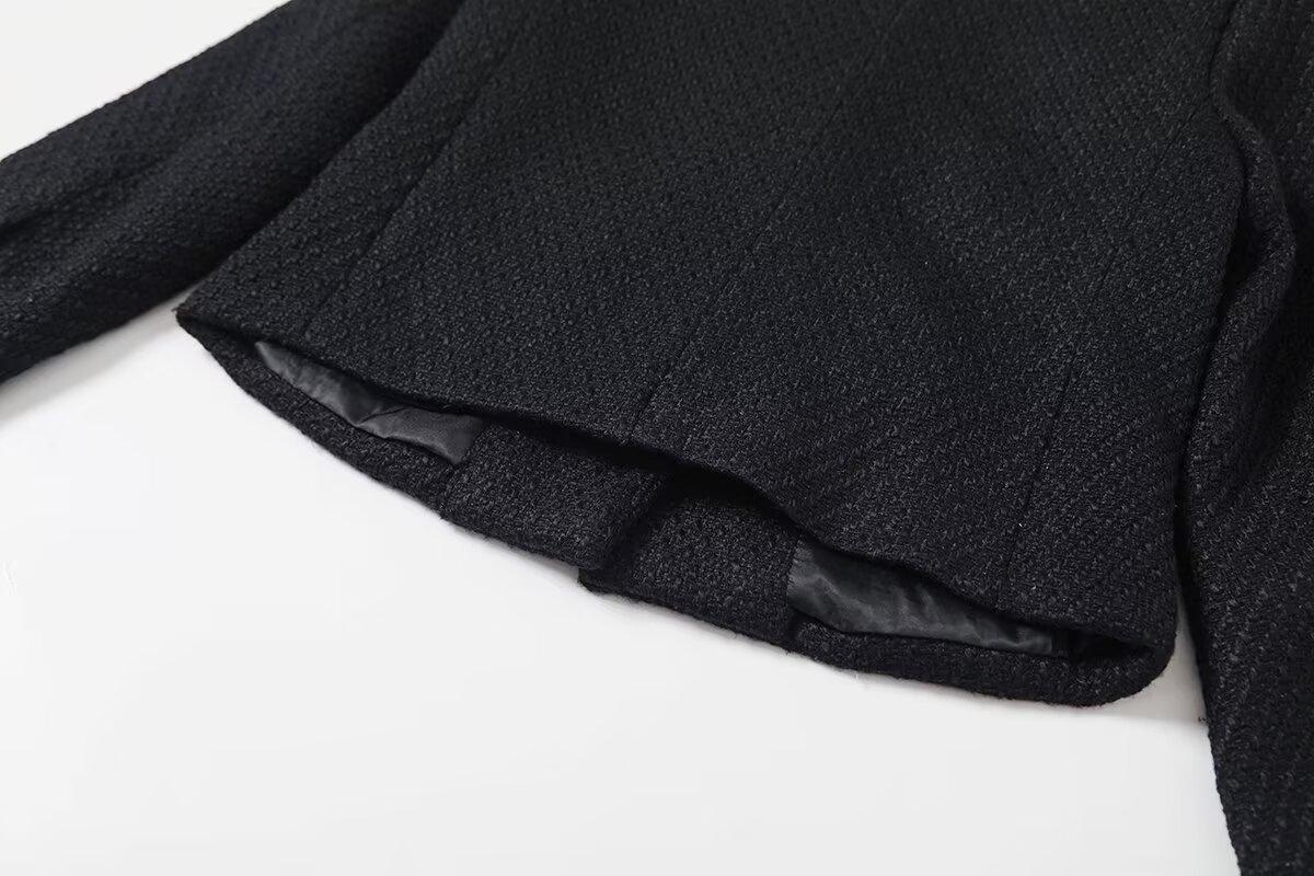 Otoño e Invierno Nuevo Elegante Casual Negro Lana de Bucle Cuello Redondo Holgado Adelgazante Estilo Chanel Abrigo Corto Top para Mujer