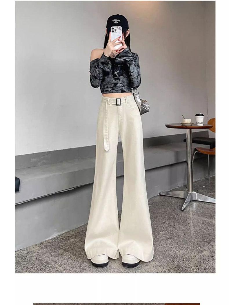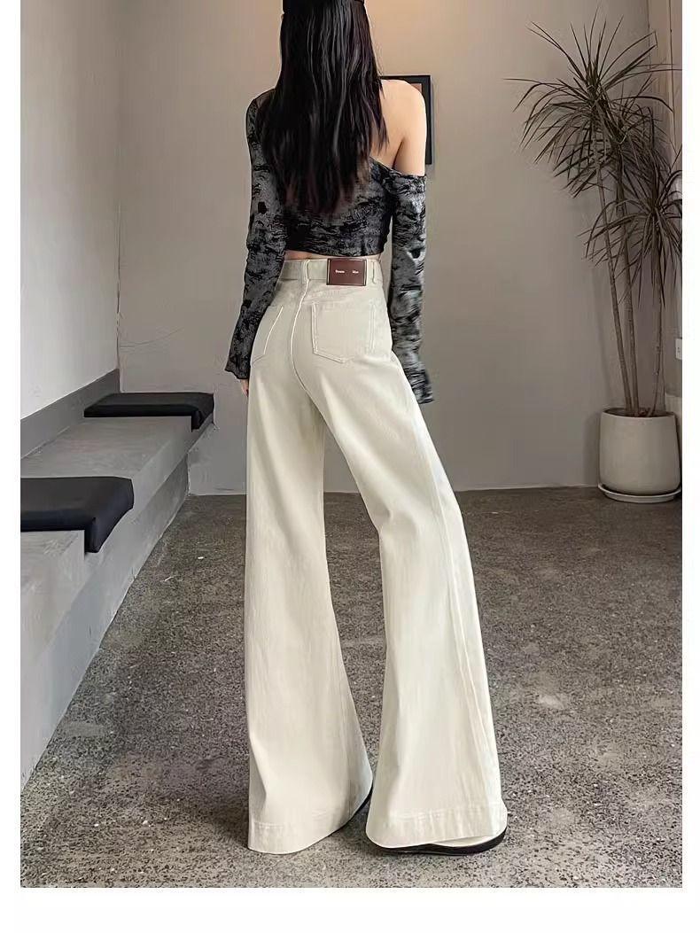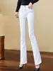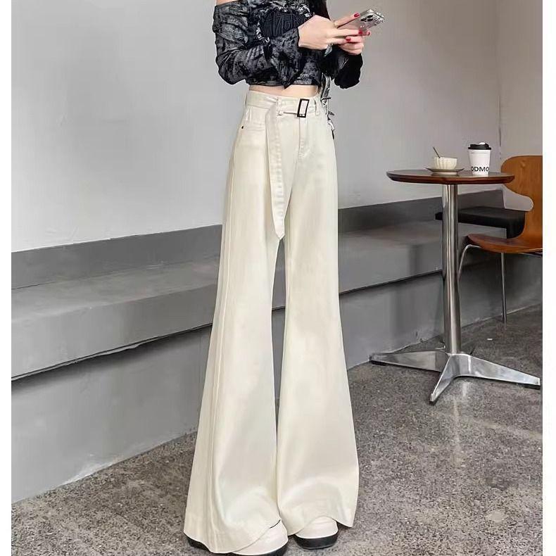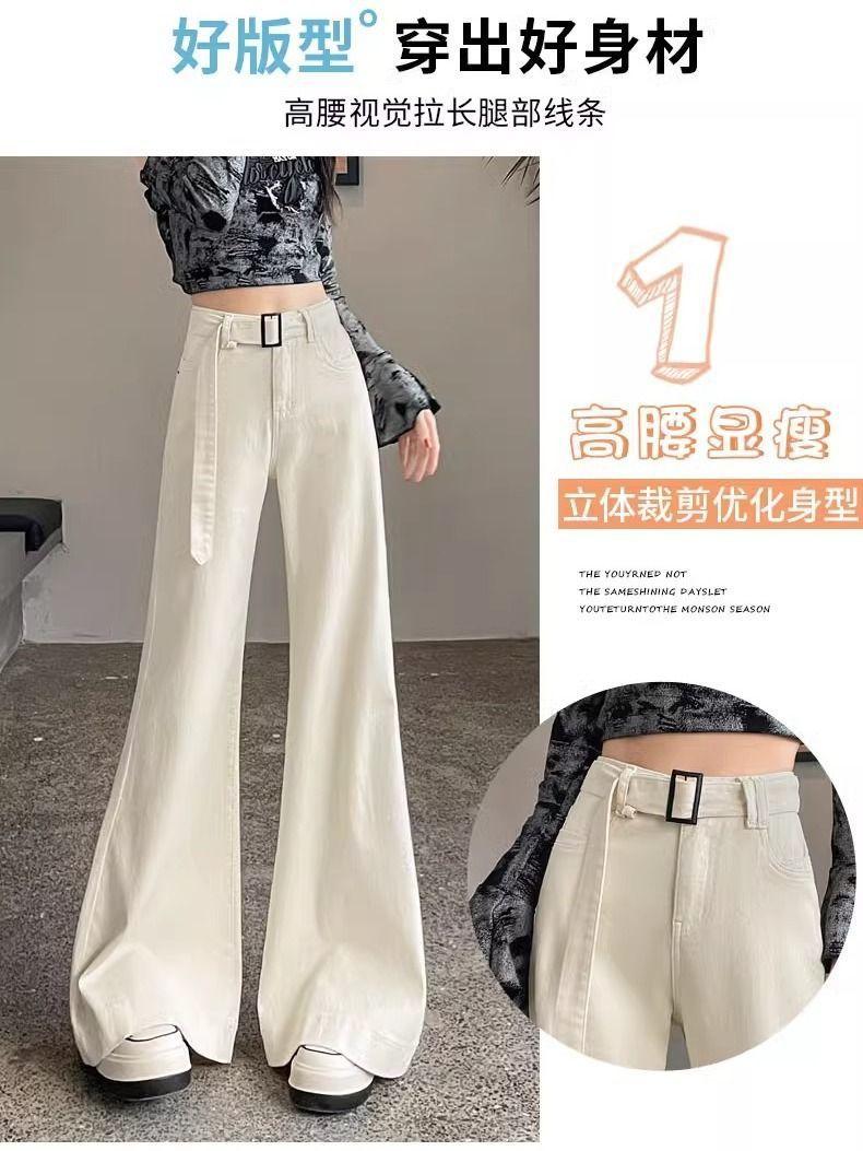 Jeans Versátiles y Elegantes para Mujer 2025 Verano Nuevo Cintura Alta Adelgazantes Talla Grande Elásticos Adelgazantes Pantalones Acampanados Largos hasta el Piso