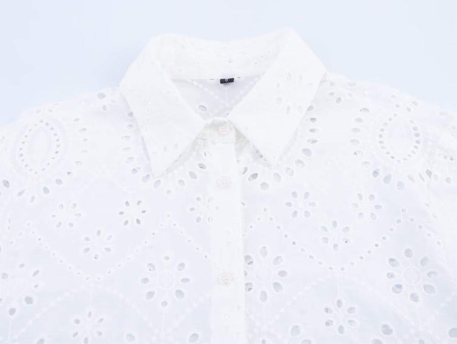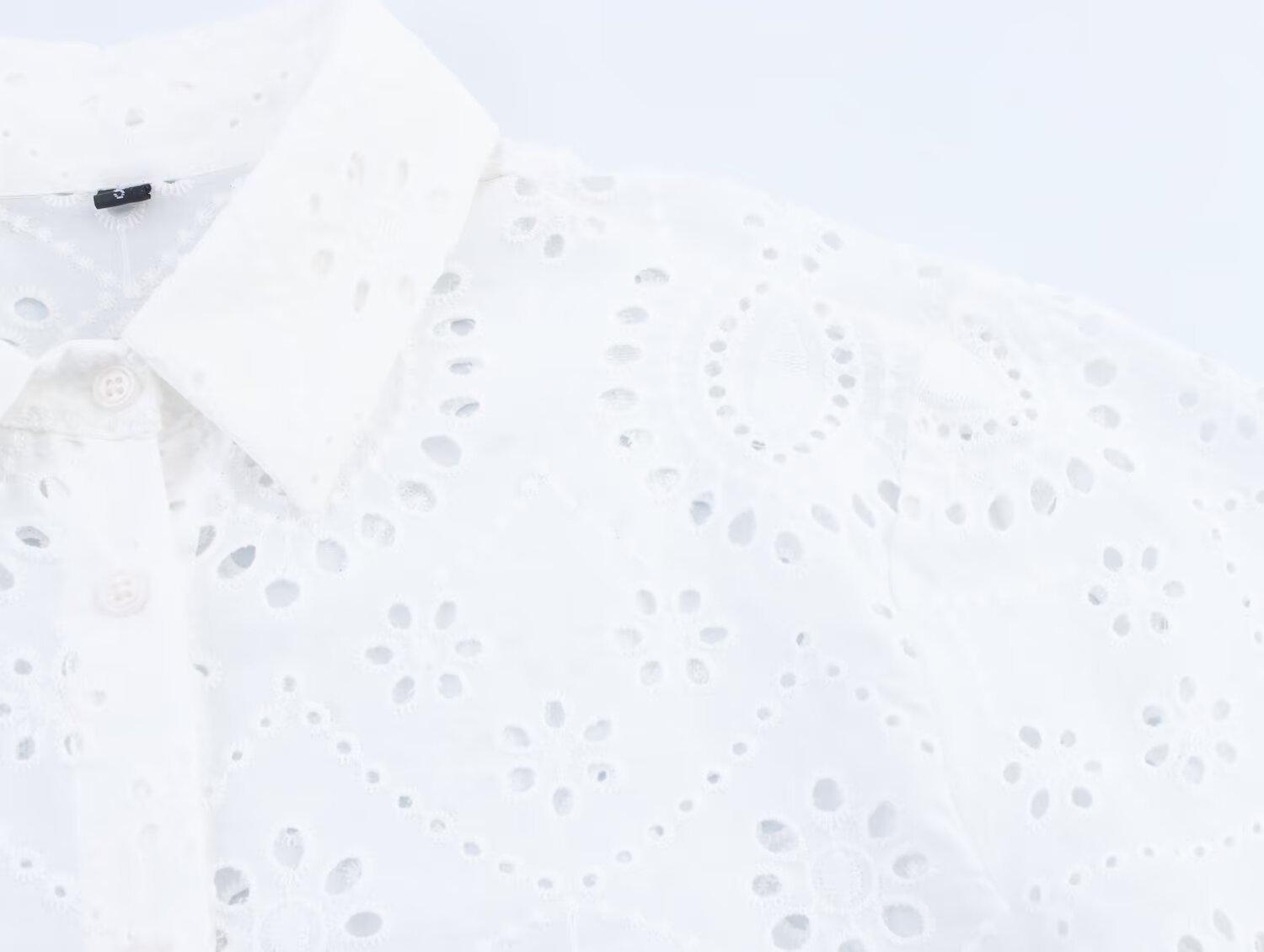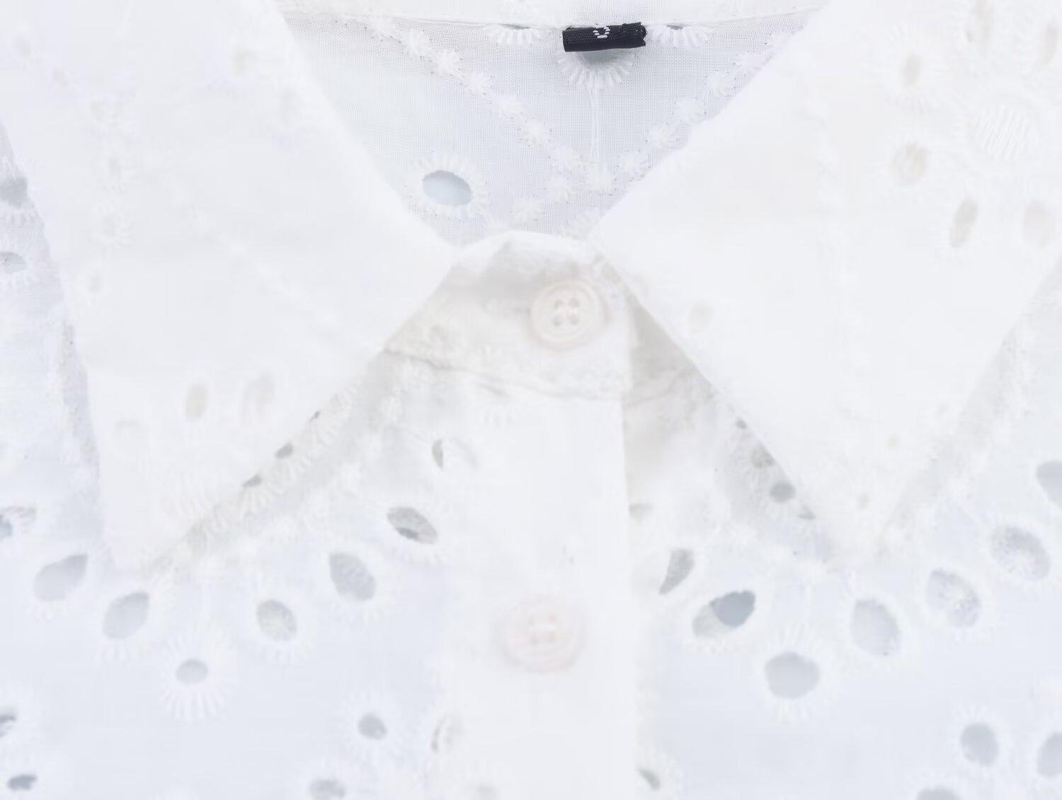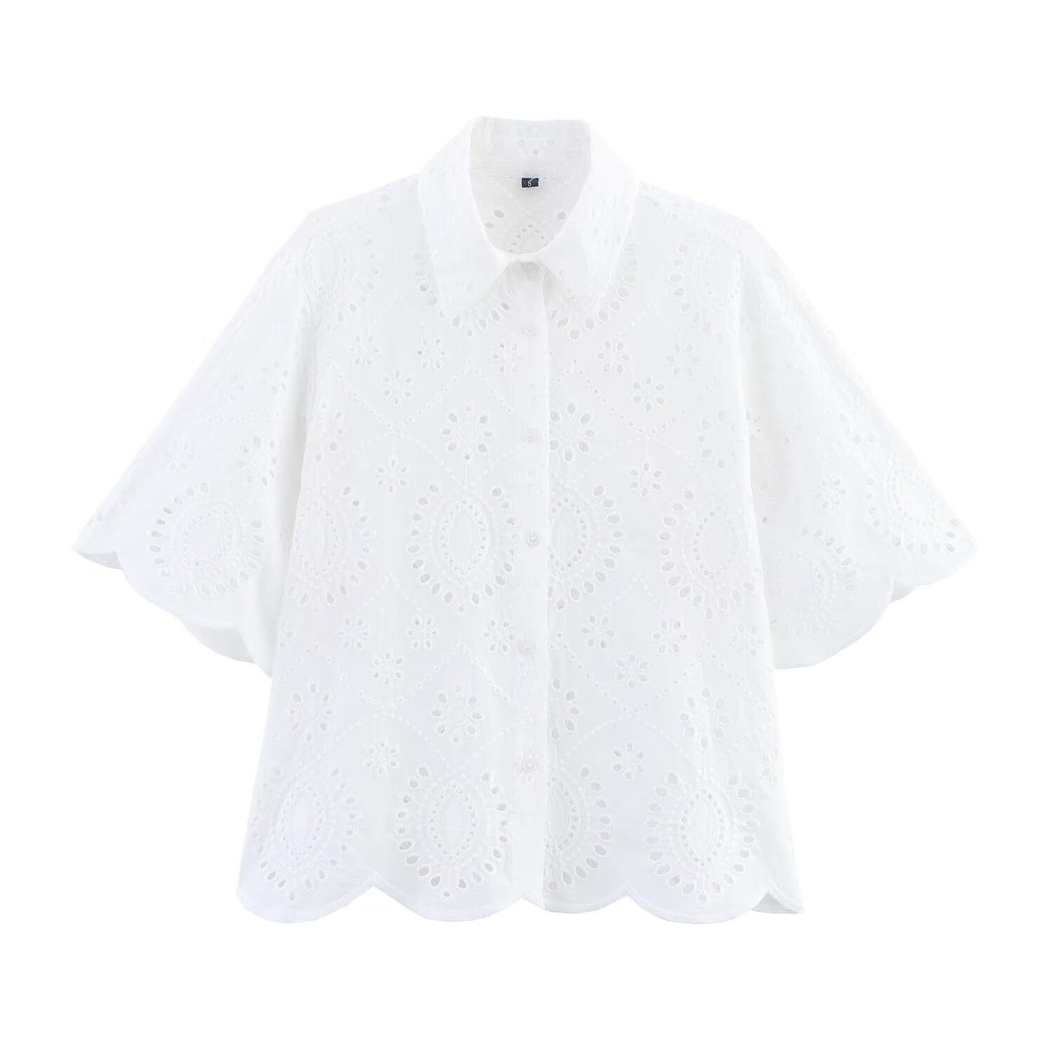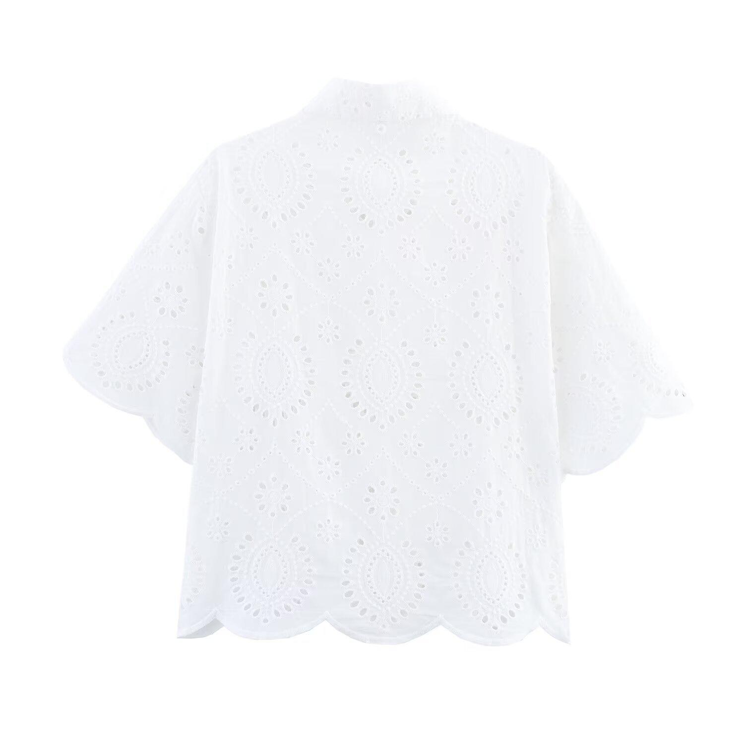 2025 Nueva Ropa de Verano para Mujer Estilo Europeo y Americano Moda Sencilla Versátil Recorte Camisa Bordada 2298116