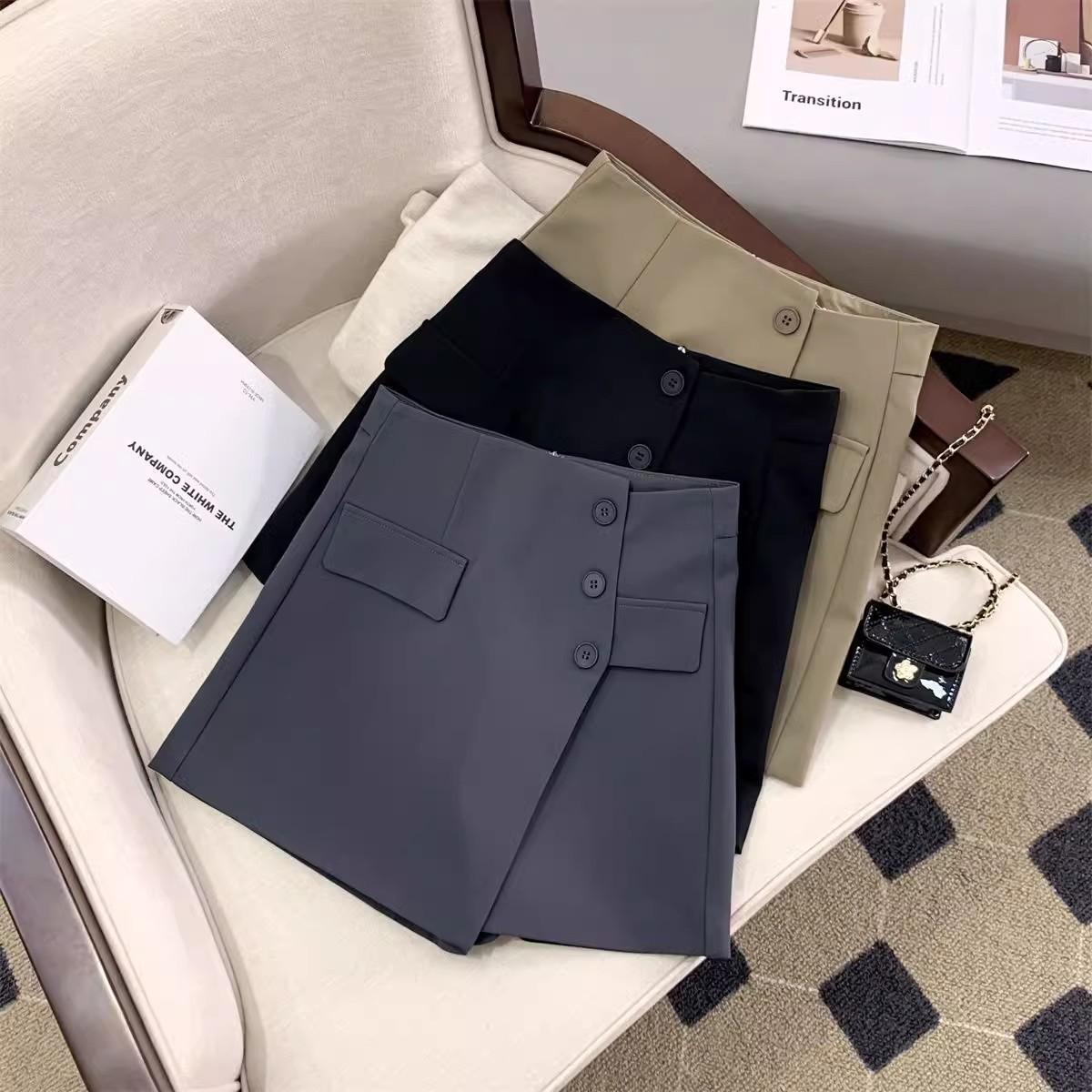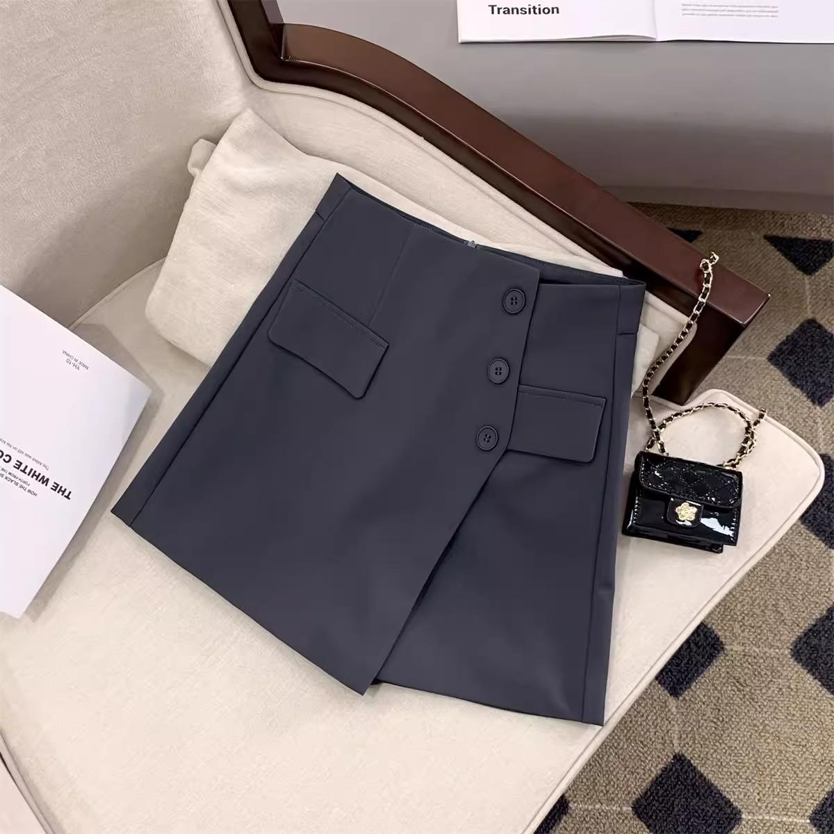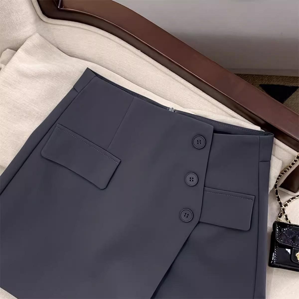 Traje falda pantalón línea A mujer 2025 primavera nuevo adelgazante cintura alta versátil irregular pierna ancha shorts falda