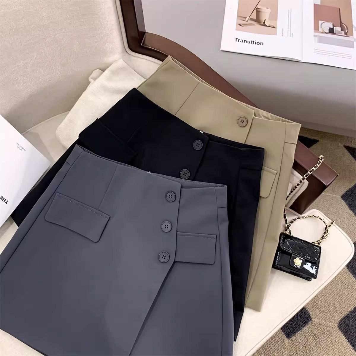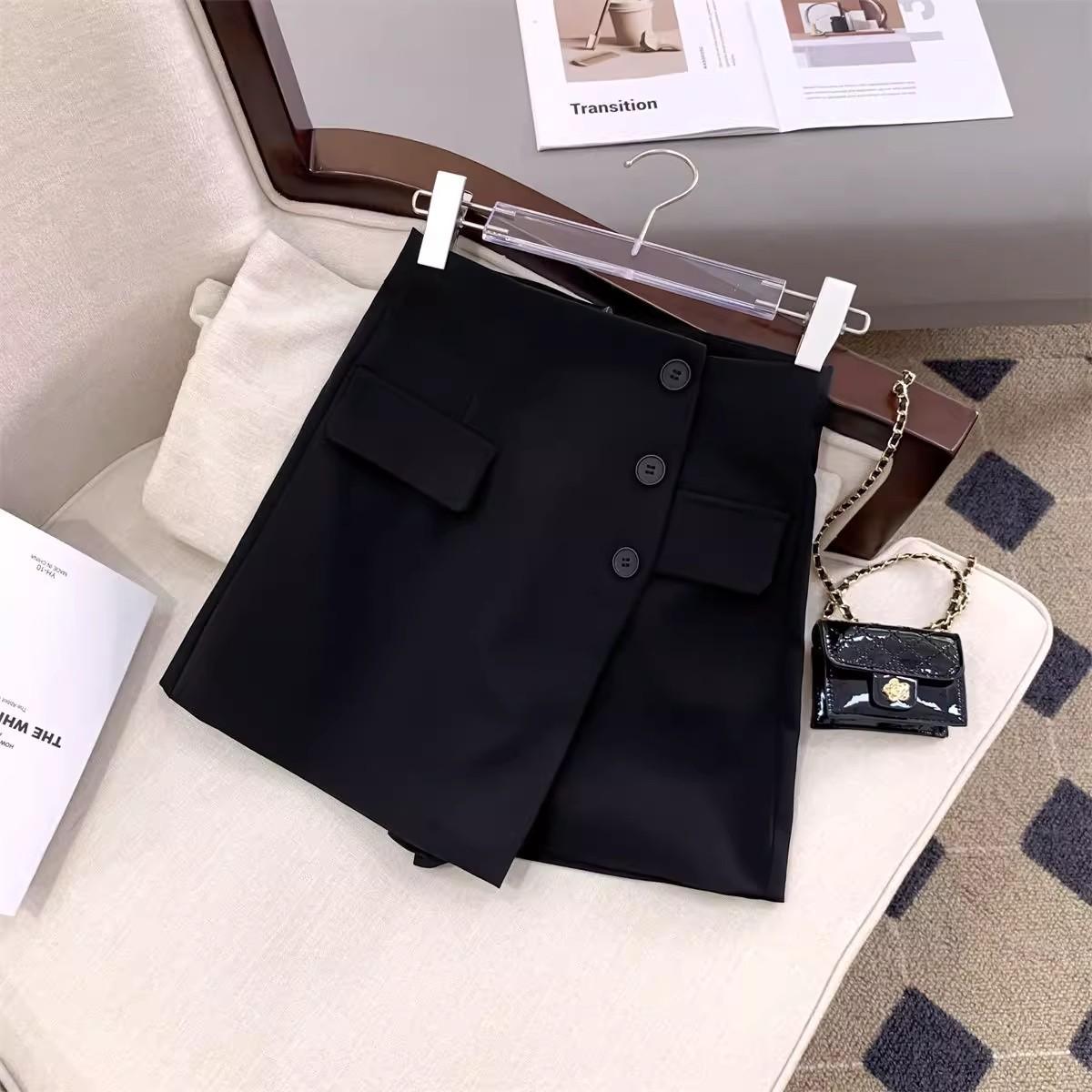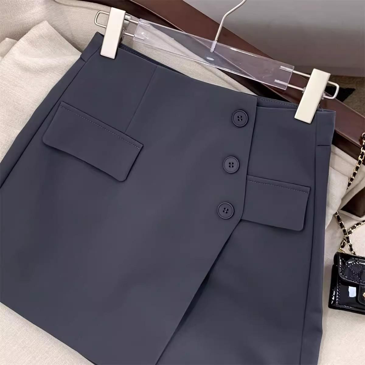 Traje falda pantalón línea A mujer 2025 primavera nuevo adelgazante cintura alta versátil irregular pierna ancha shorts falda