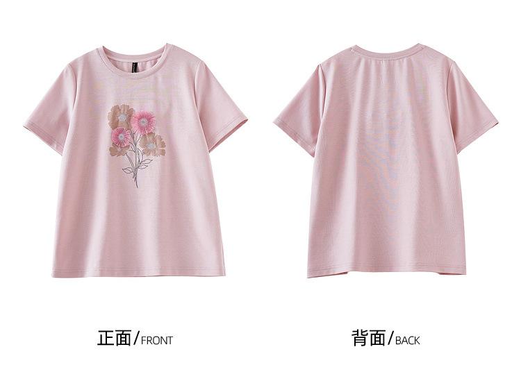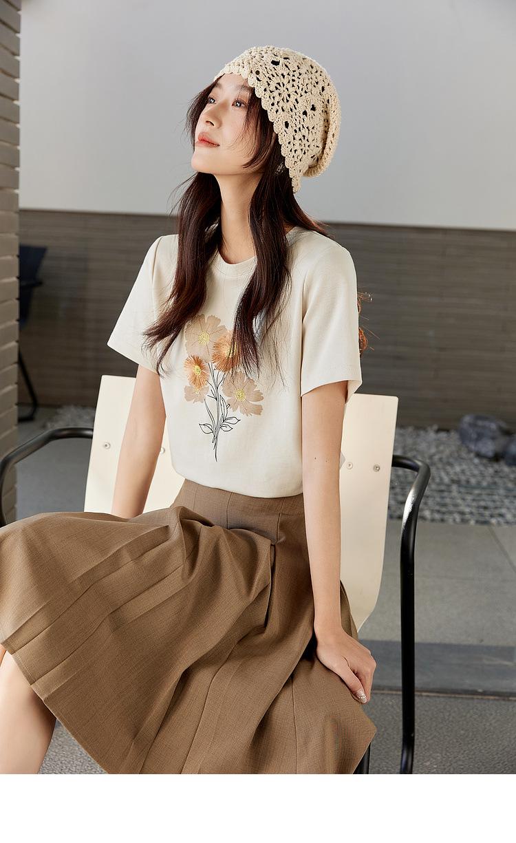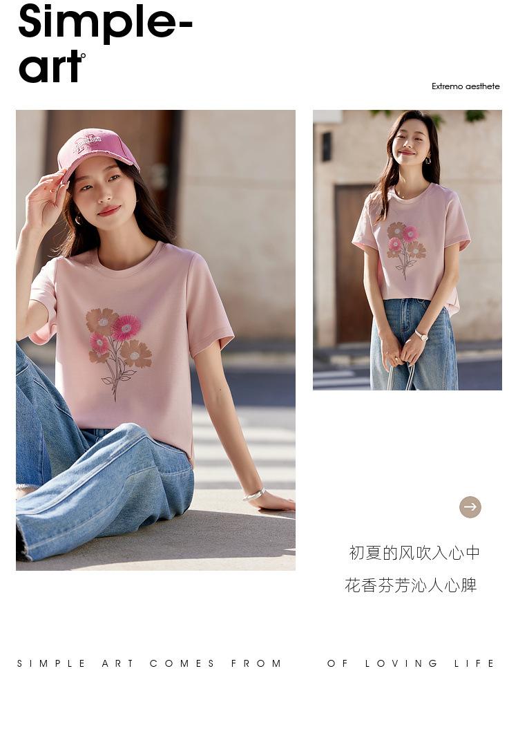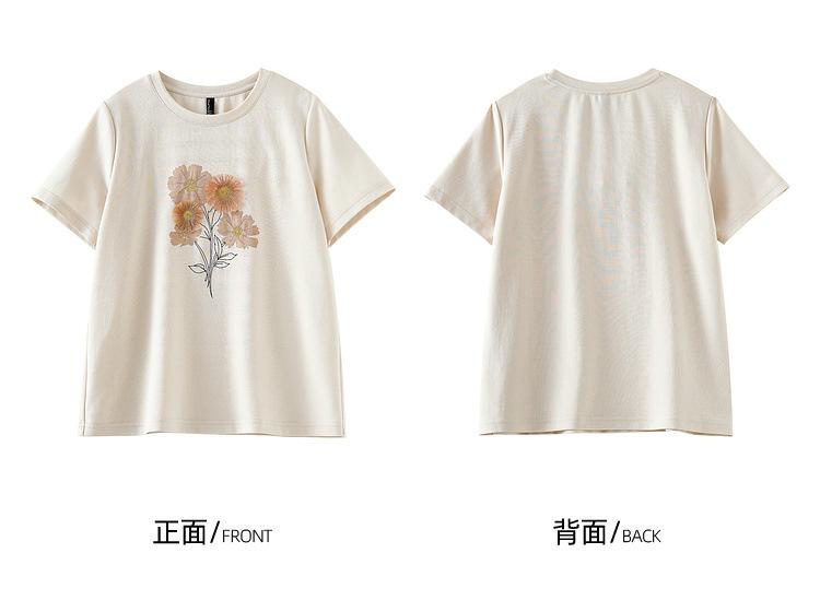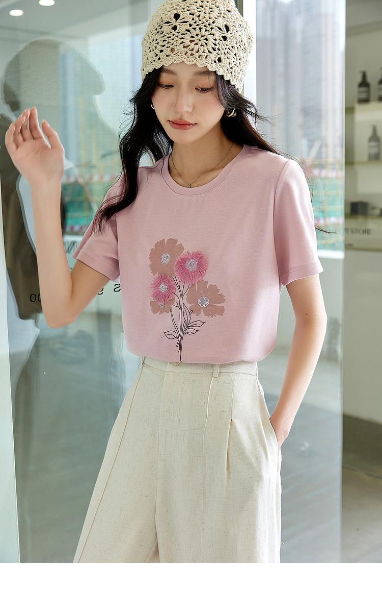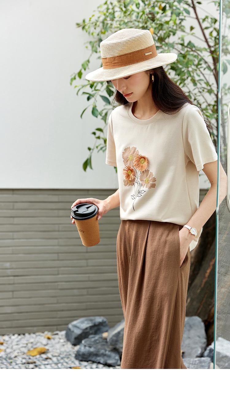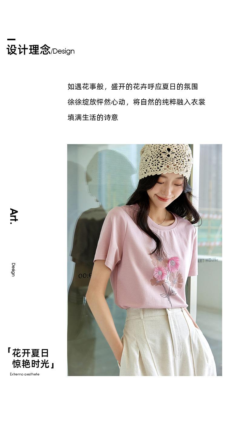 Zhen Xi Nueva Camiseta Bordada para Mujer de Manga Corta con Hombro Casual Suelta Cómoda Moda Top Estampado SQ561