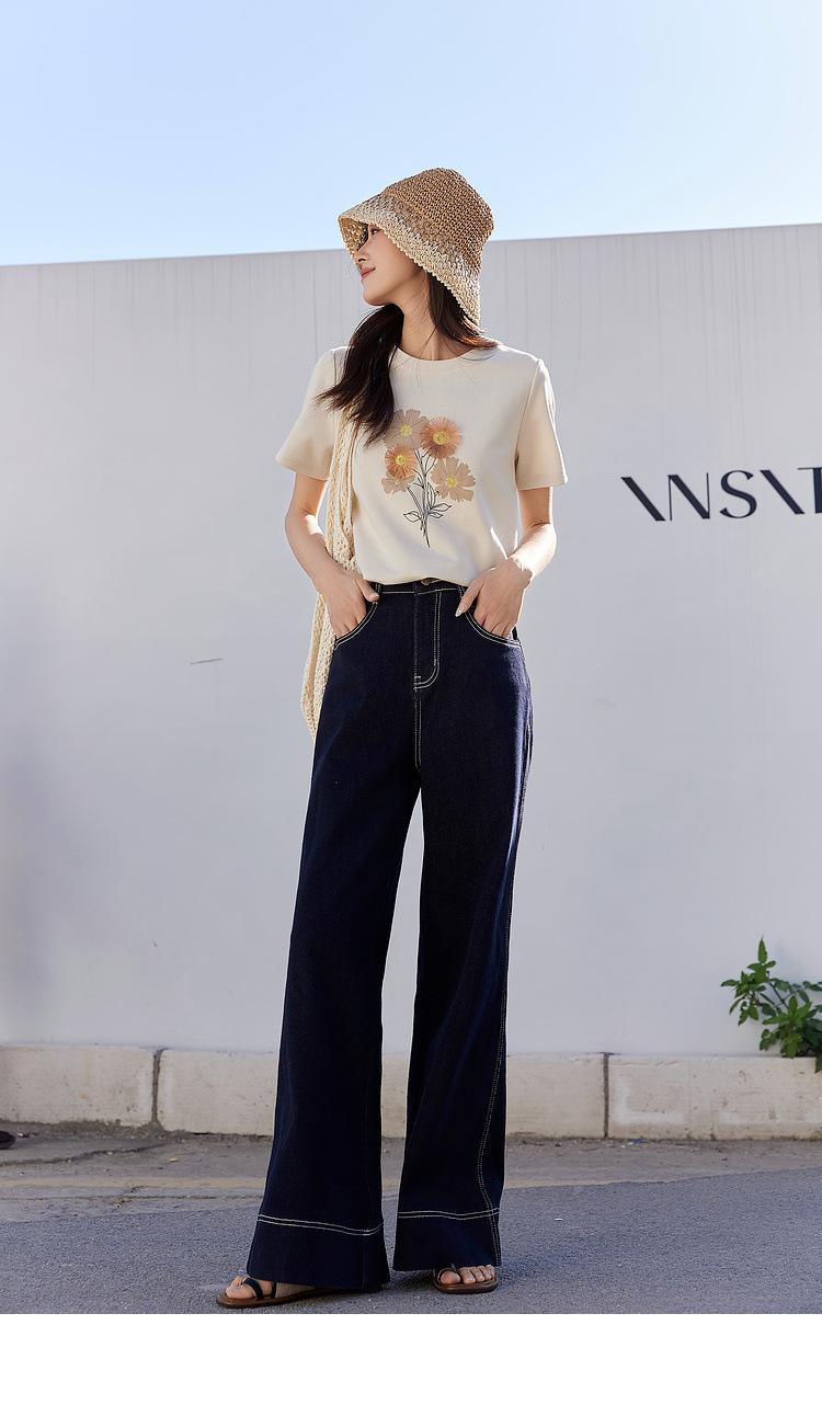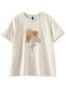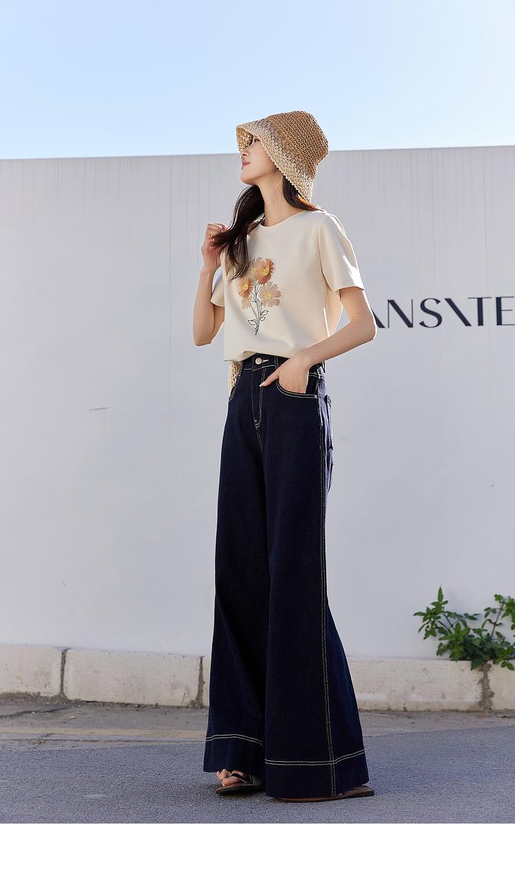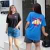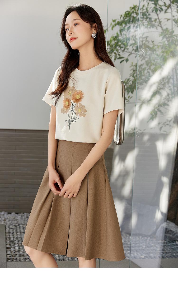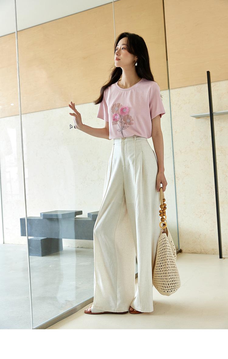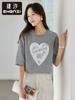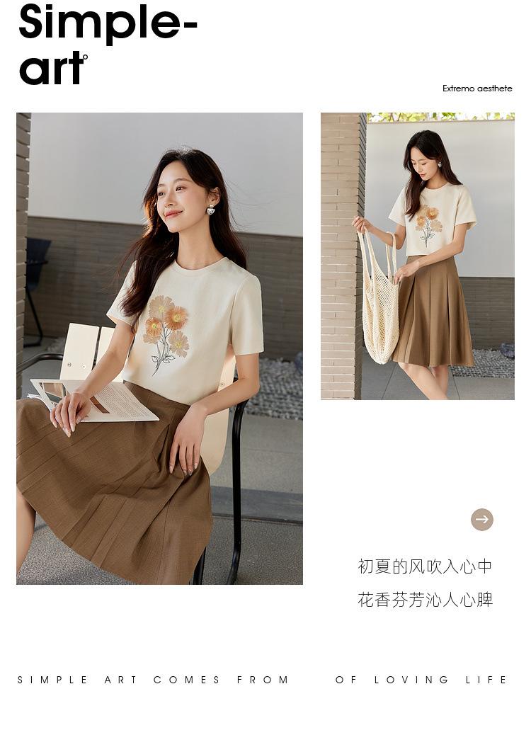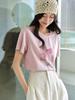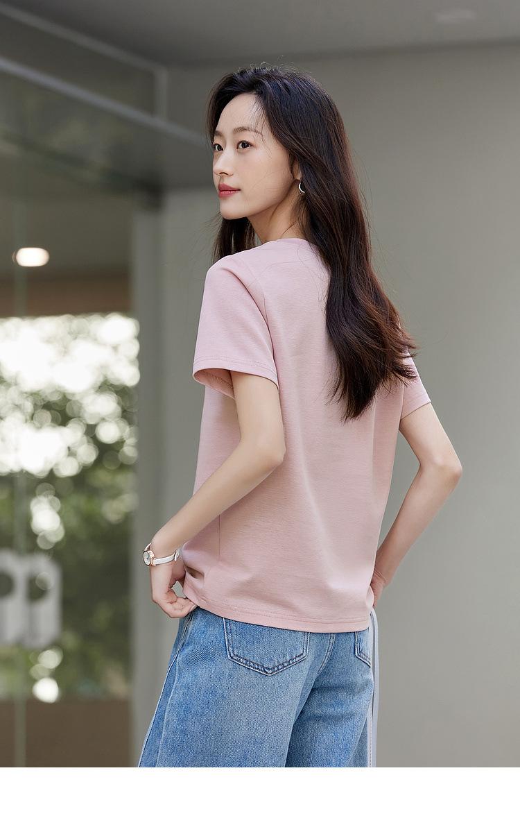 Zhen Xi Nueva Camiseta Bordada para Mujer de Manga Corta con Hombro Casual Suelta Cómoda Moda Top Estampado SQ561