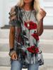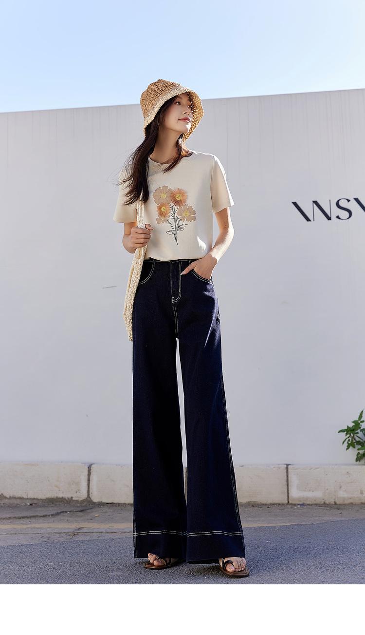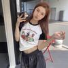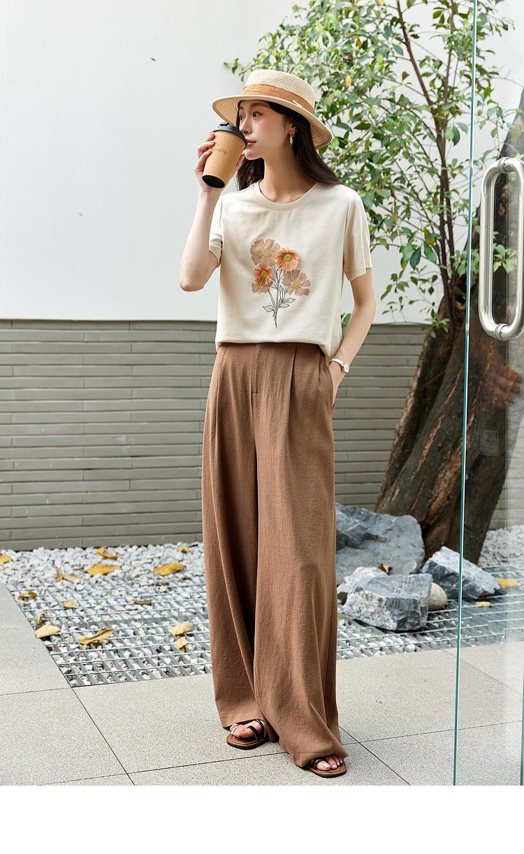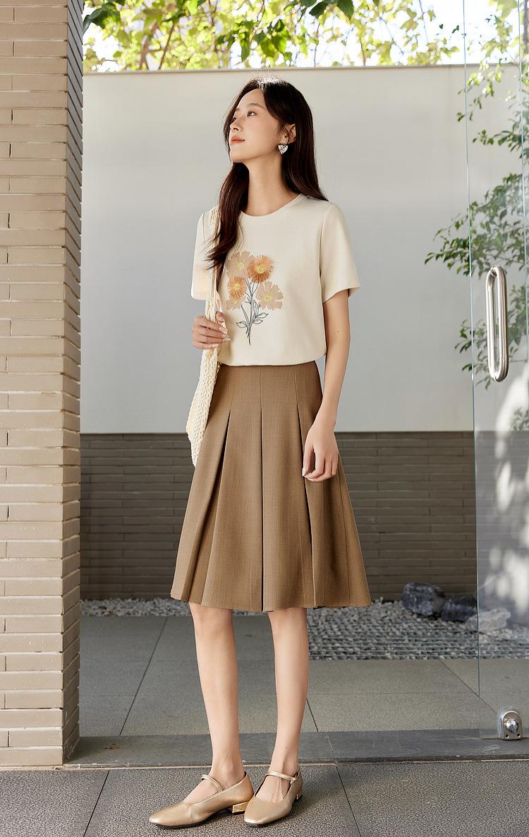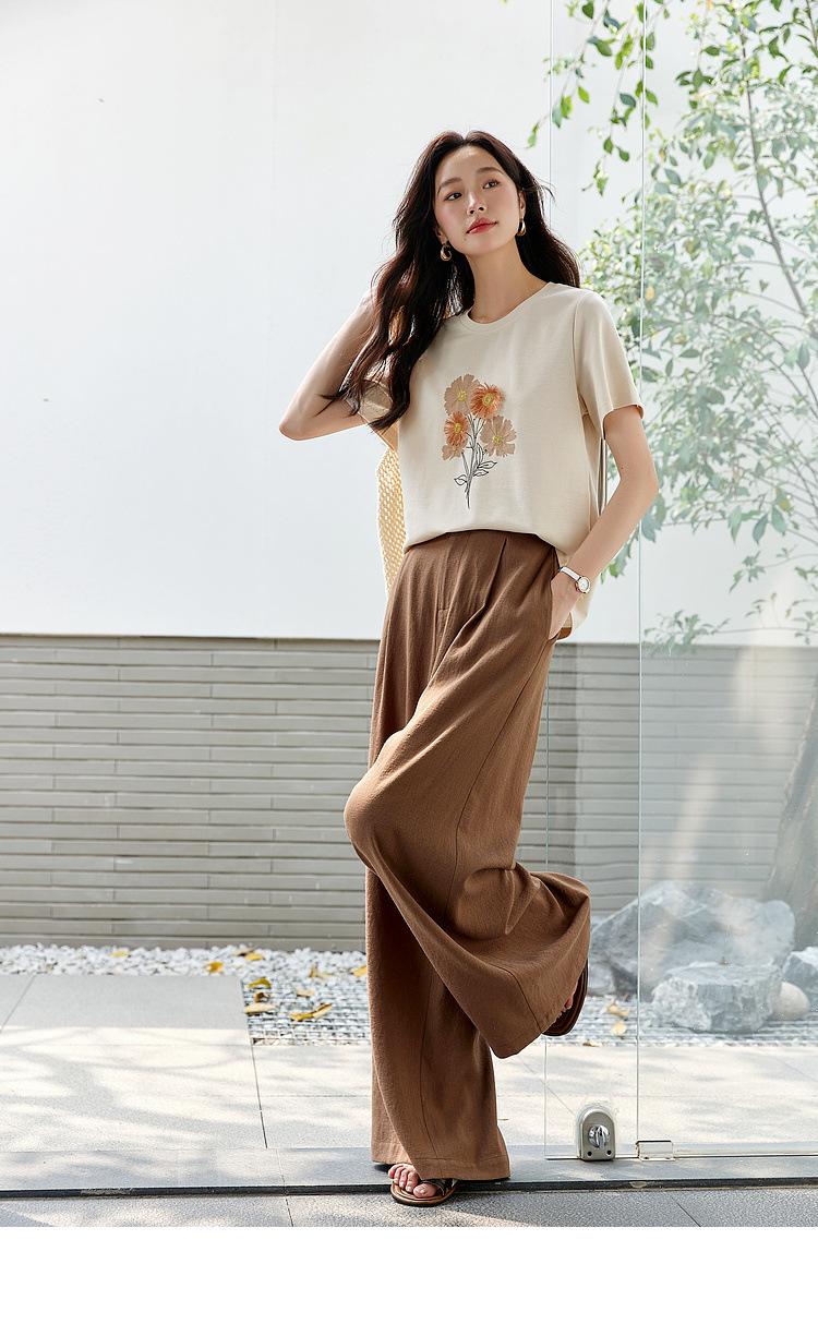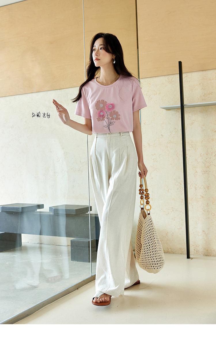 Zhen Xi Nueva Camiseta Bordada para Mujer de Manga Corta con Hombro Casual Suelta Cómoda Moda Top Estampado SQ561
