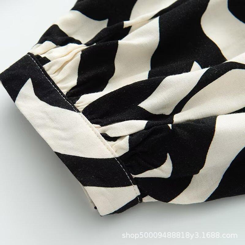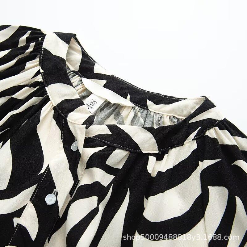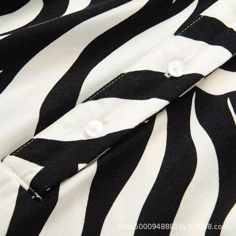 Comercio Exterior Verano para Mujer Nuevo Estilo Europeo y Americano Moda Estampado Elegante Transpirable Suelto Camisa de Manga Larga con Botón