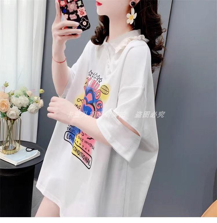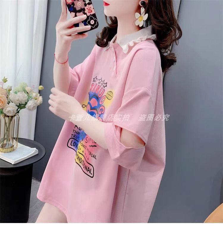 Playera de Manga Corta con Cuello Polo de Diseño Moderno para Mujer, Nuevo Estilo de Verano, Top Juvenil de Media Manga, Moda Ins