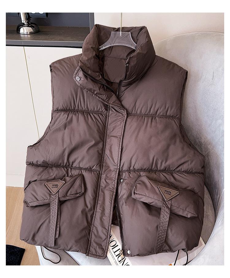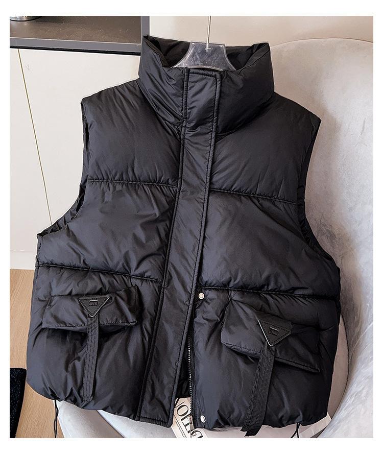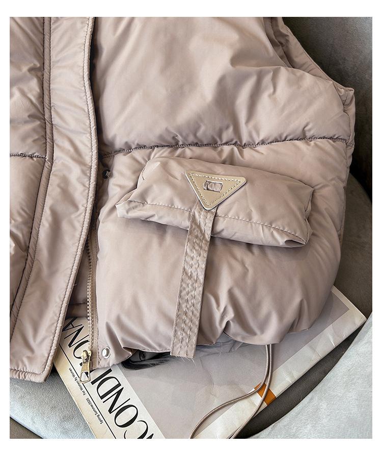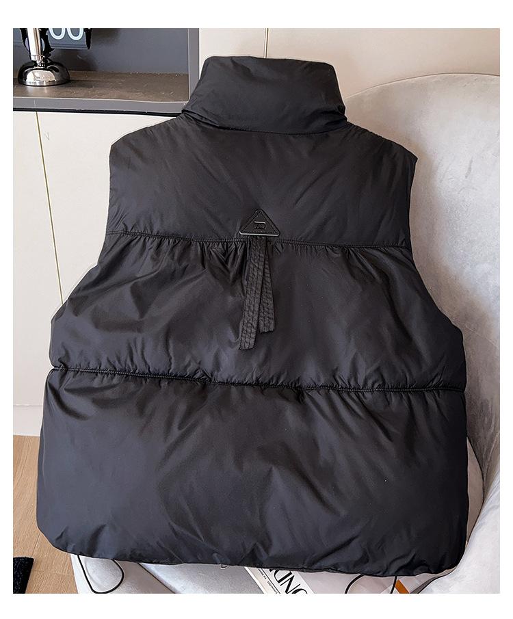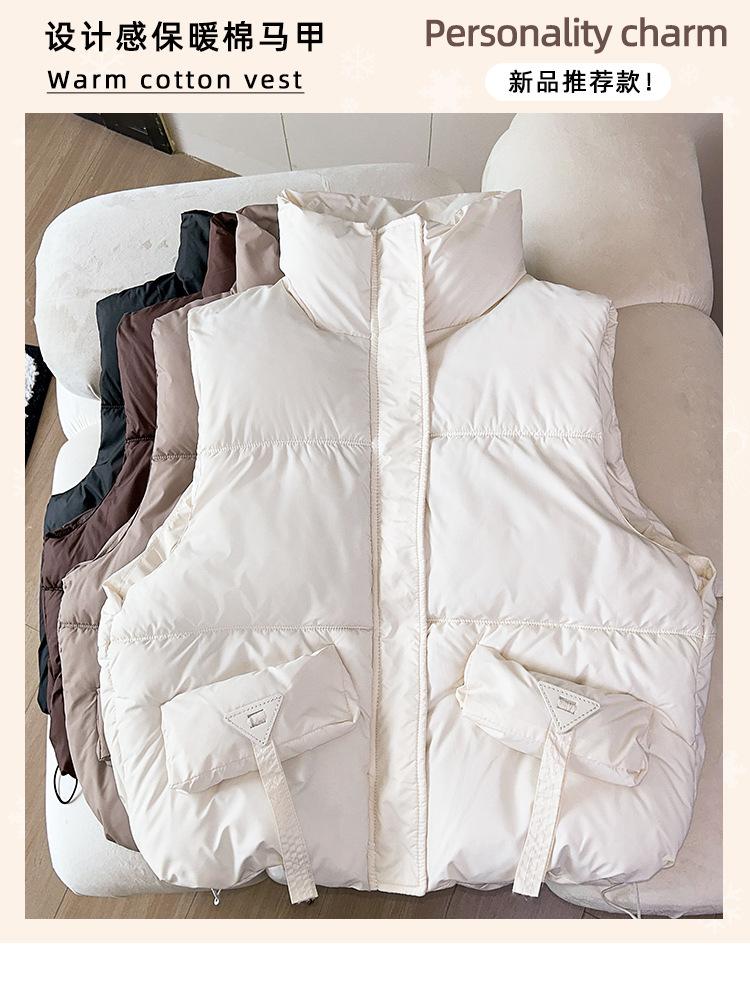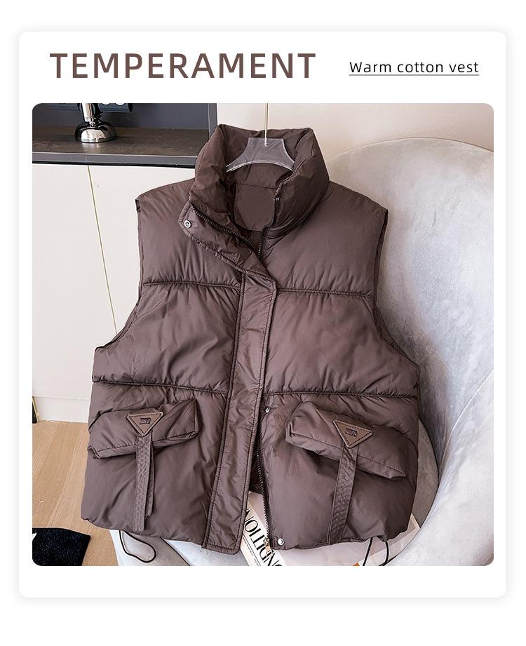 Nuevo Otoño/Invierno 2024 Chaleco de Algodón Acolchado con Bolsillo, Cinta Triangular, para Mujer, Moderno, para Superponer, Color Sólido
