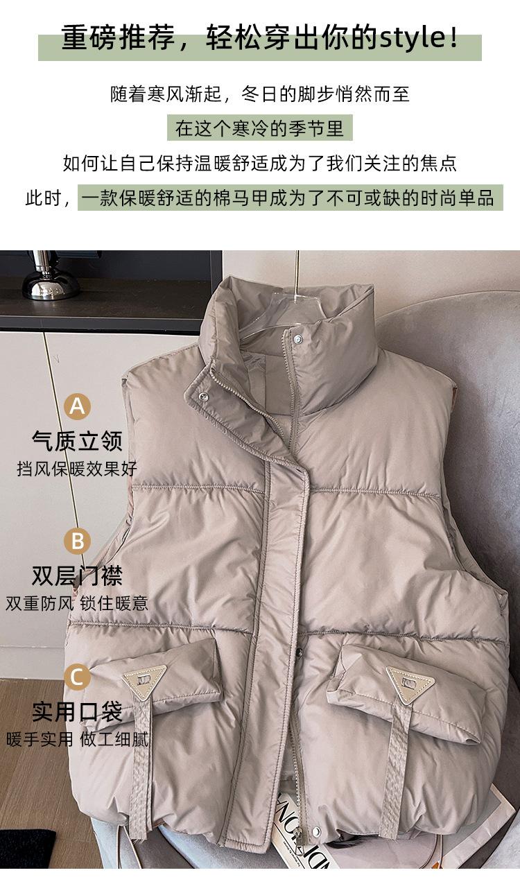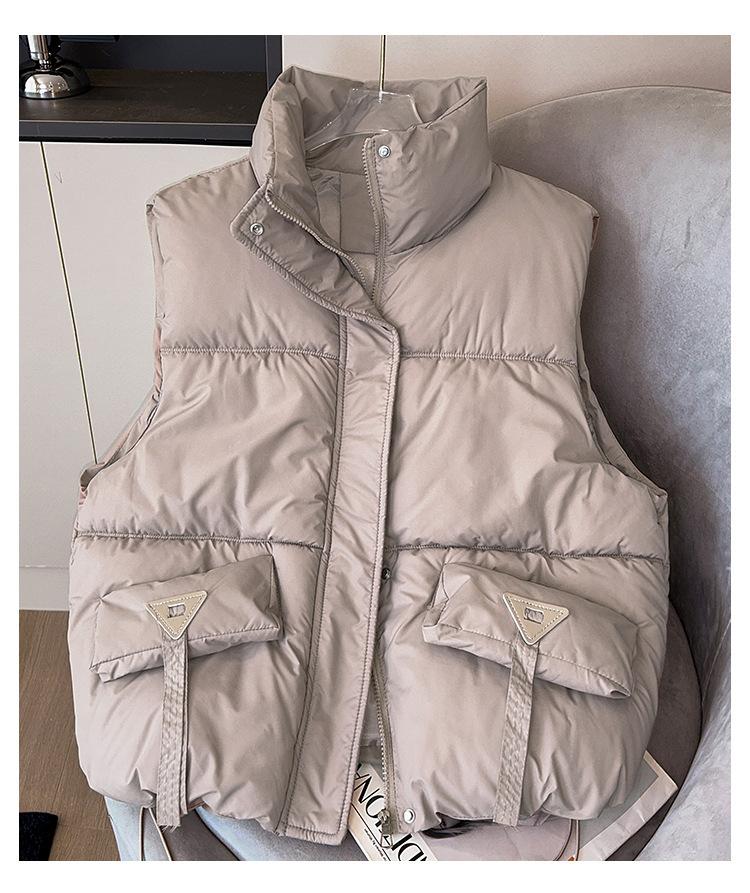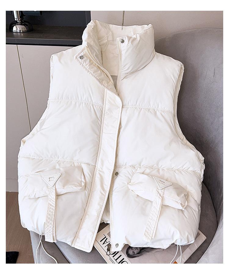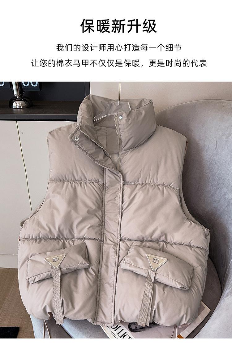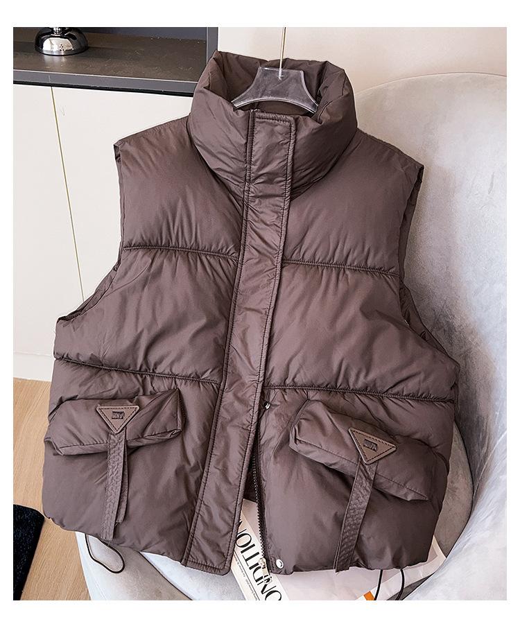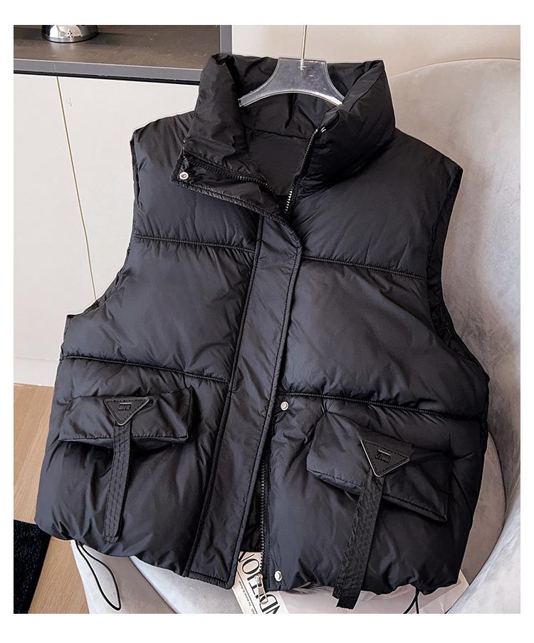 Nuevo Otoño/Invierno 2024 Chaleco de Algodón Acolchado con Bolsillo, Cinta Triangular, para Mujer, Moderno, para Superponer, Color Sólido