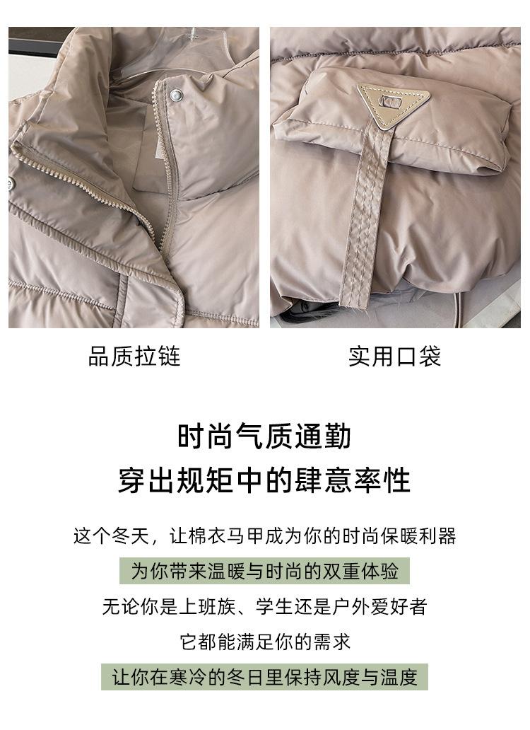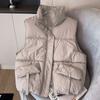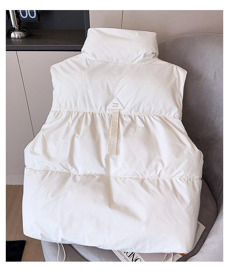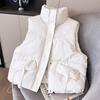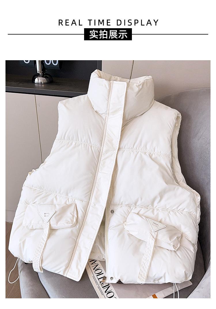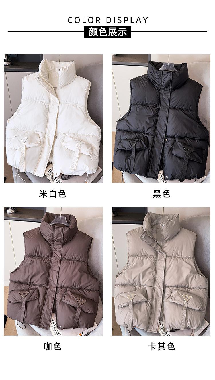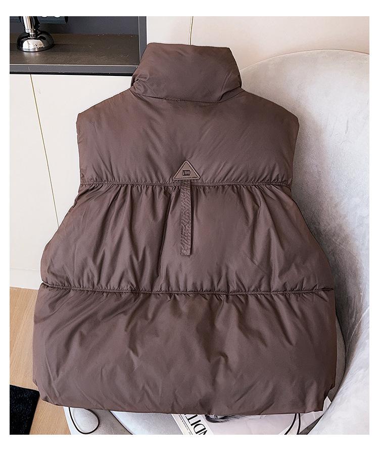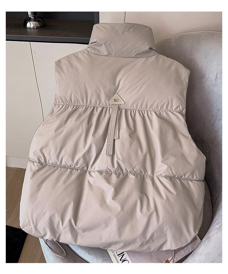 Nuevo Otoño/Invierno 2024 Chaleco de Algodón Acolchado con Bolsillo, Cinta Triangular, para Mujer, Moderno, para Superponer, Color Sólido