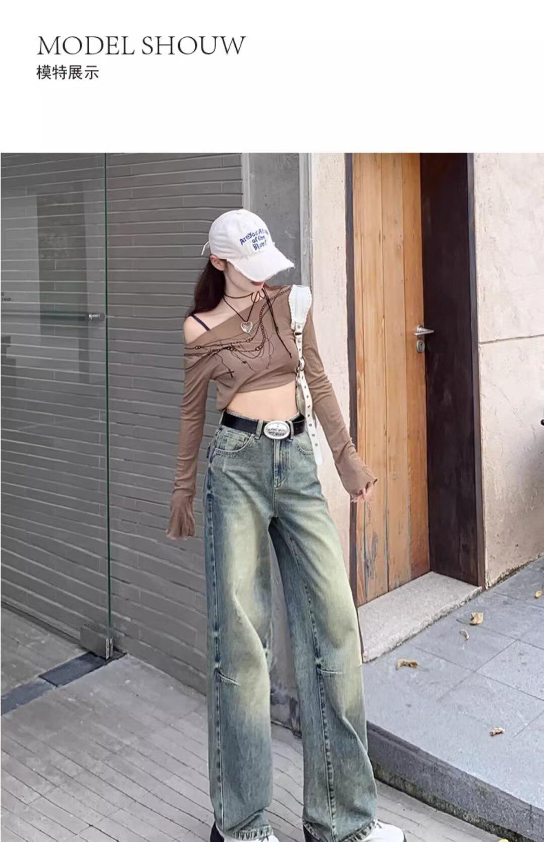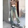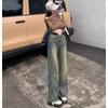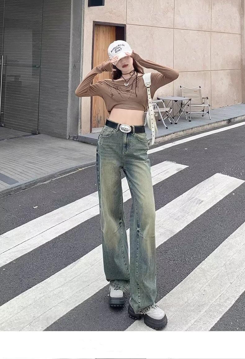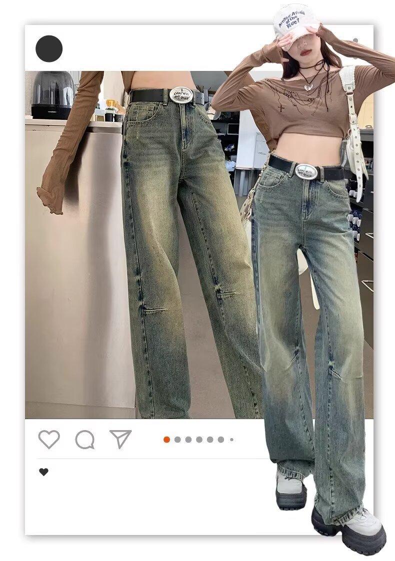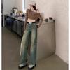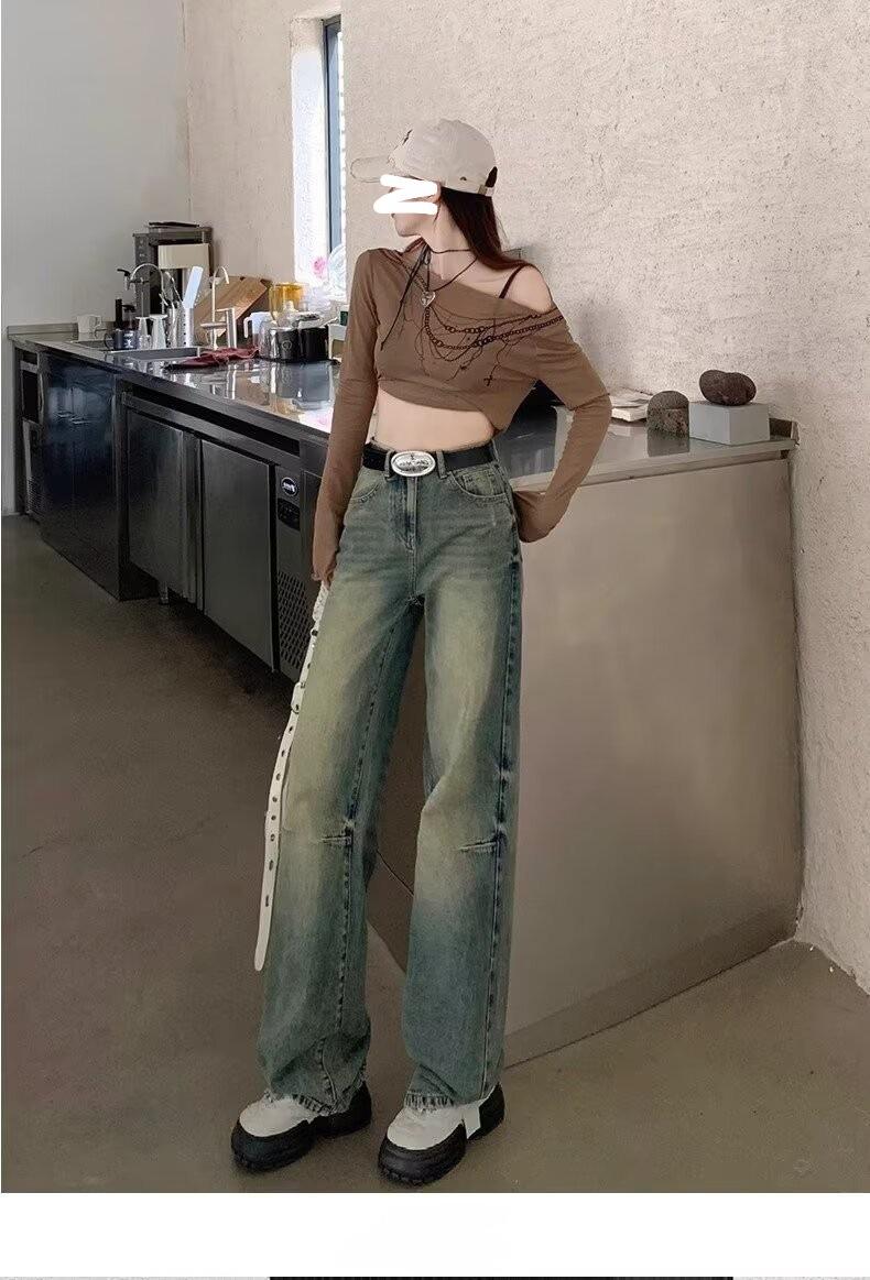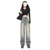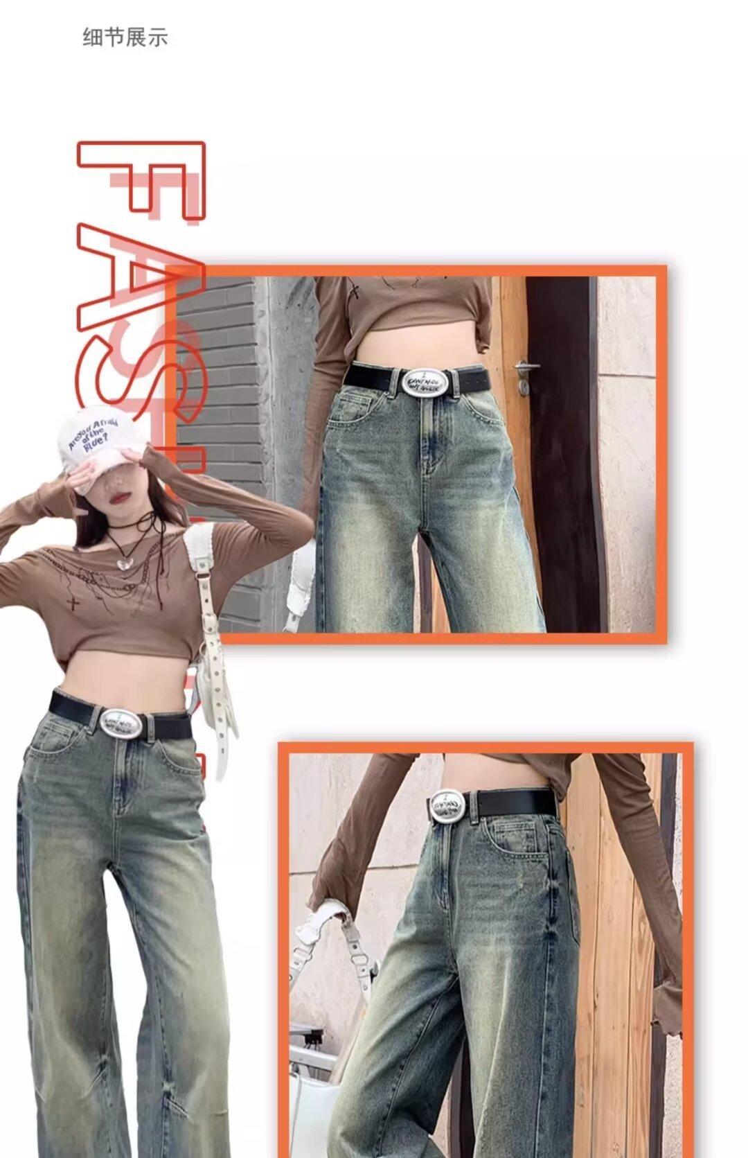 Jeans Retro de Cintura Alta y Pierna Ancha Estilo Americano para Mujer con Diseño y Lavado Antiguo, Holgados, Rectos, Ajustados, con Dobladillo