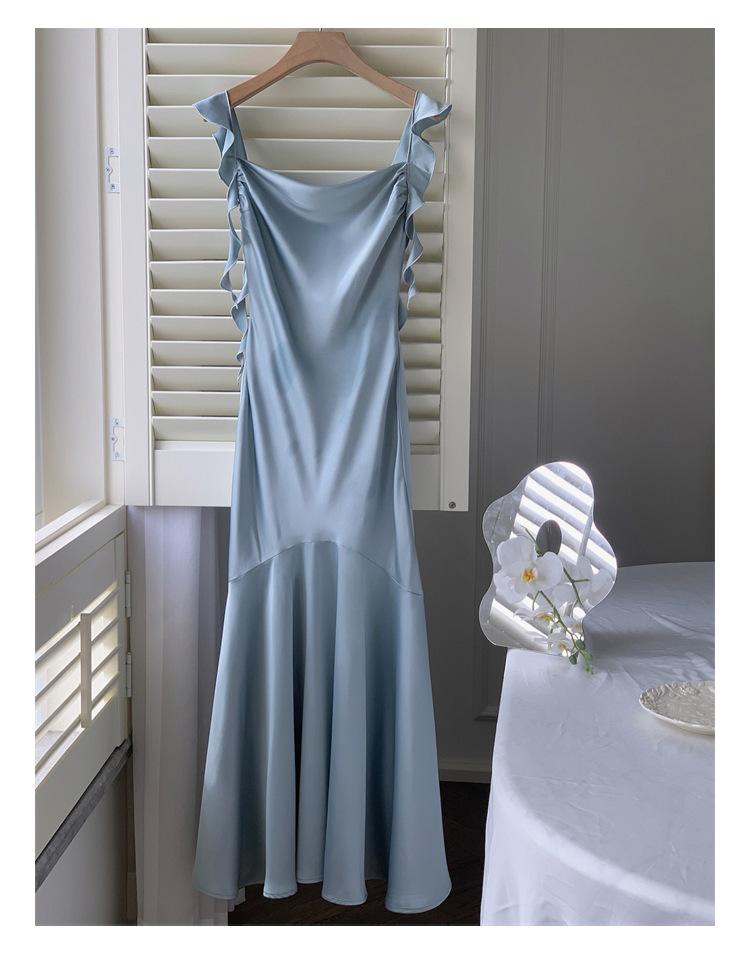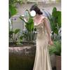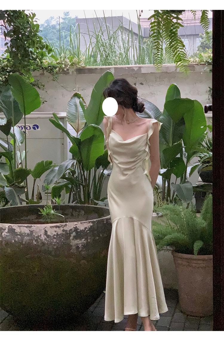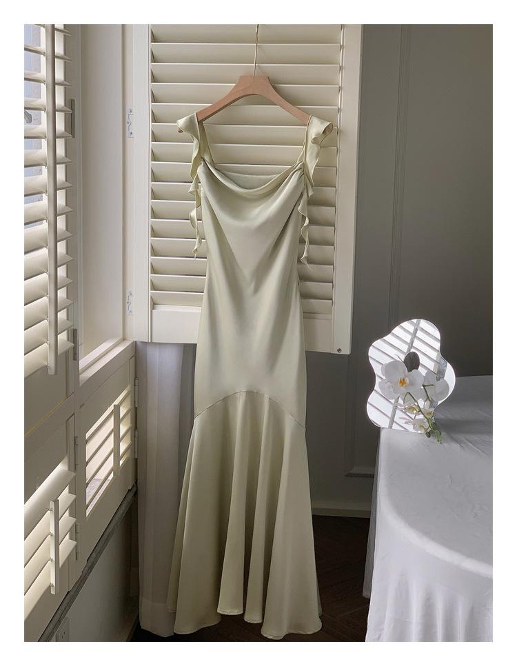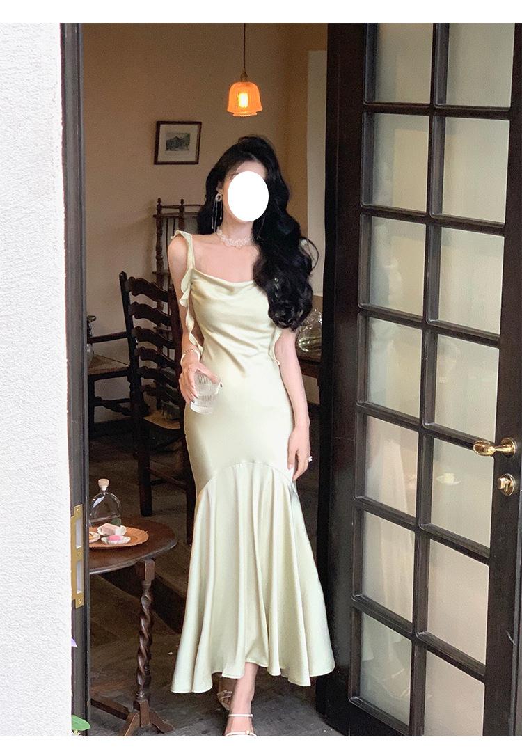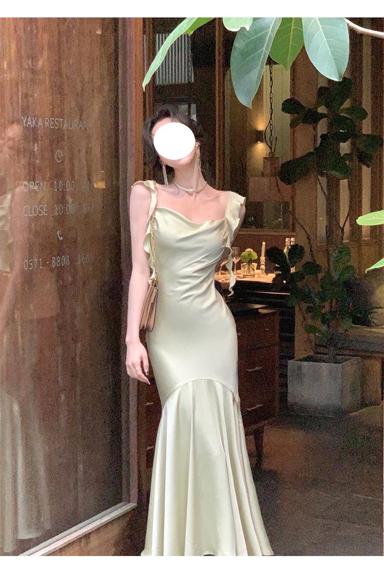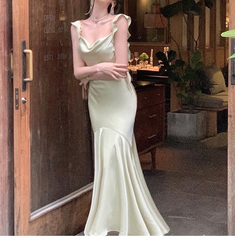 Vestido Satén Tirantes Verano Nuevo Estilo Elegante Hada Cola de Pez Deseo Puro Banquete Vestido Largo Socialité Vestido de Noche