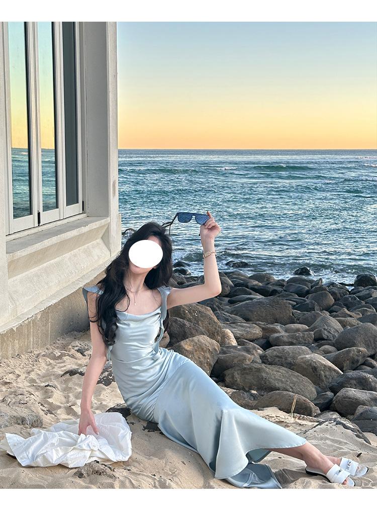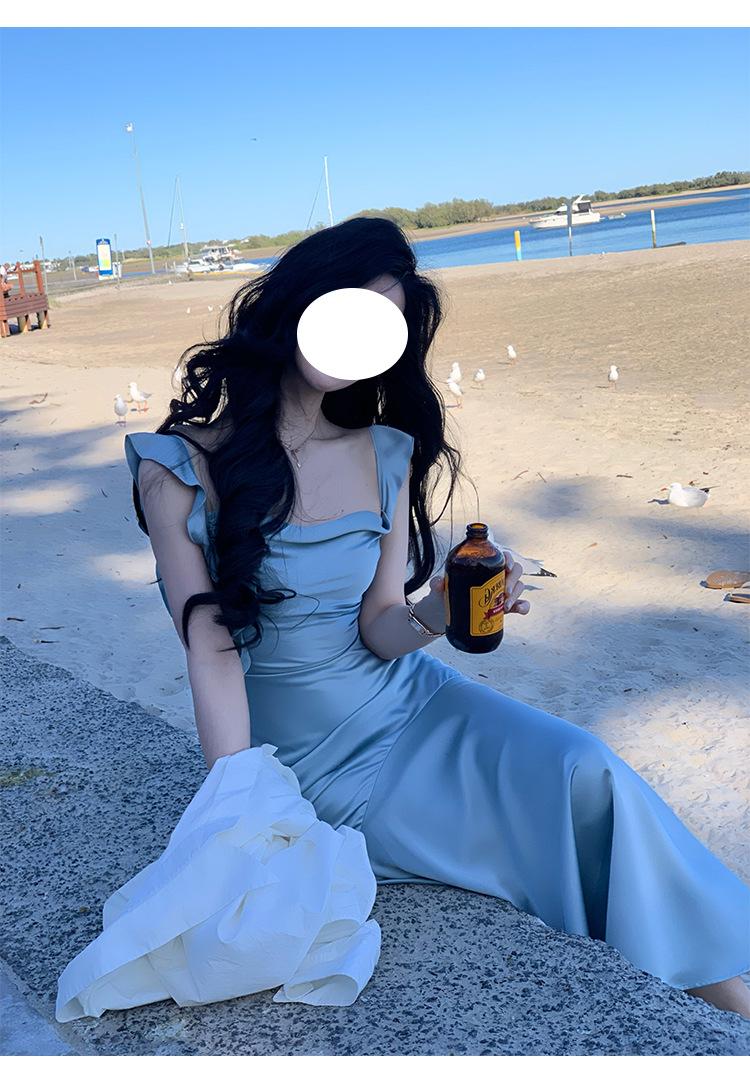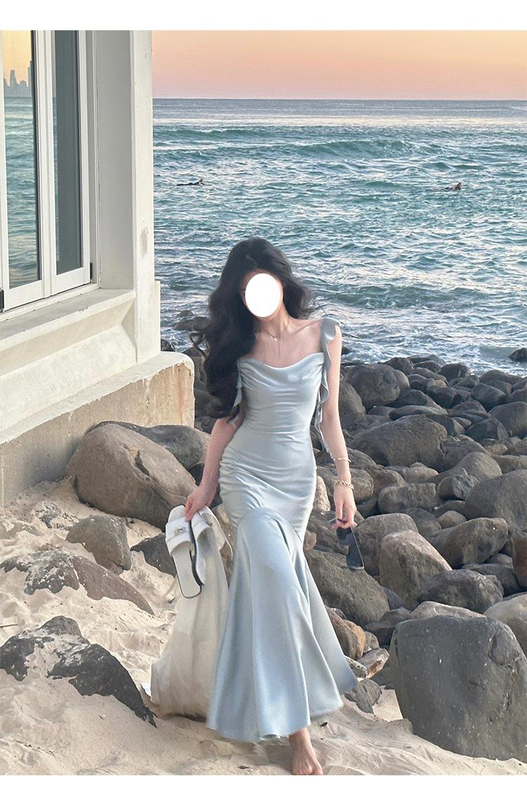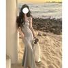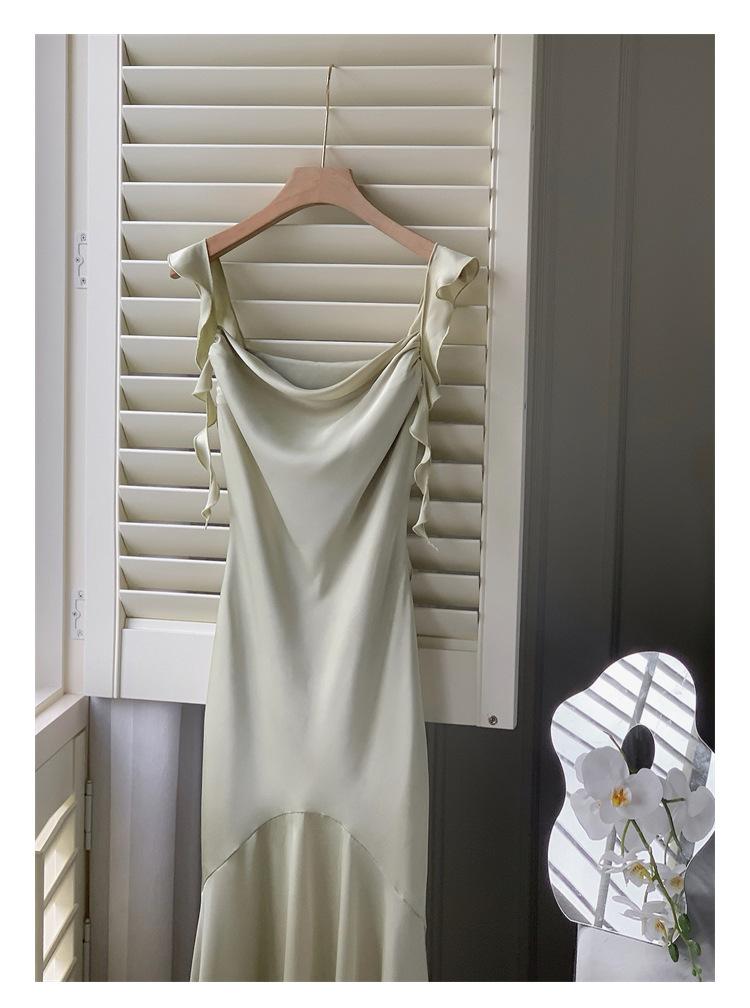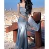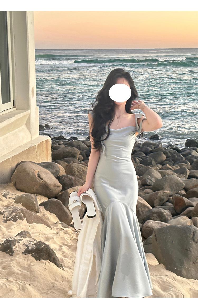 Vestido Satén Tirantes Verano Nuevo Estilo Elegante Hada Cola de Pez Deseo Puro Banquete Vestido Largo Socialité Vestido de Noche
