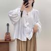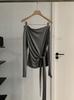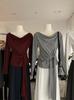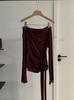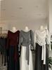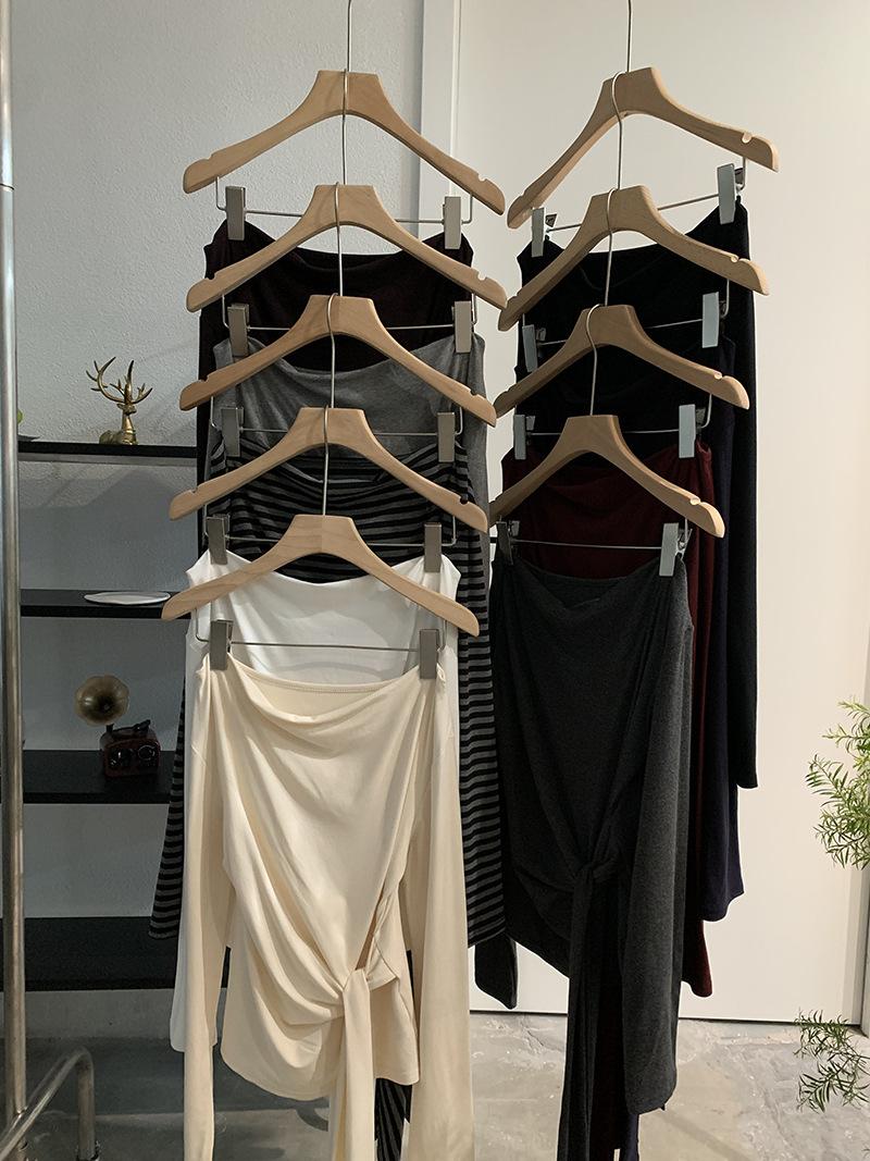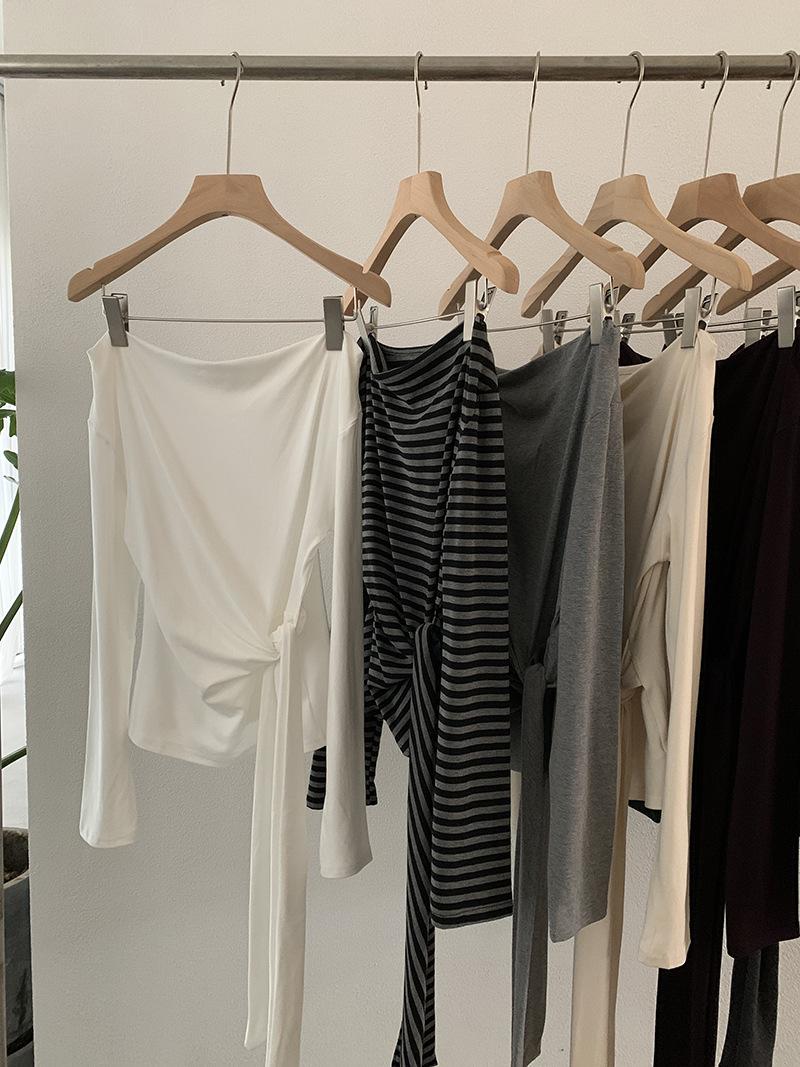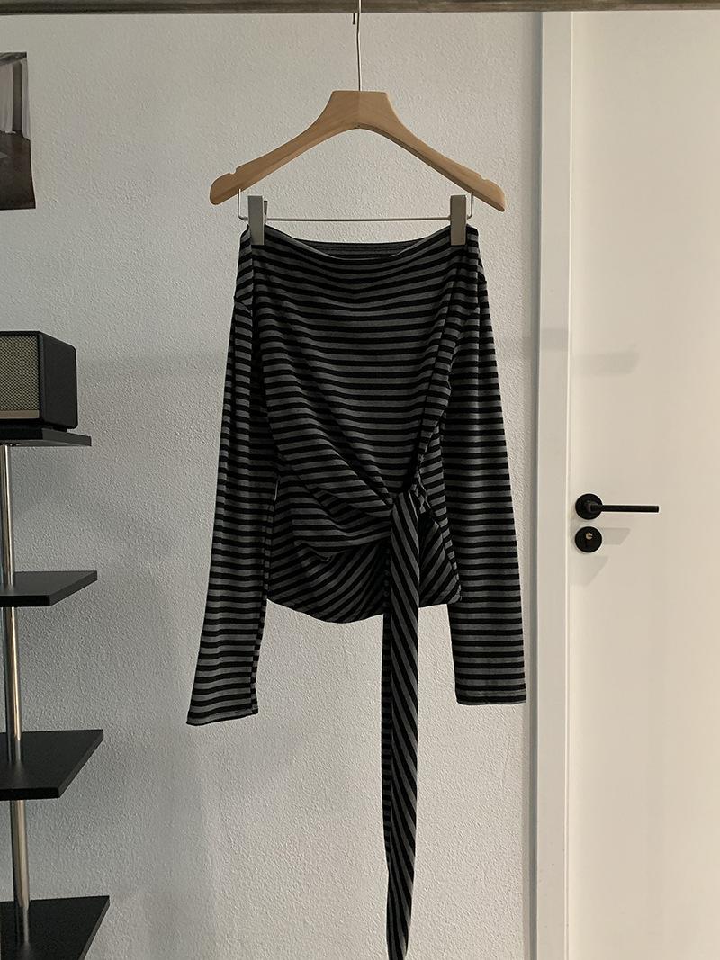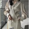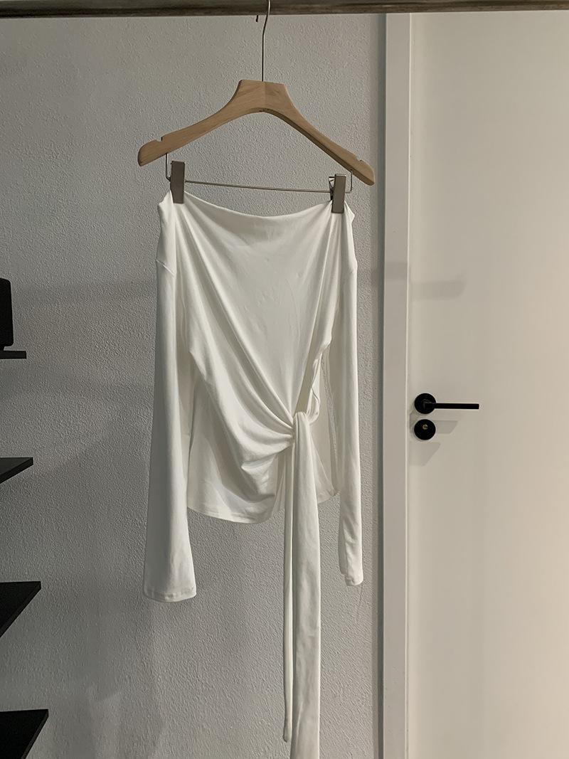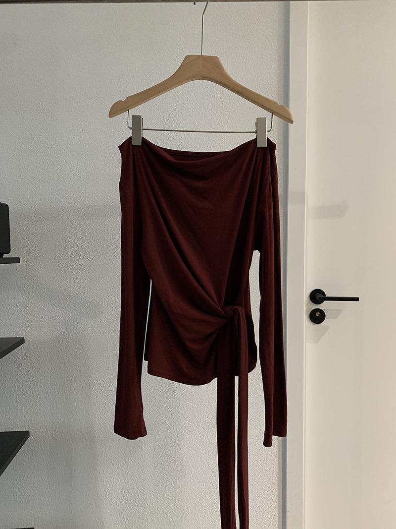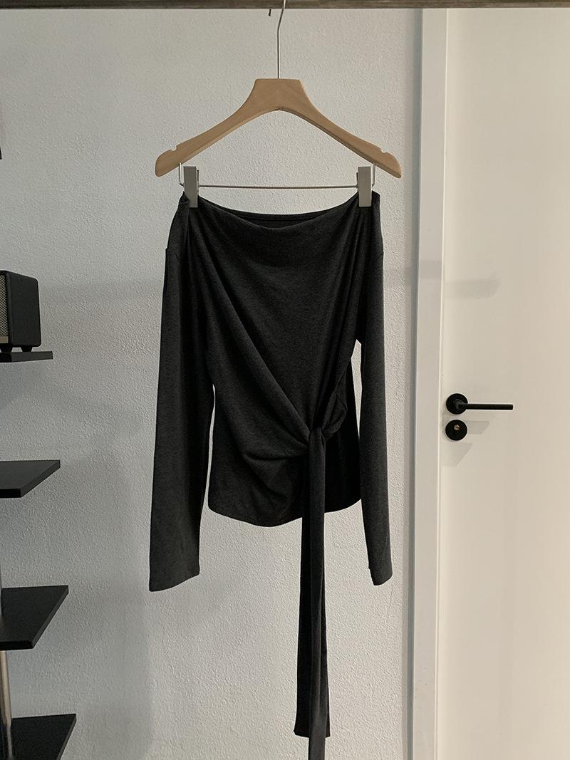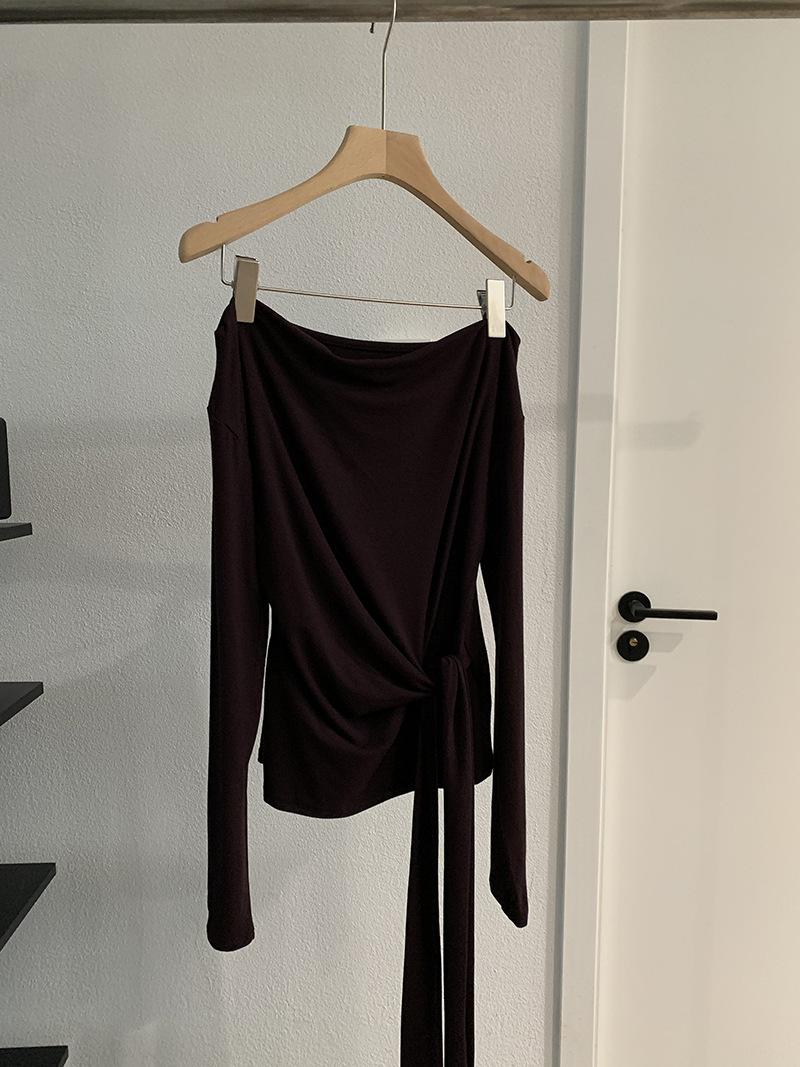Oumaile Principios de Otoño Coreano Diseño con Cuello Drapeado Sentido Lazo Cintura Versátil Adelgazante Manga Larga Color Sólido Camiseta Top 4330