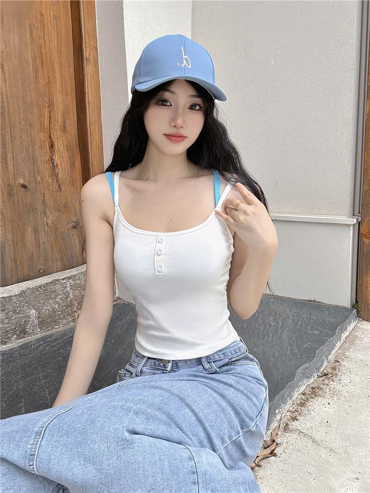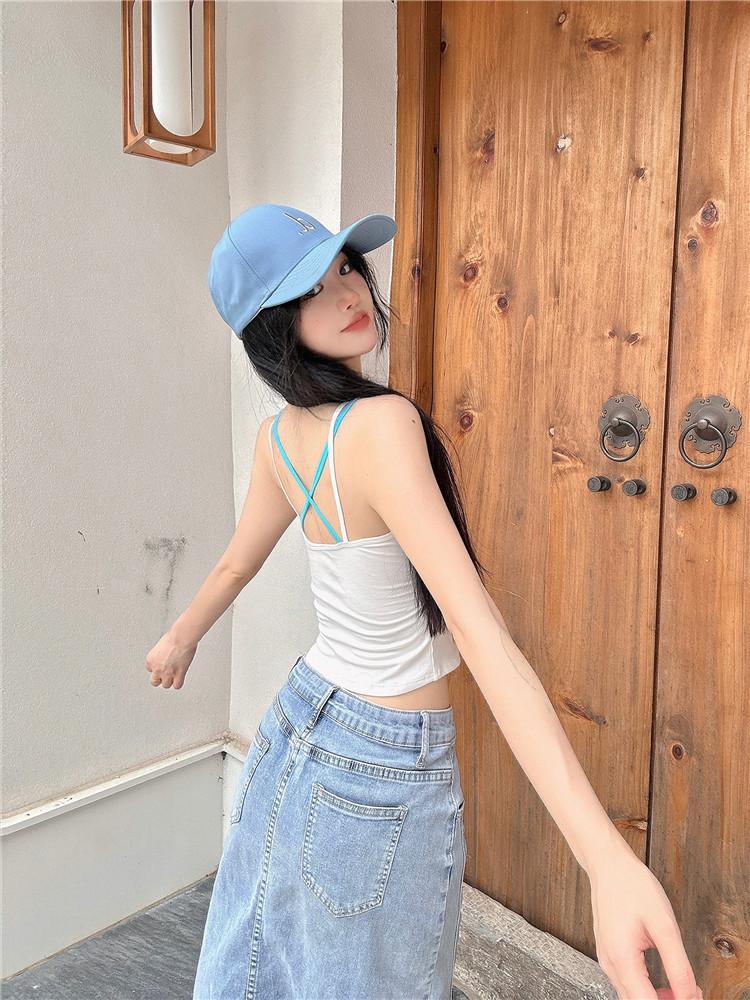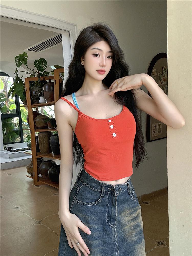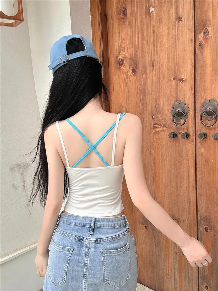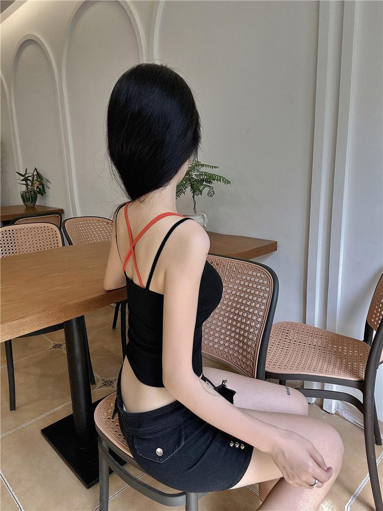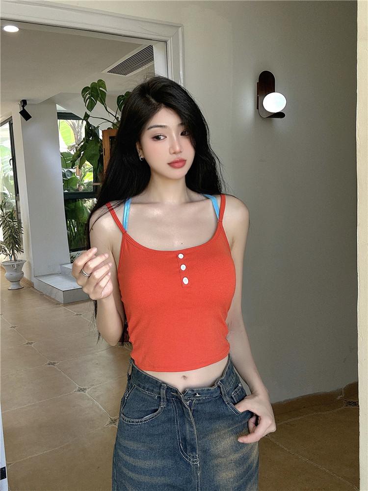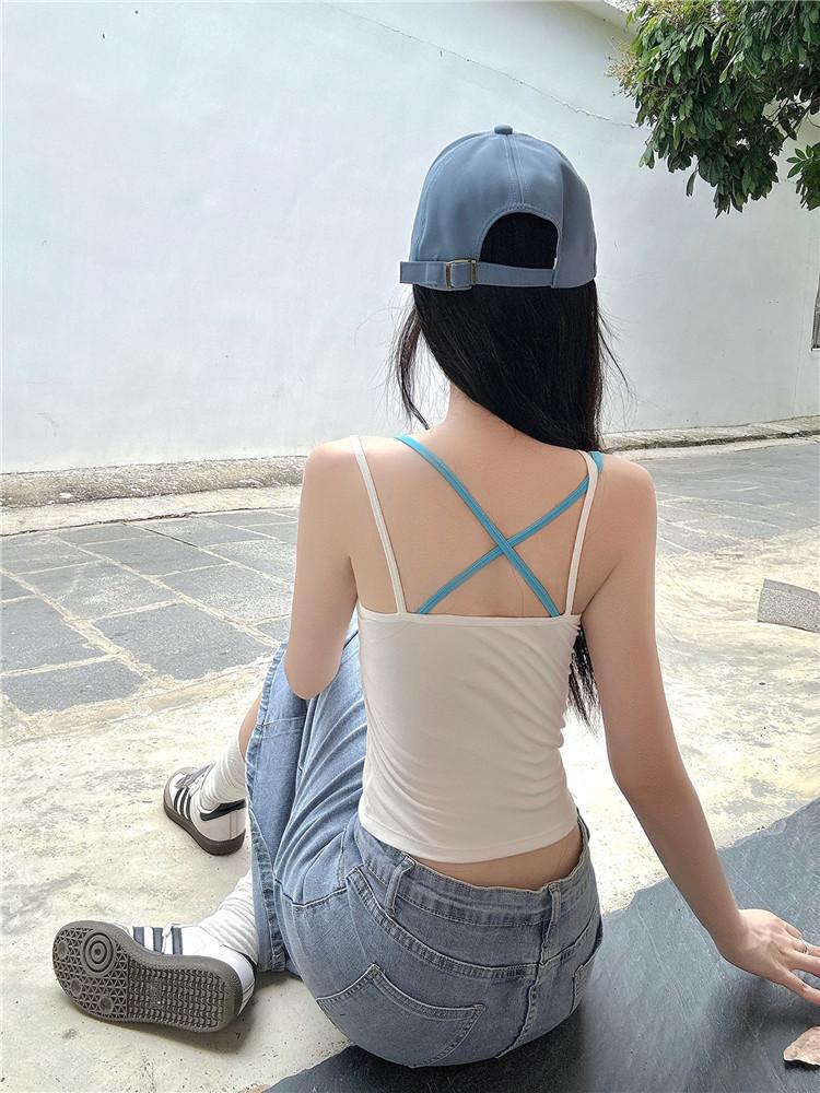 Verano 2025 Nuevo Estilo de Chica Caliente Sexy Diseño Versátil Color Contrastante Chaleco Adelgazante Top con Tirantes Tendencia para Mujer