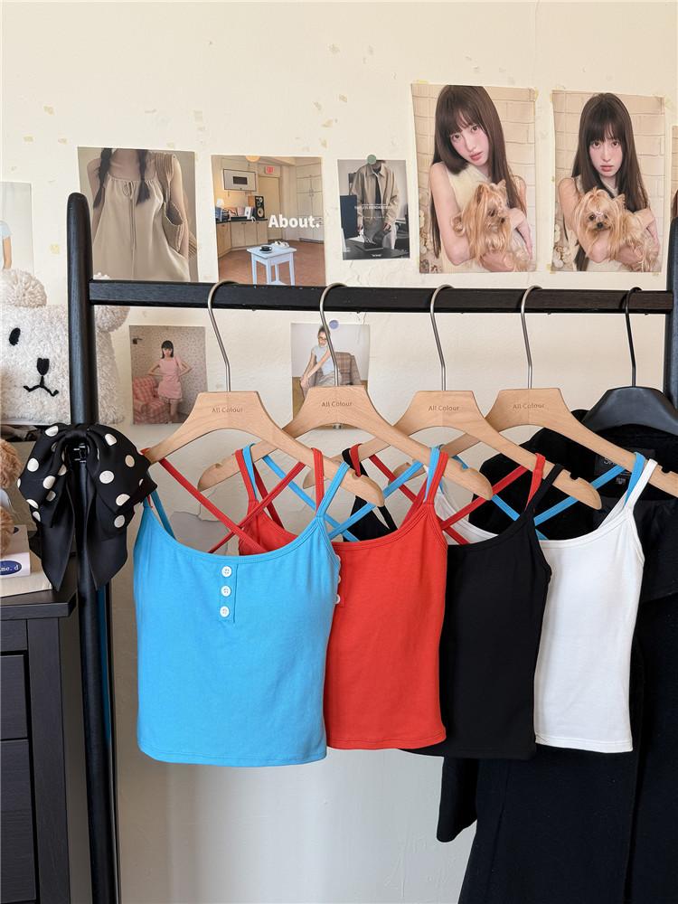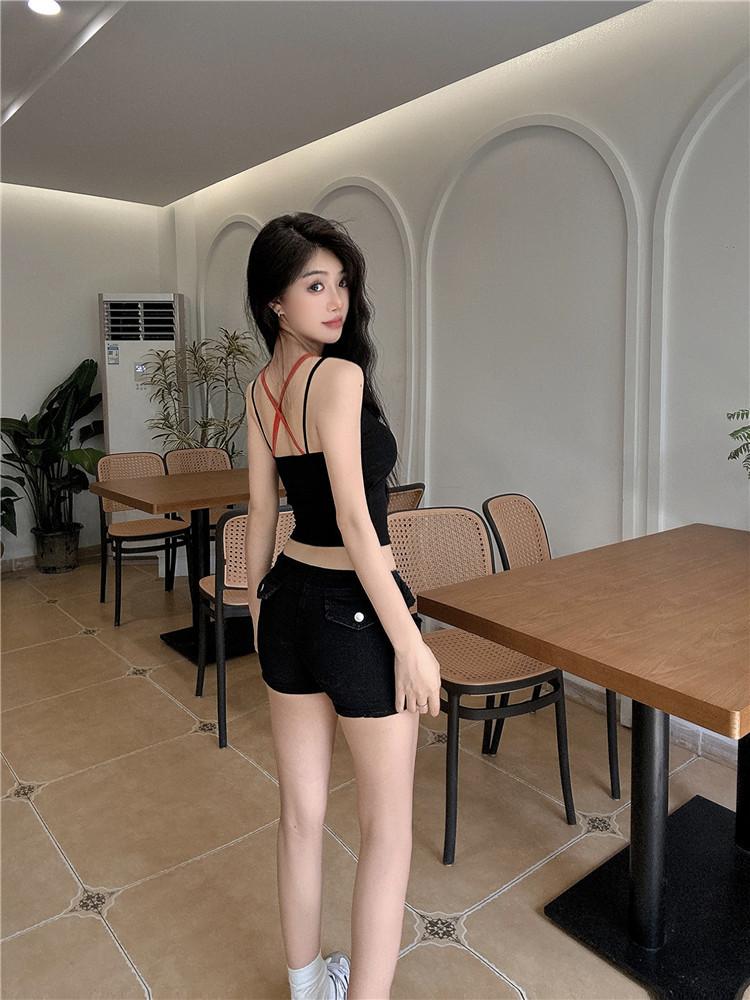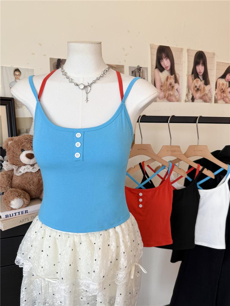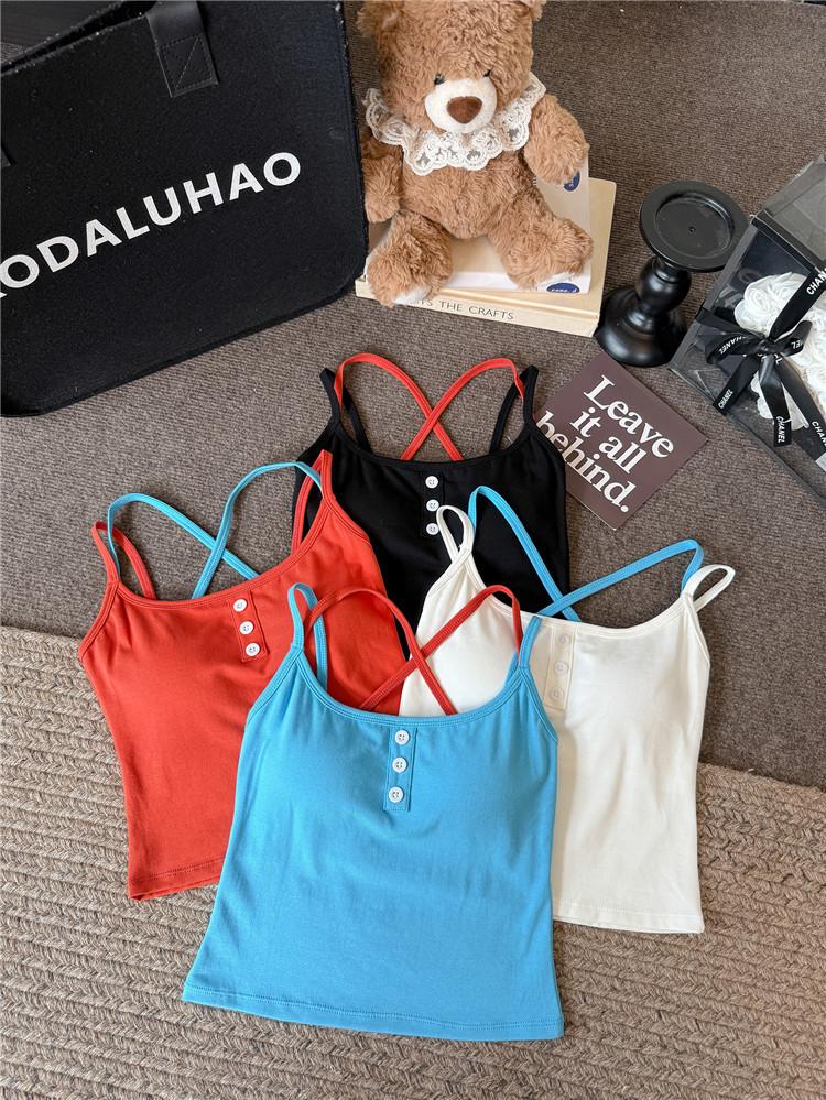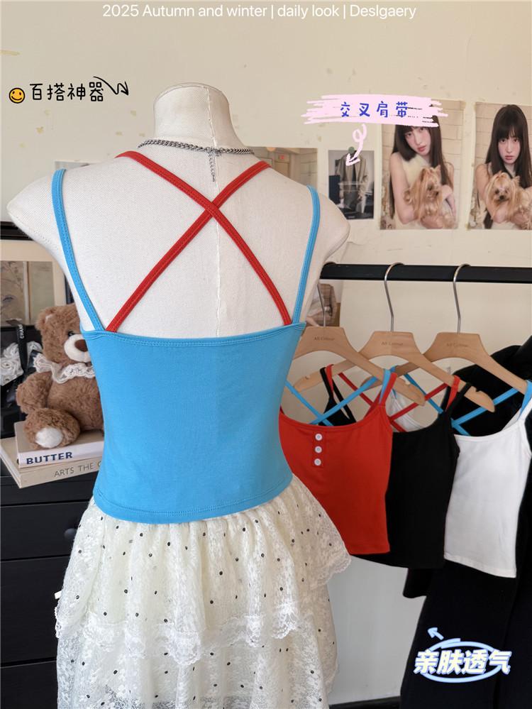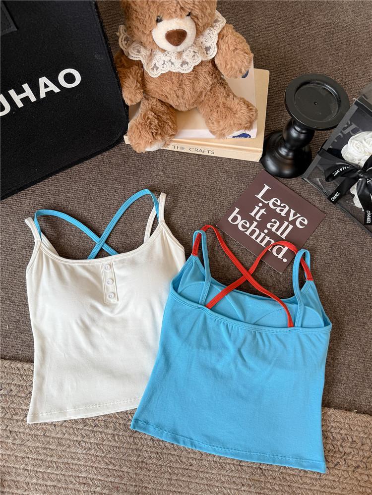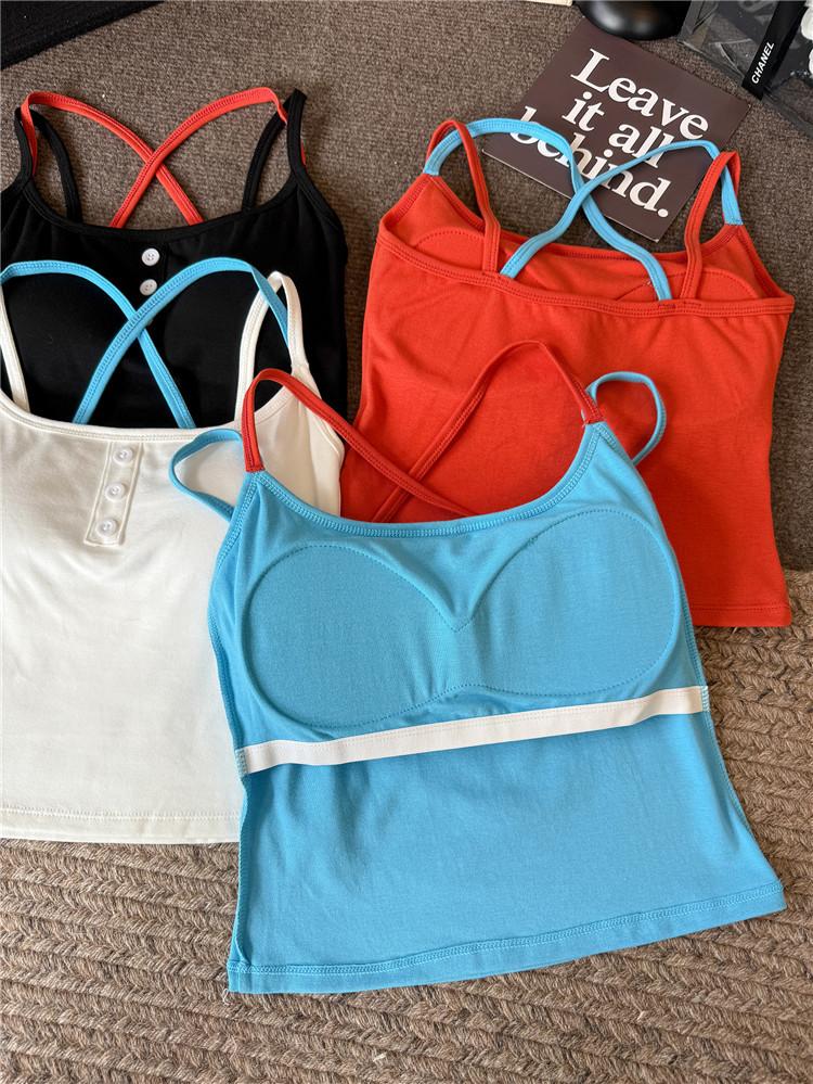 Verano 2025 Nuevo Estilo de Chica Caliente Sexy Diseño Versátil Color Contrastante Chaleco Adelgazante Top con Tirantes Tendencia para Mujer