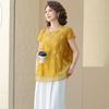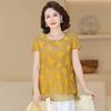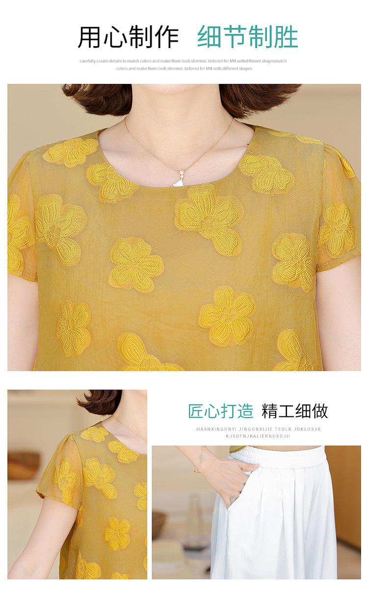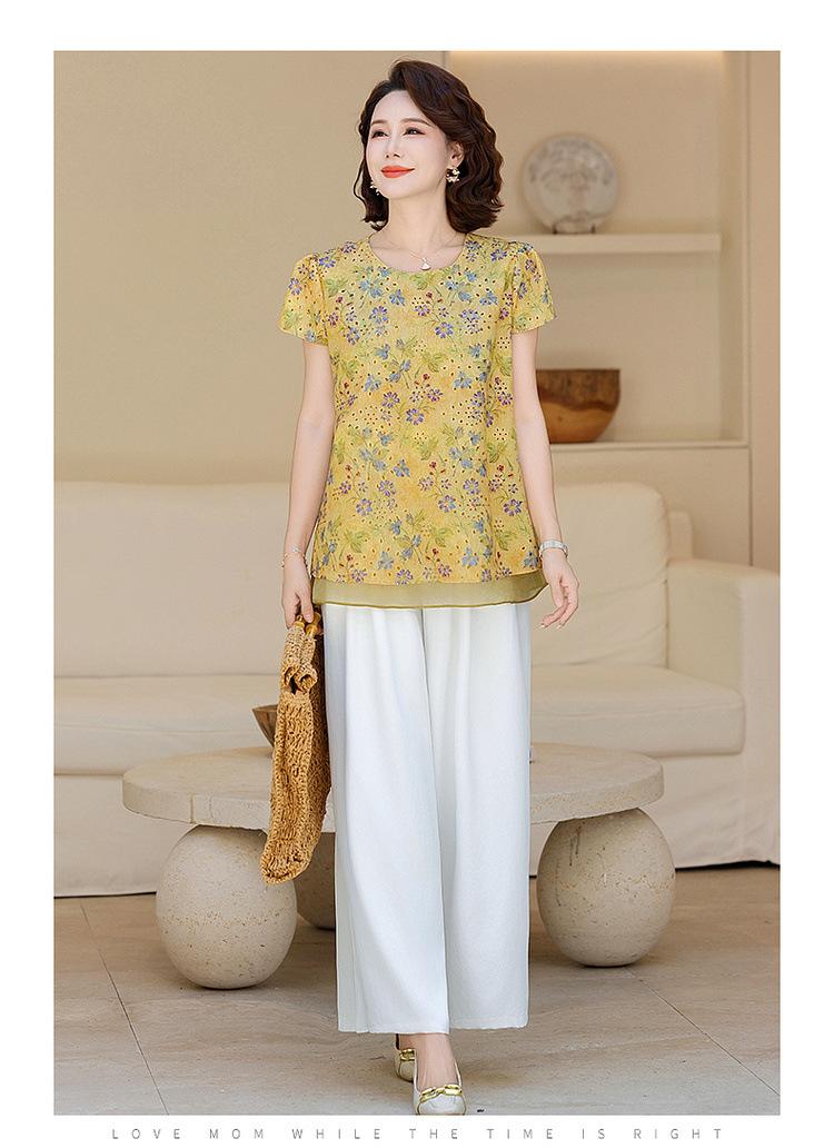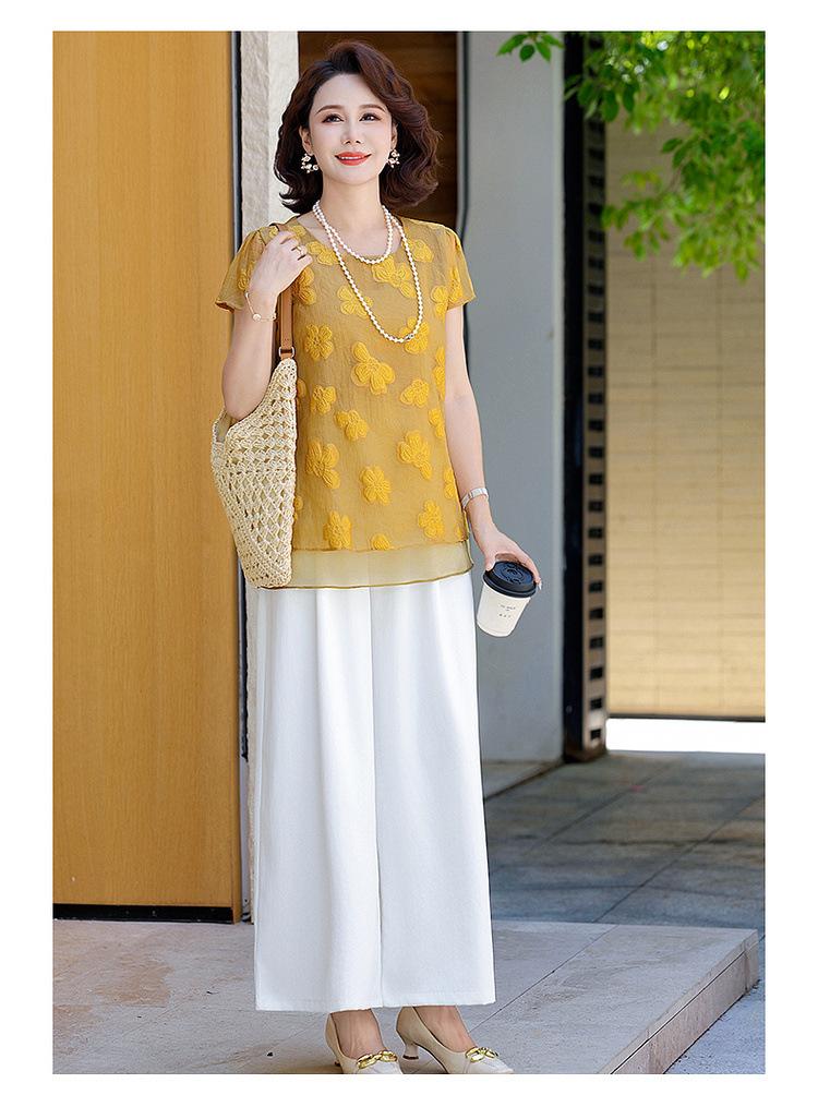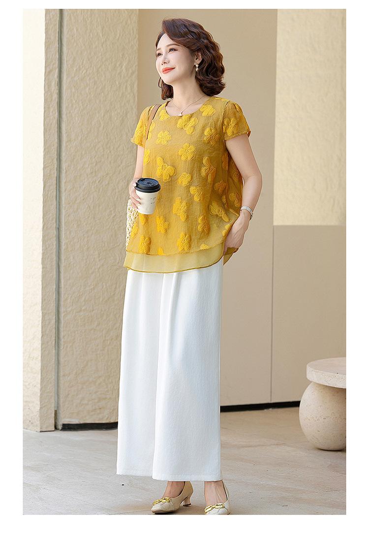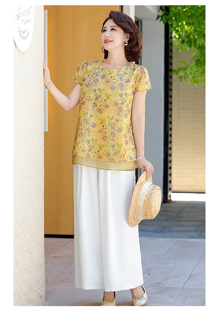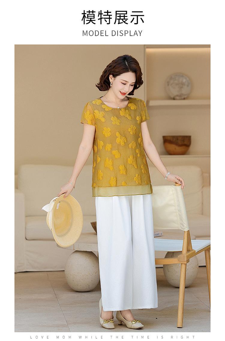Moda de Verano 2025 para Mamá Nueva Camisa de Manga Corta para Mujer Look Adelgazante para Edad Media Conjunto de Dos Piezas