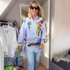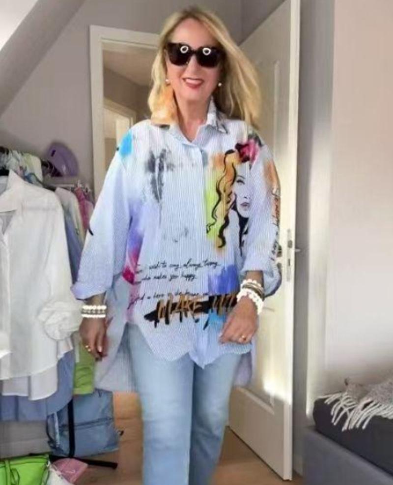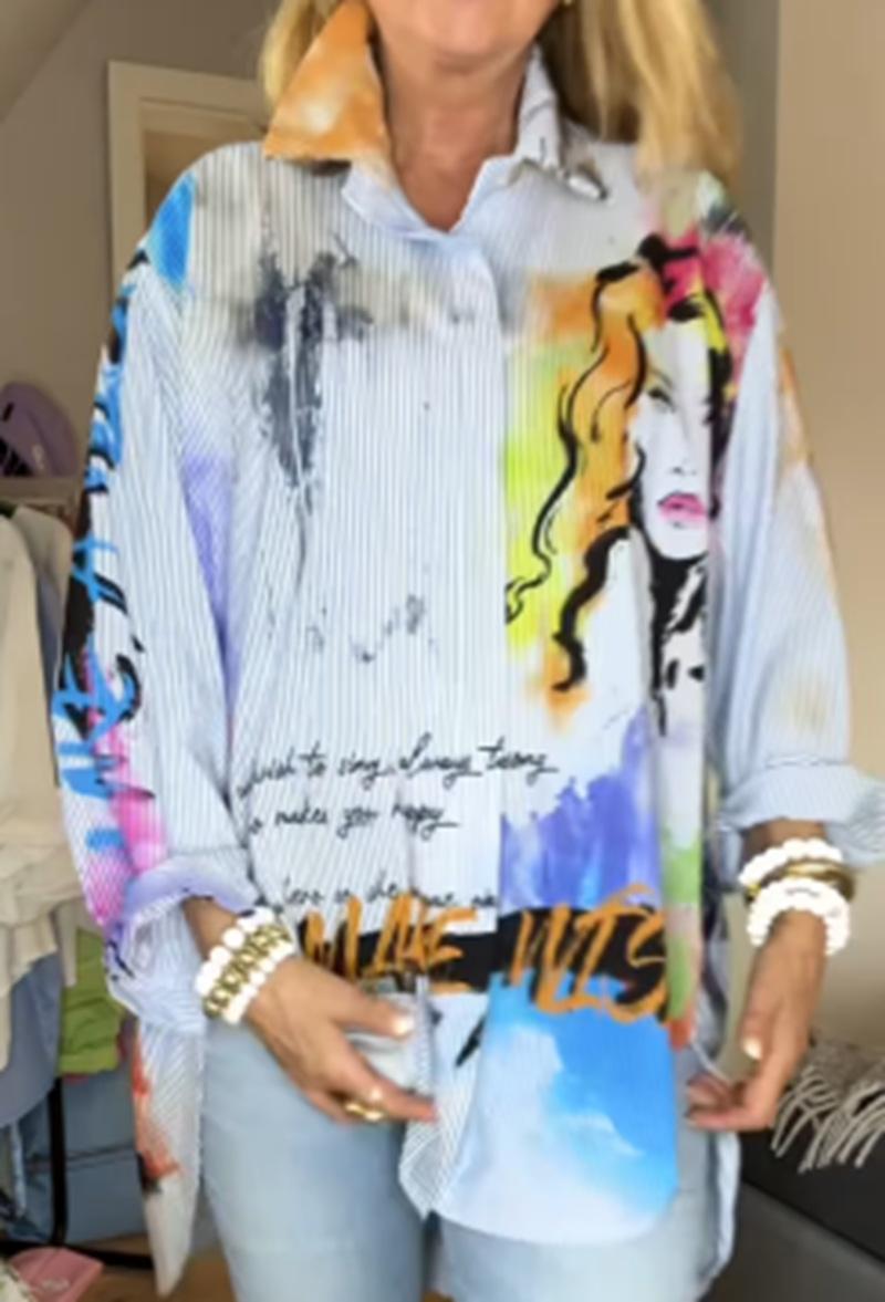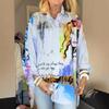 Ropa Europea y Americana Transfronteriza Verano Nuevo Estilo 2025 Amazon Estampado Casual Solapa Manga Larga Retrato Camisa Suelta