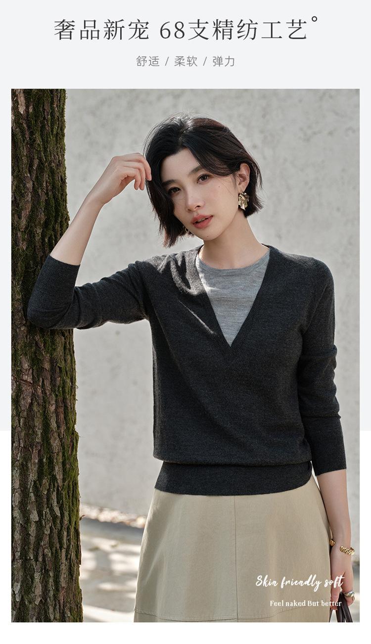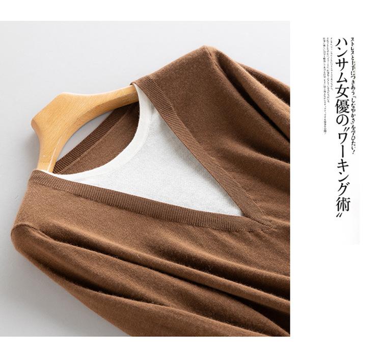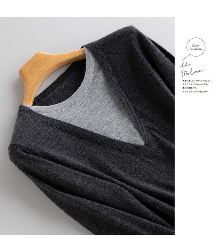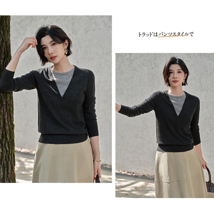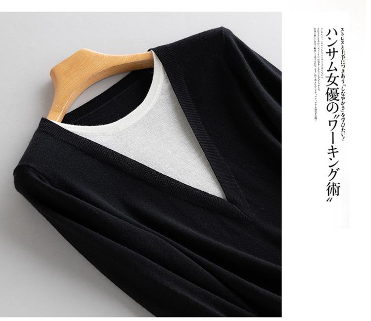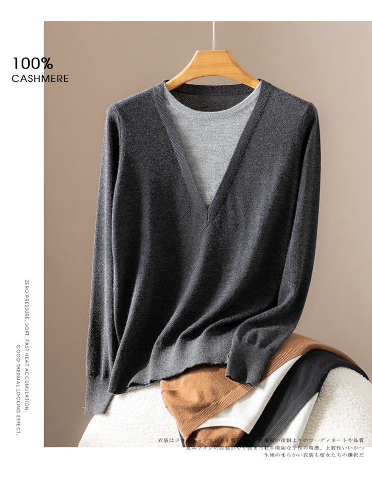 Suéter de cachemira para mujer 100% cachemira pura otoño e invierno nuevo manga larga cuello redondo falso dos piezas taller fino suéter base de punto fino