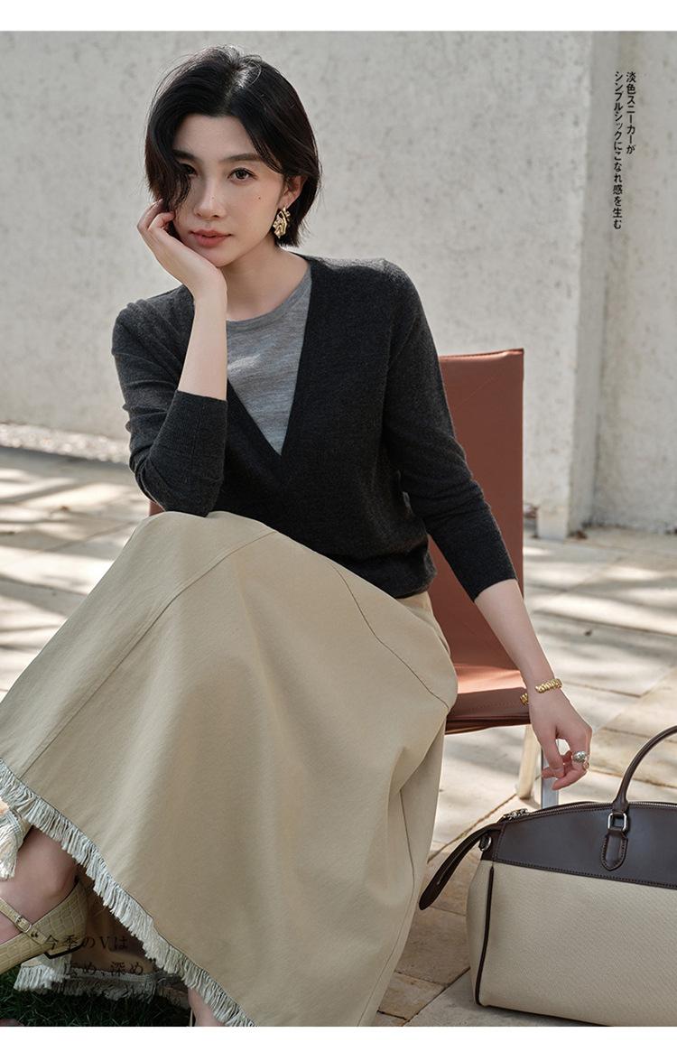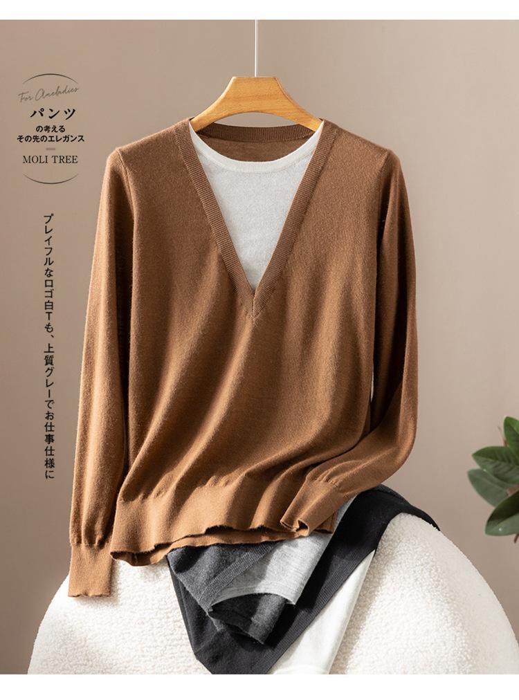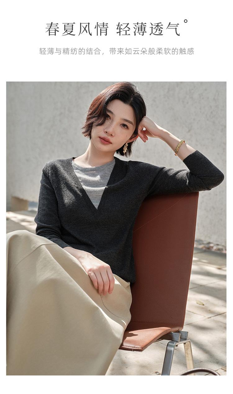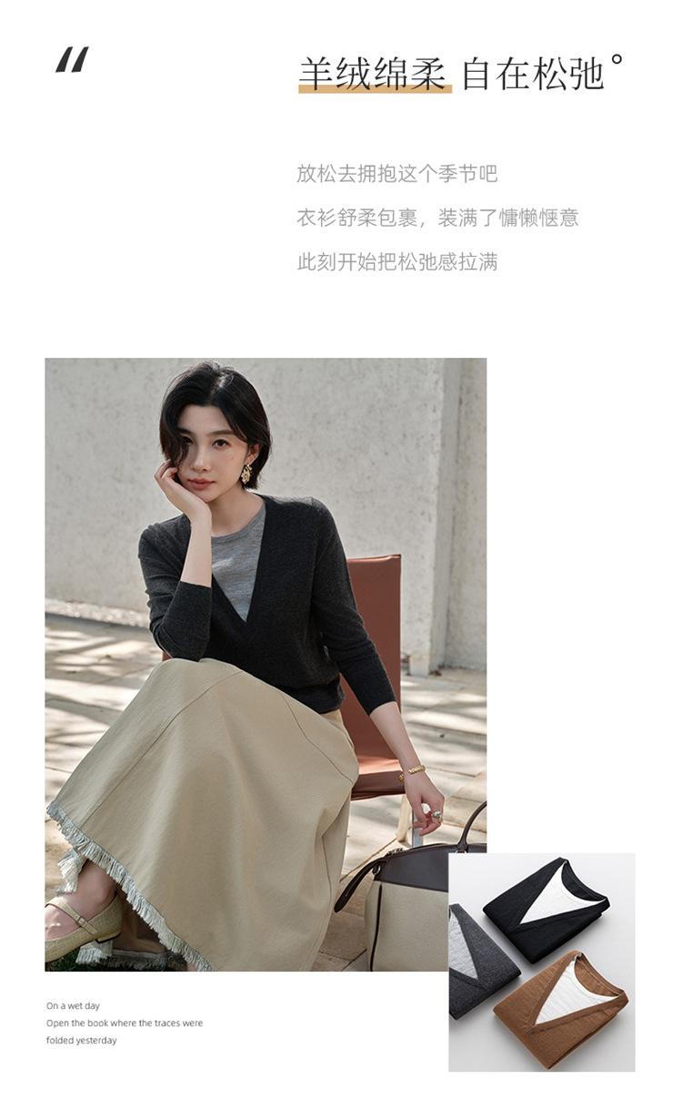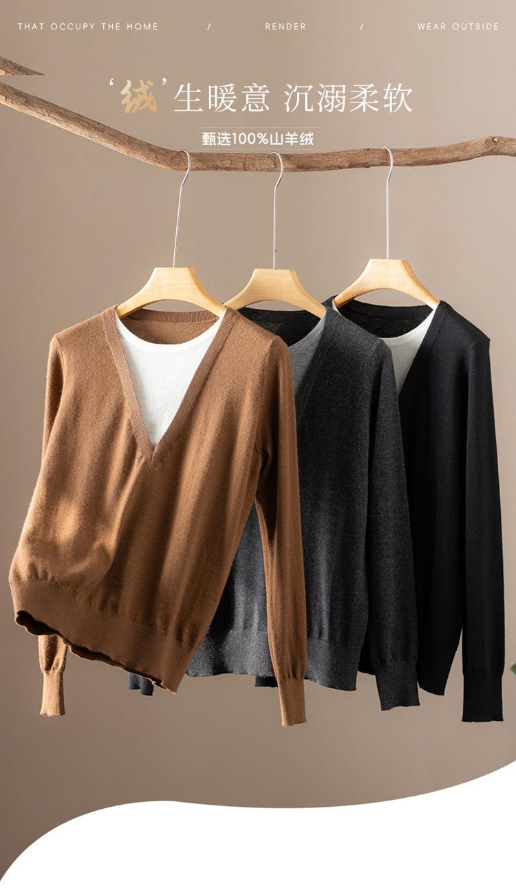 Suéter de cachemira para mujer 100% cachemira pura otoño e invierno nuevo manga larga cuello redondo falso dos piezas taller fino suéter base de punto fino