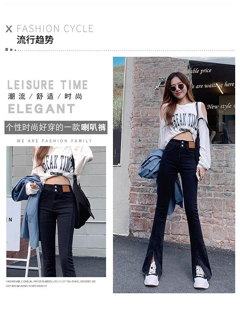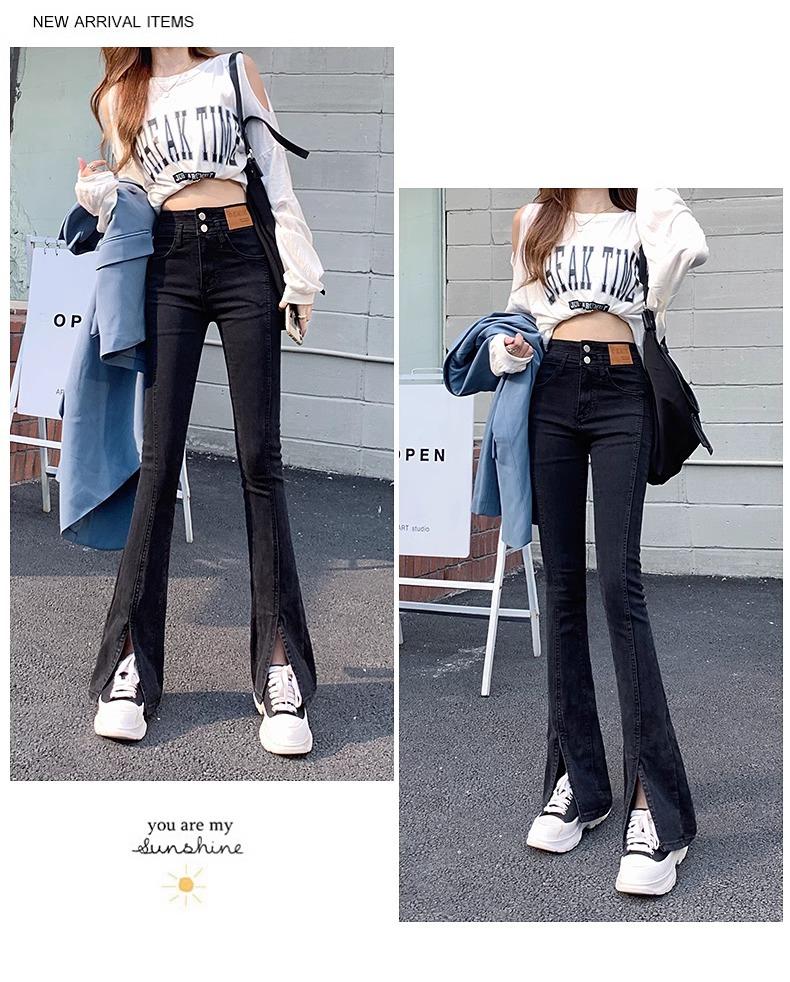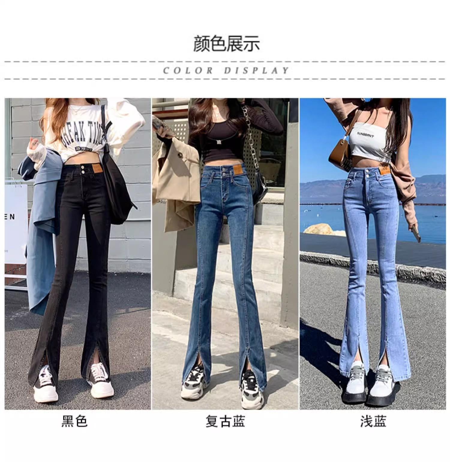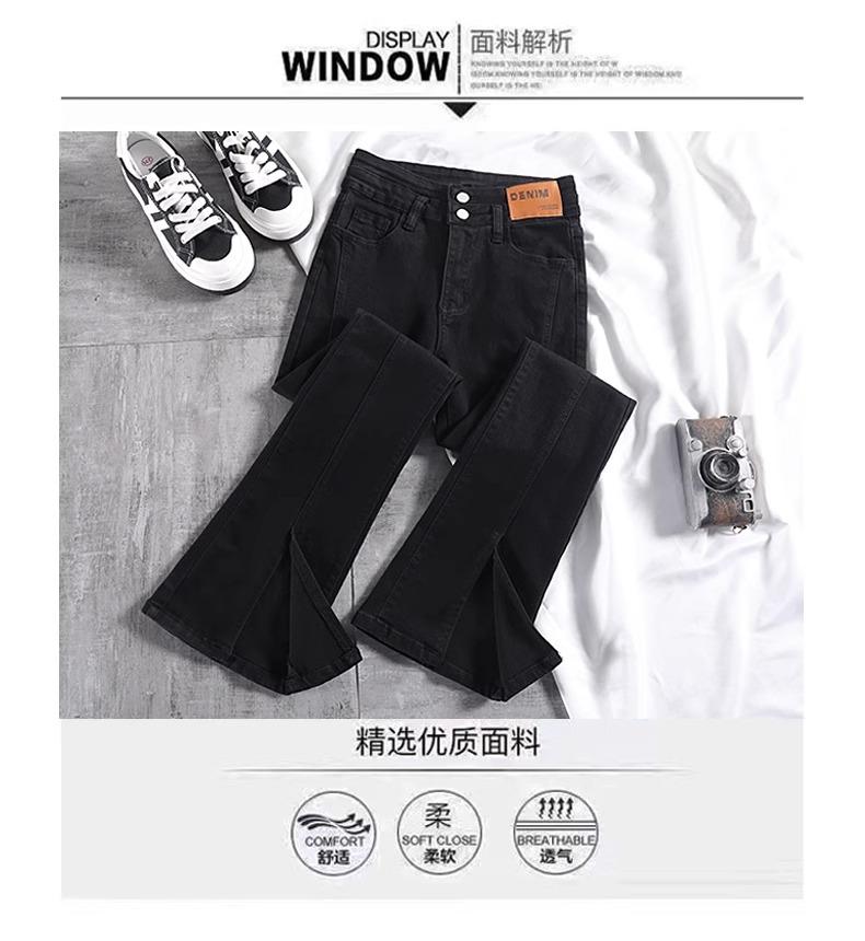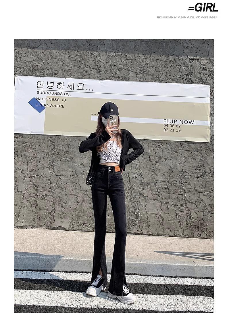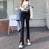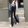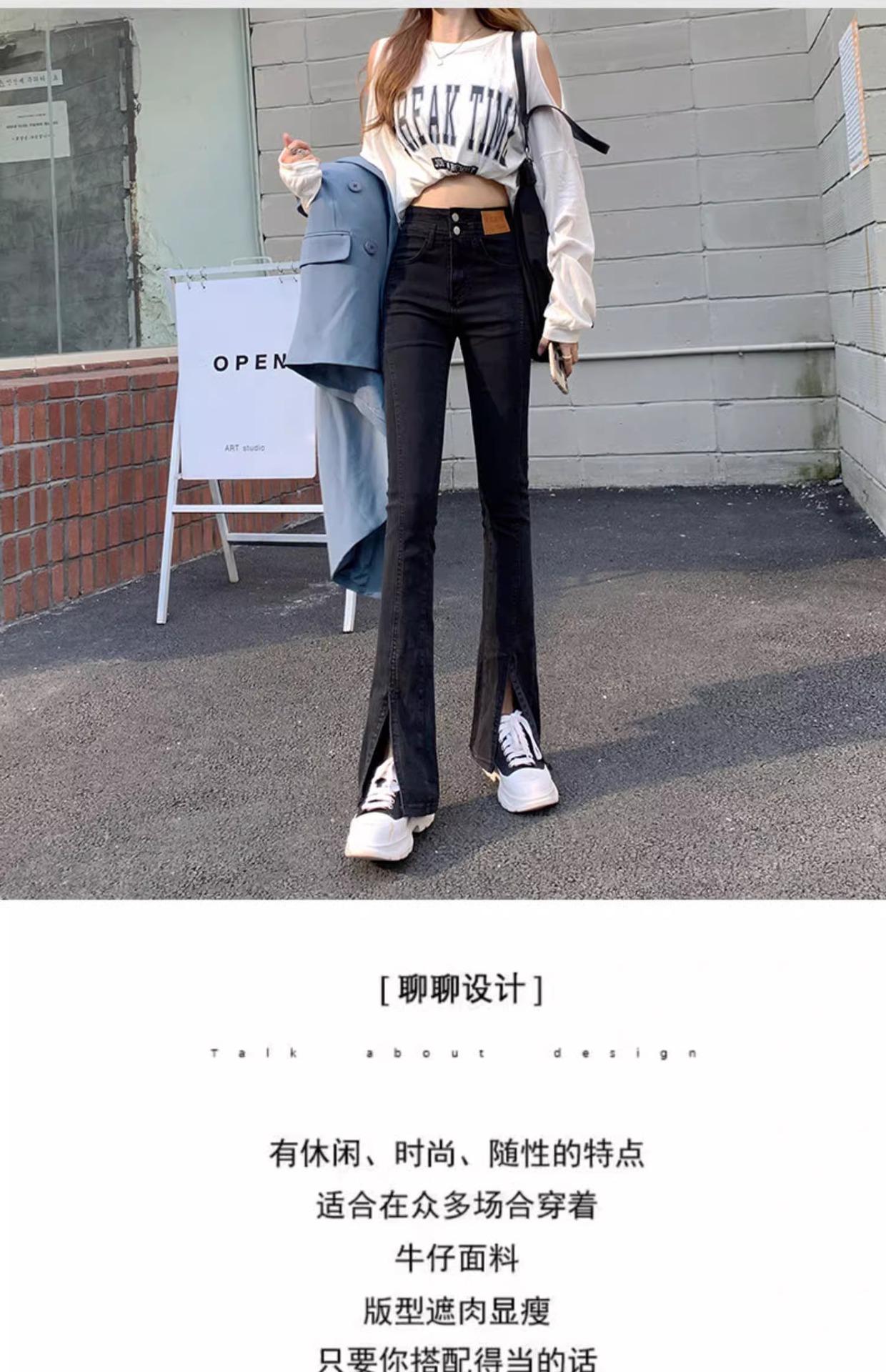 Jeans Negros Divididos Moda Otoño para Mujer Combinable Nuevo Explosivo Cintura Alta Adelgazantes Pantalones Microacampanados