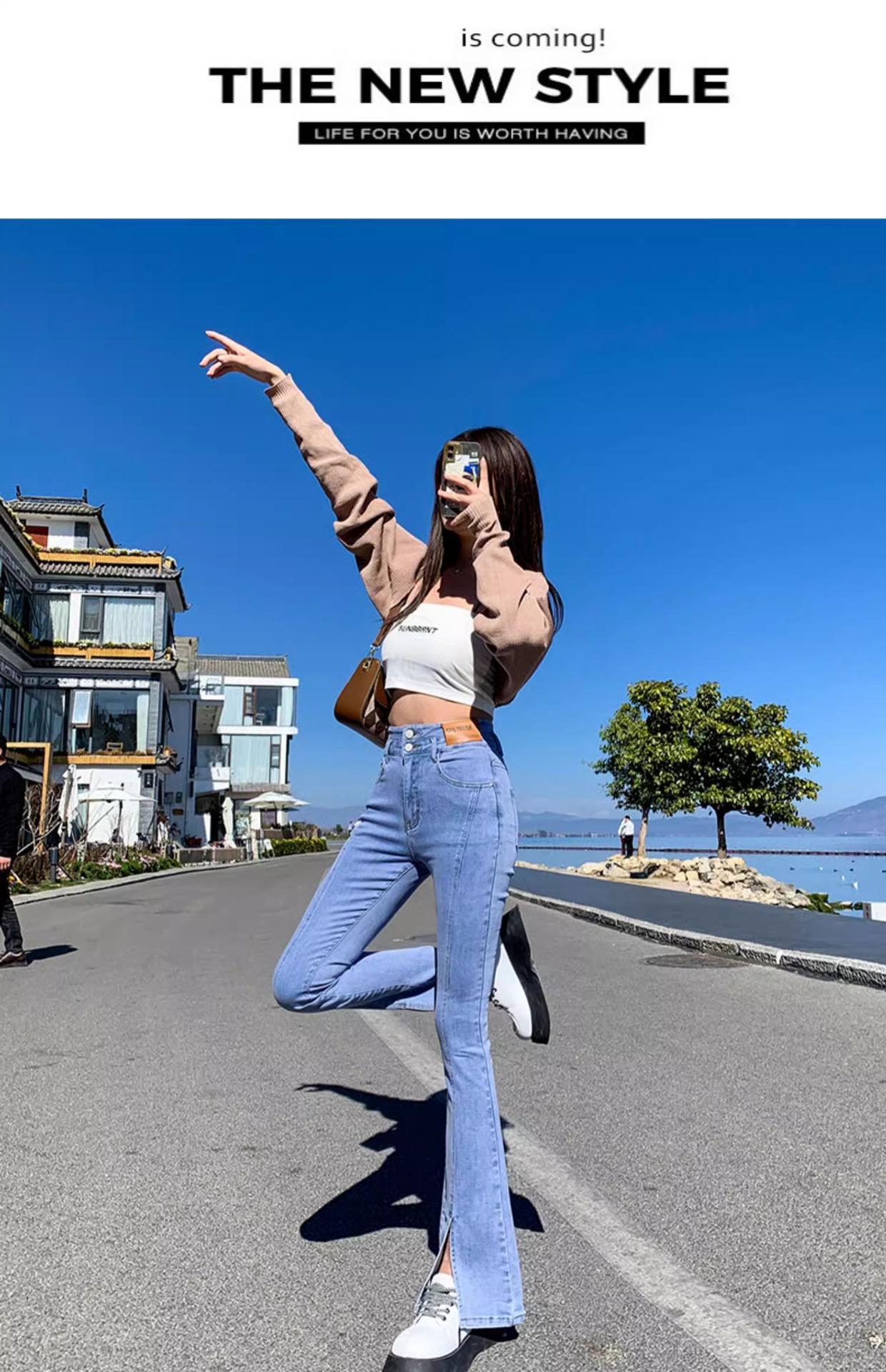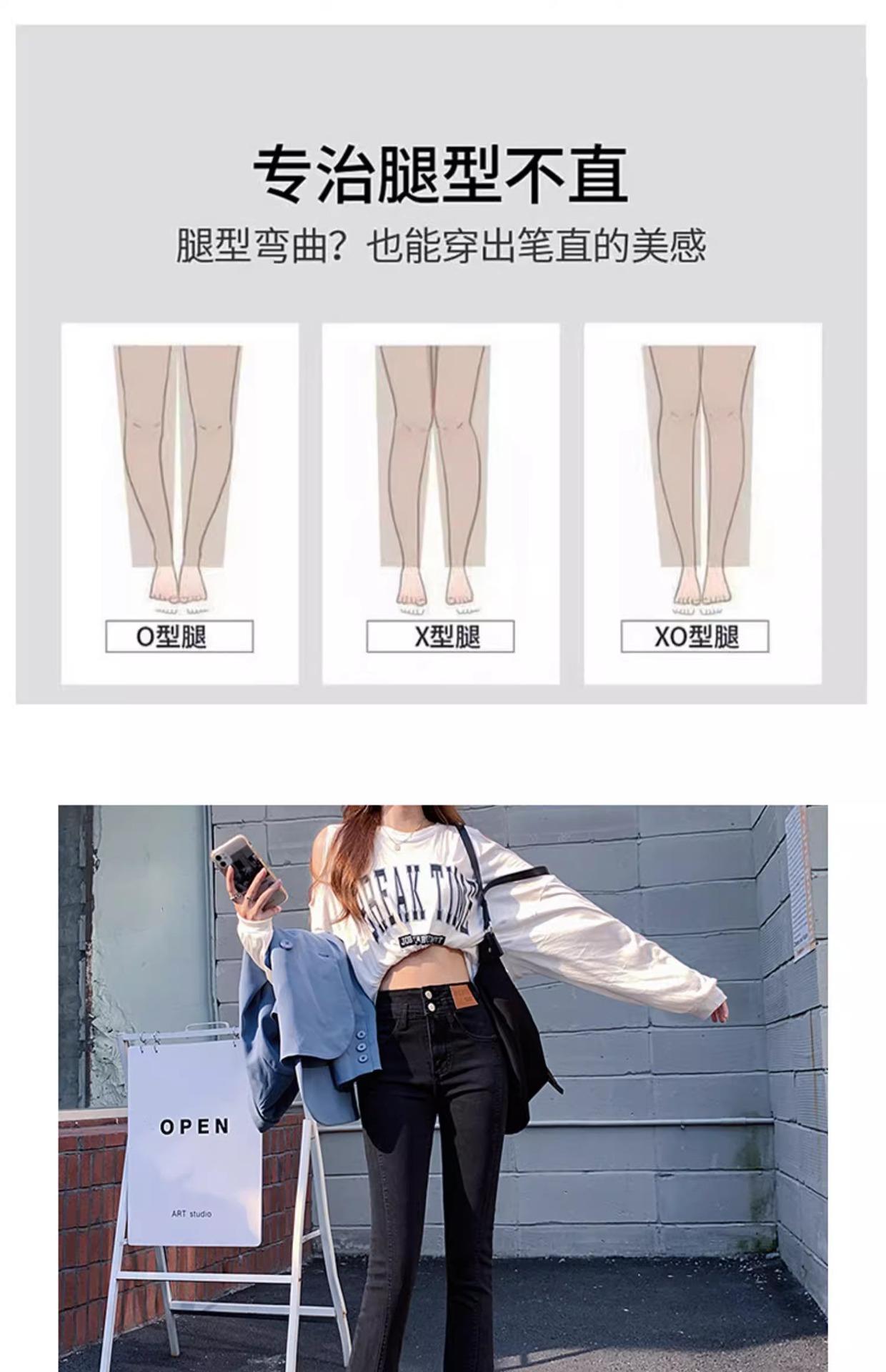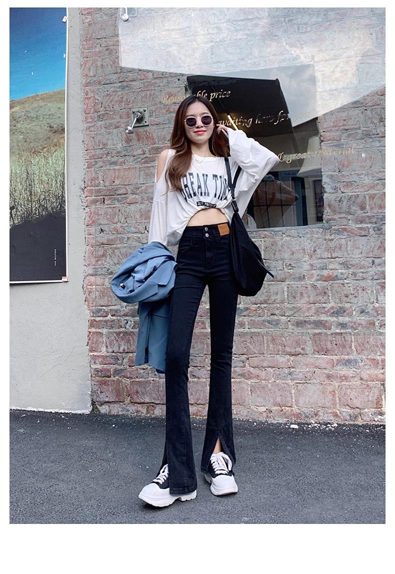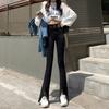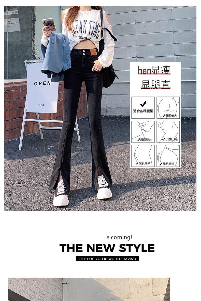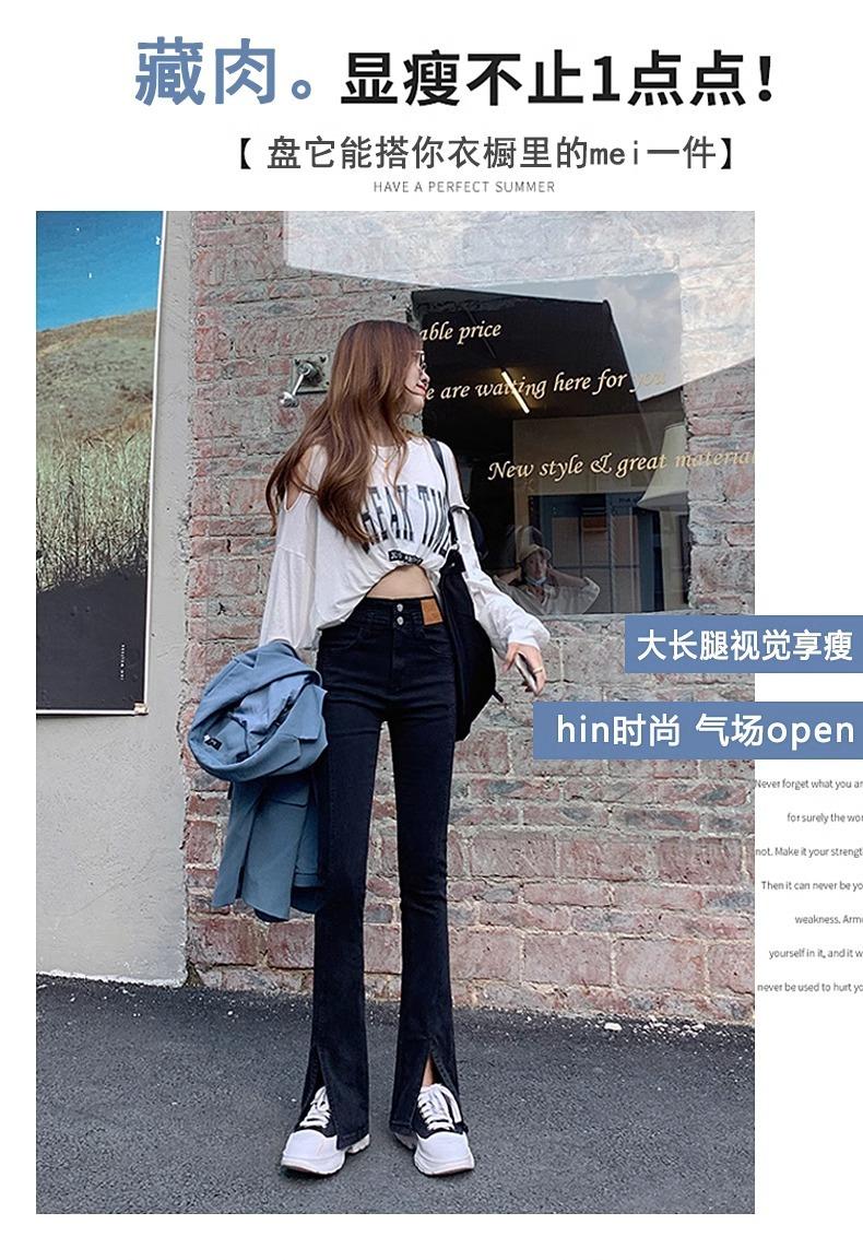 Jeans Negros Divididos Moda Otoño para Mujer Combinable Nuevo Explosivo Cintura Alta Adelgazantes Pantalones Microacampanados