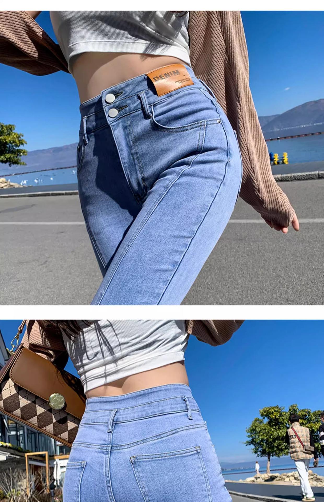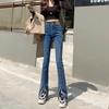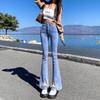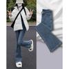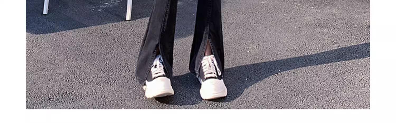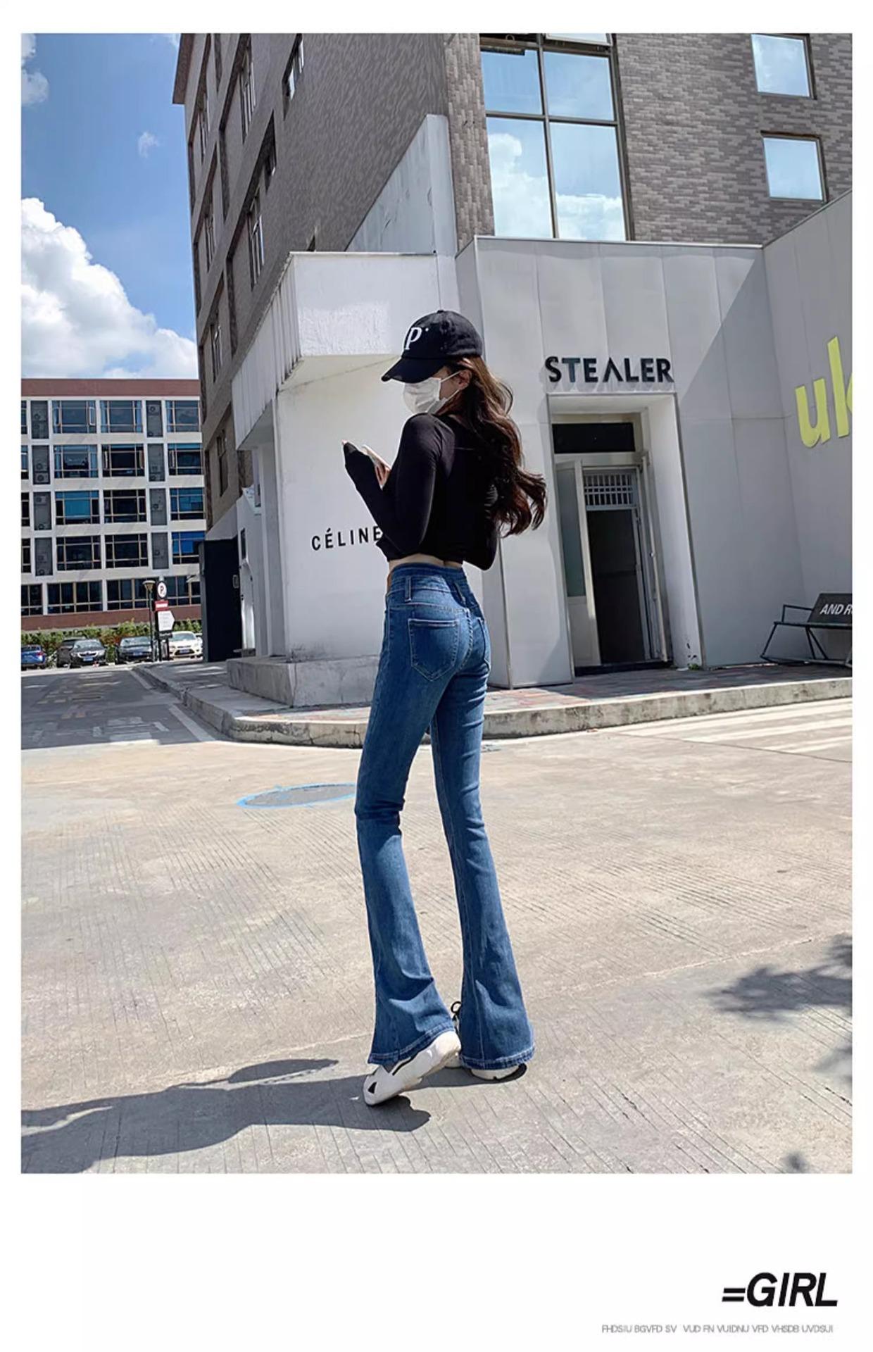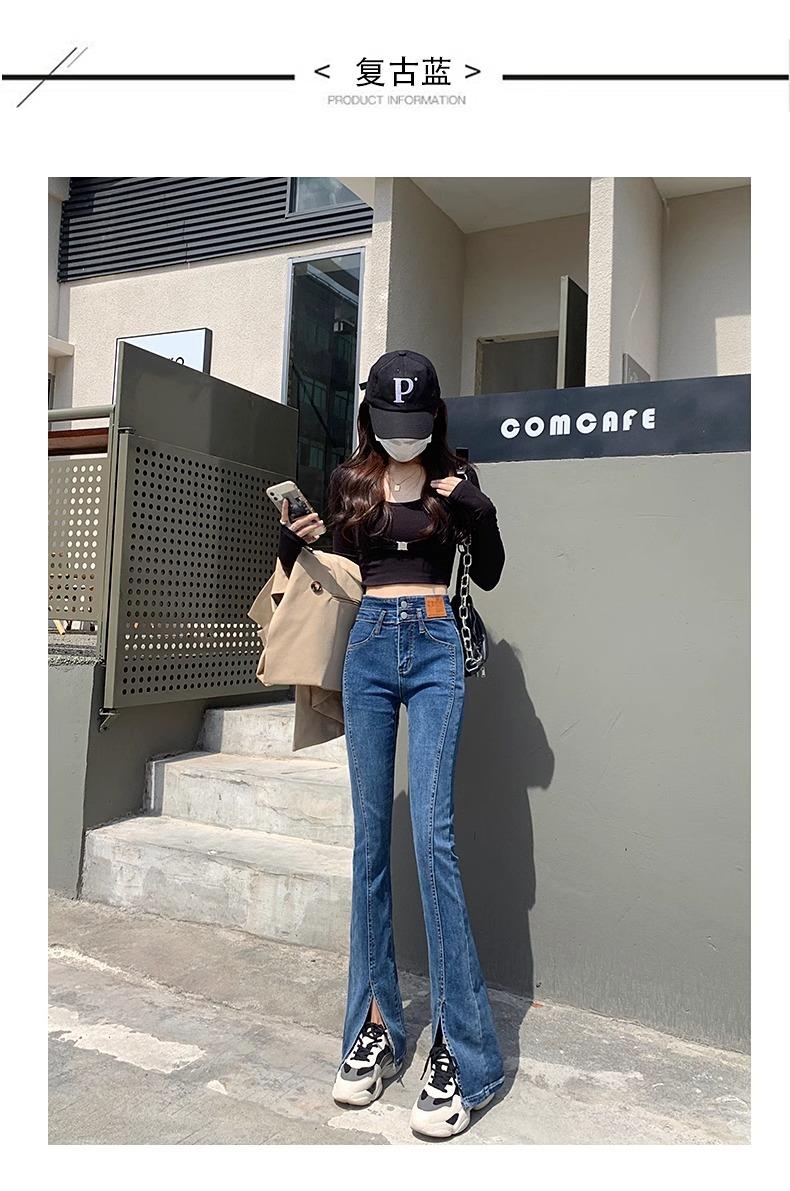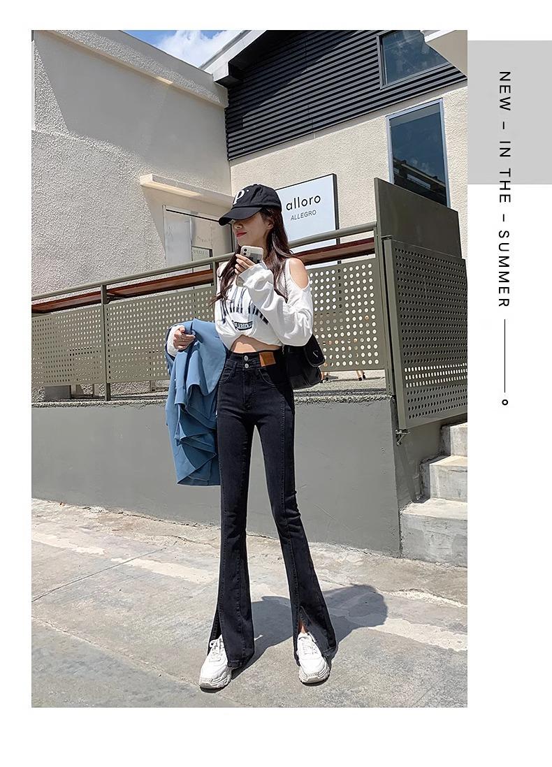 Jeans Negros Divididos Moda Otoño para Mujer Combinable Nuevo Explosivo Cintura Alta Adelgazantes Pantalones Microacampanados