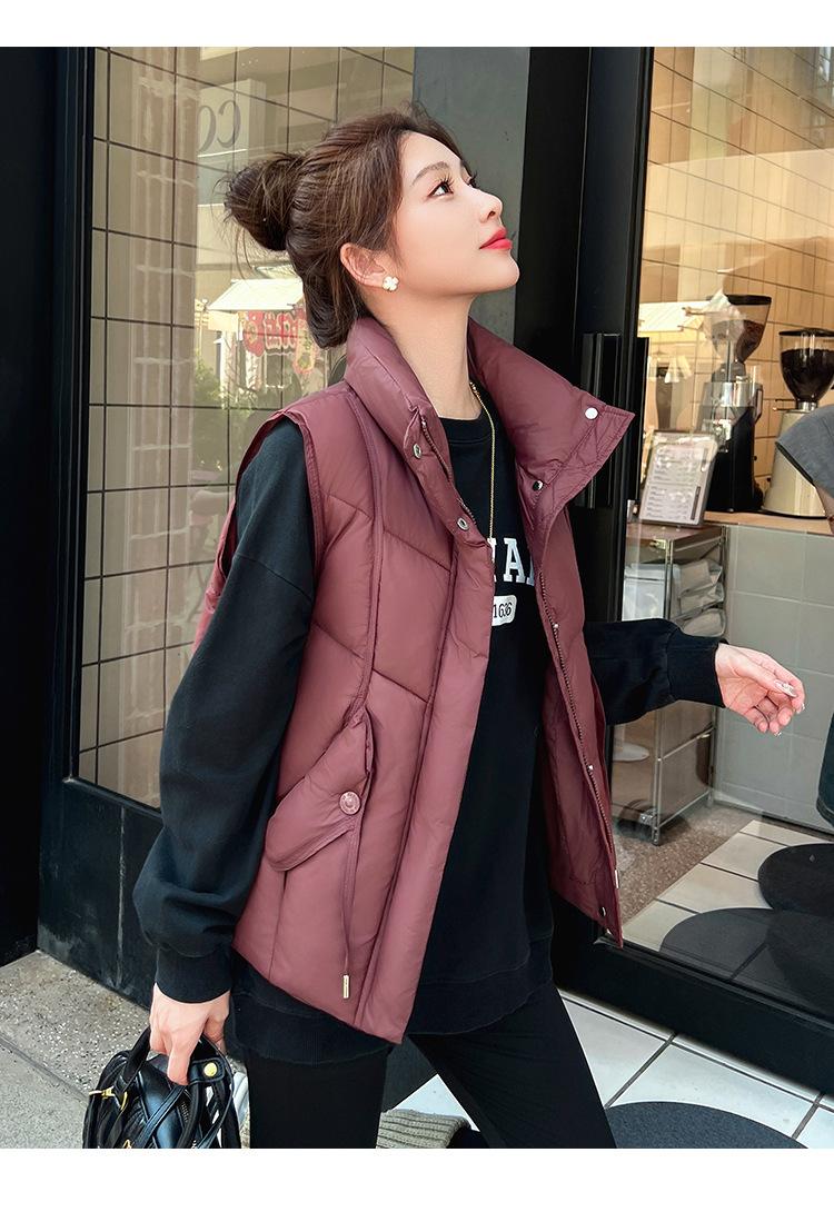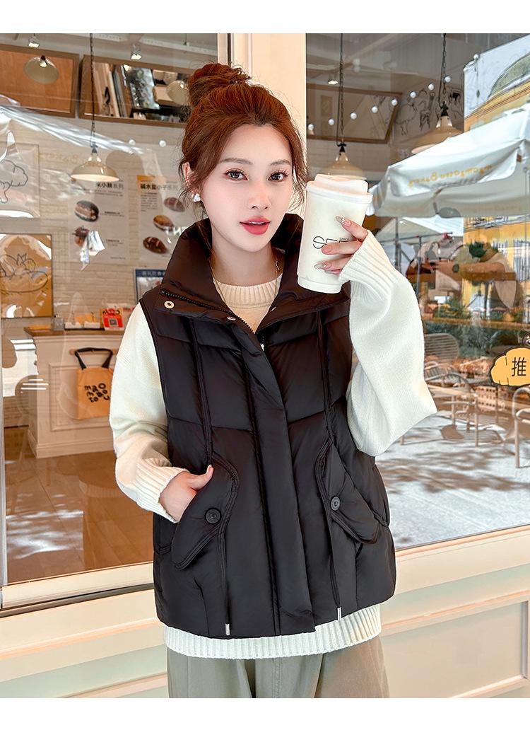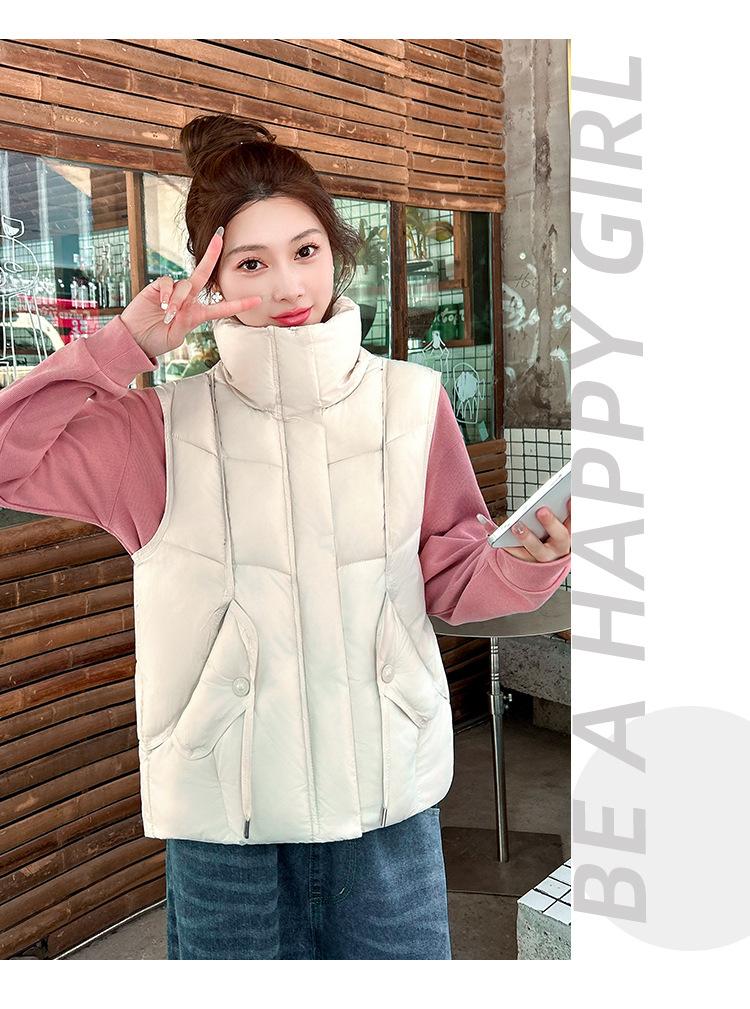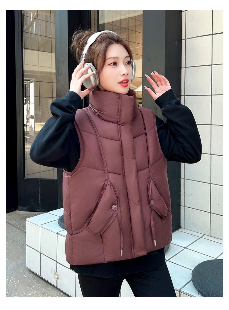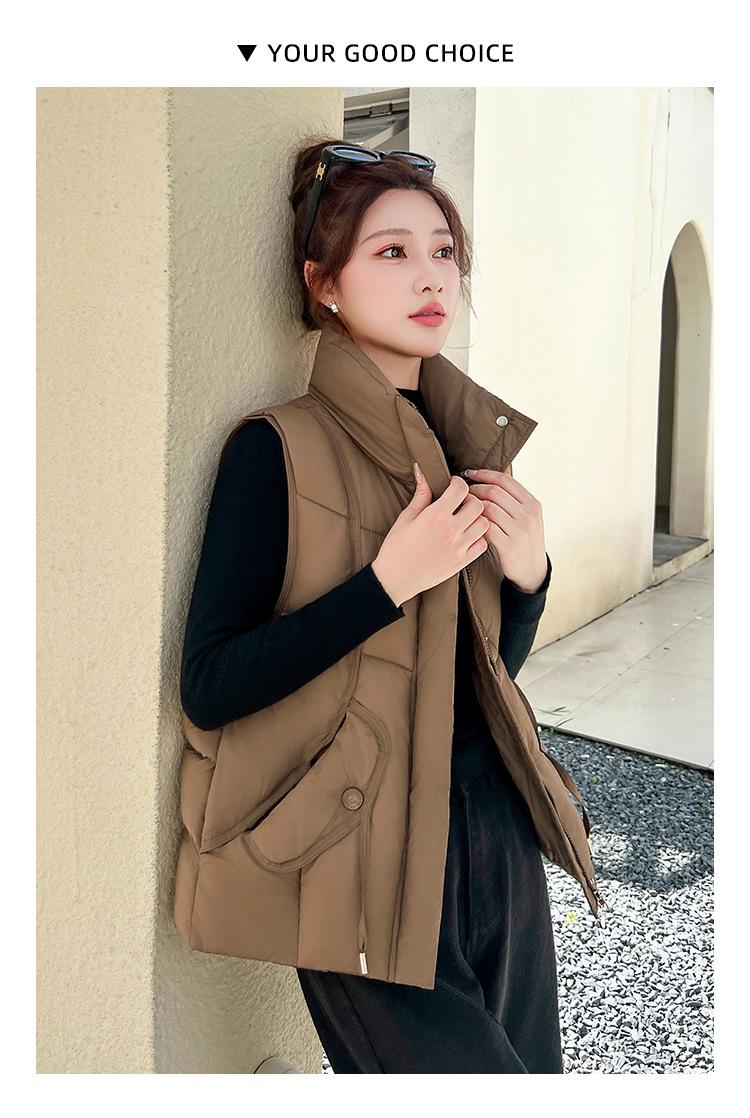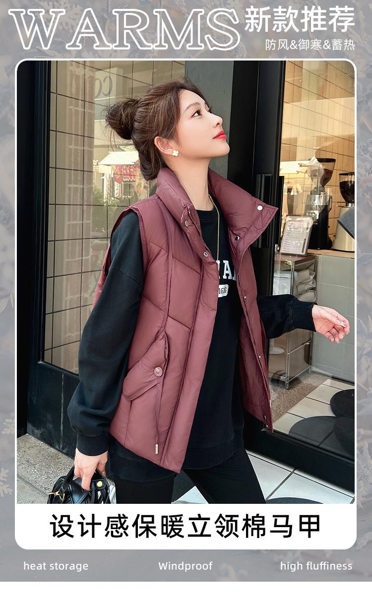 Chaleco de algodón para mujer estilo corto 2025 otoño e invierno nuevo estilo coreano versátil suelto cuello alto chaleco de algodón chaqueta sin mangas de algodón chaleco de algodón moderno
