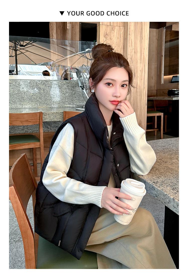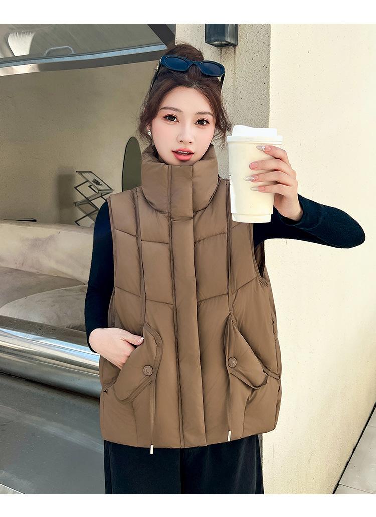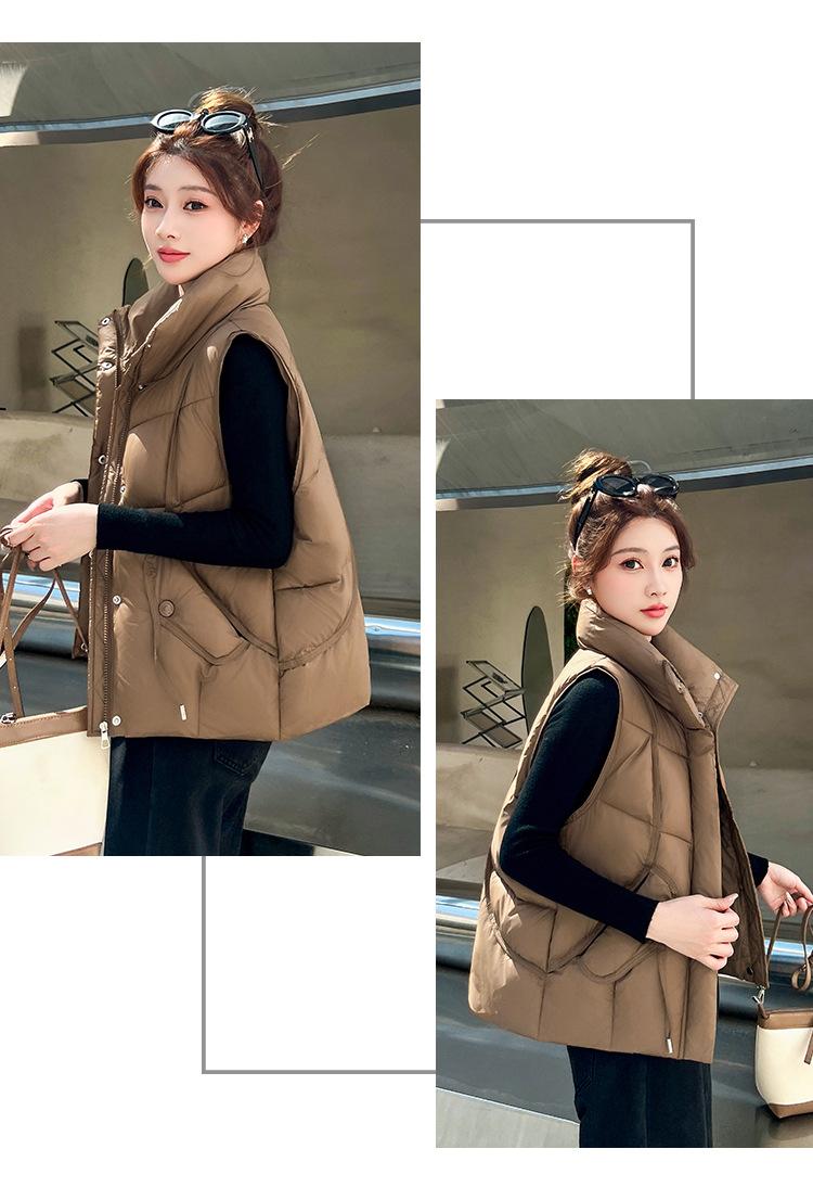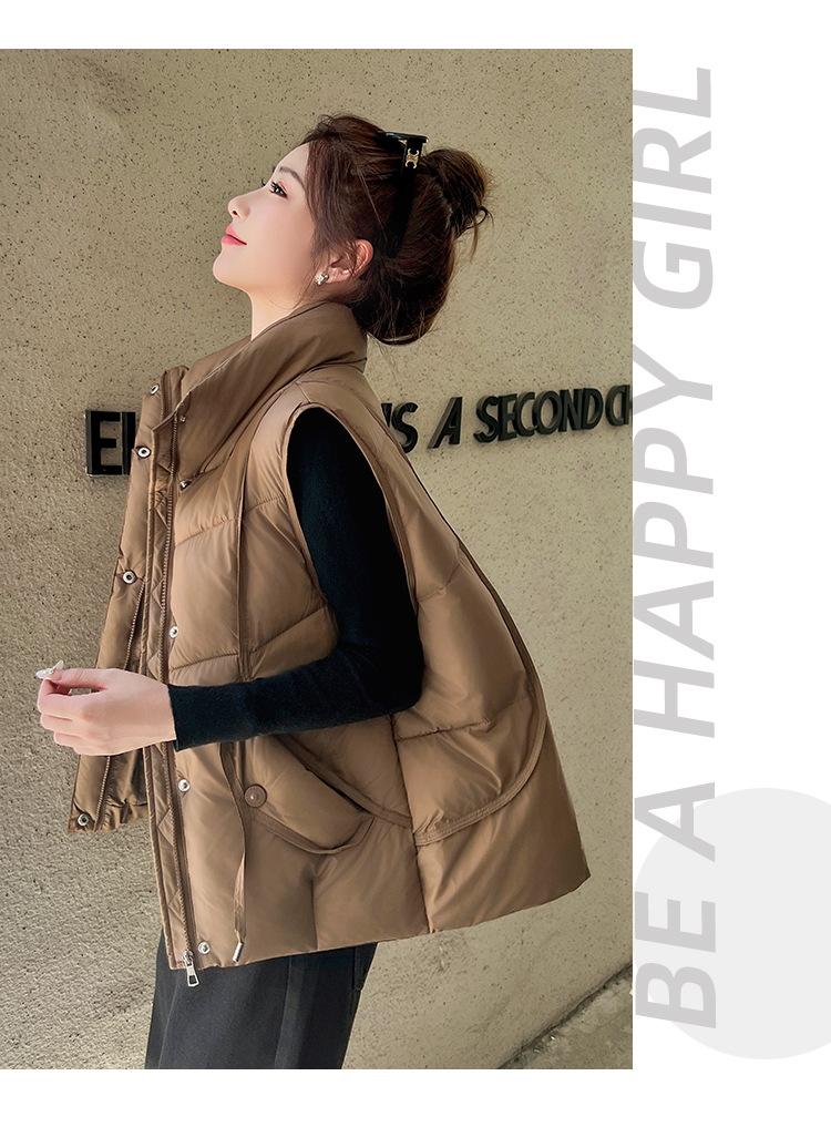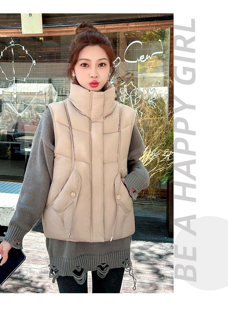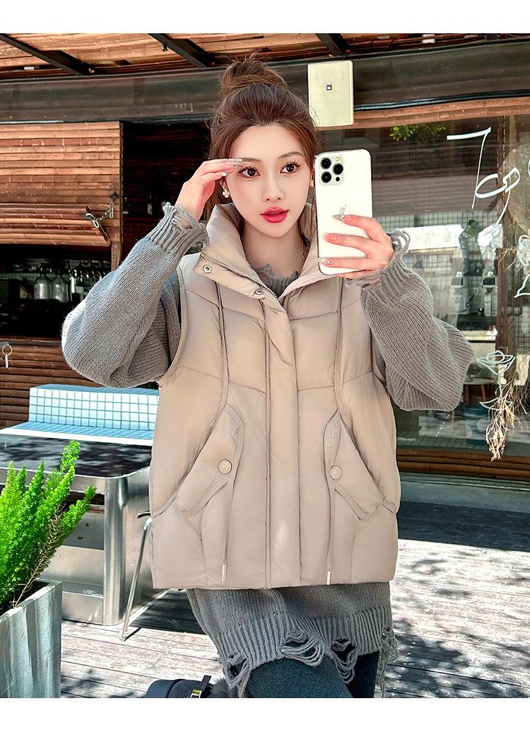Chaleco de algodón para mujer estilo corto 2025 otoño e invierno nuevo estilo coreano versátil suelto cuello alto chaleco de algodón chaqueta sin mangas de algodón chaleco de algodón moderno