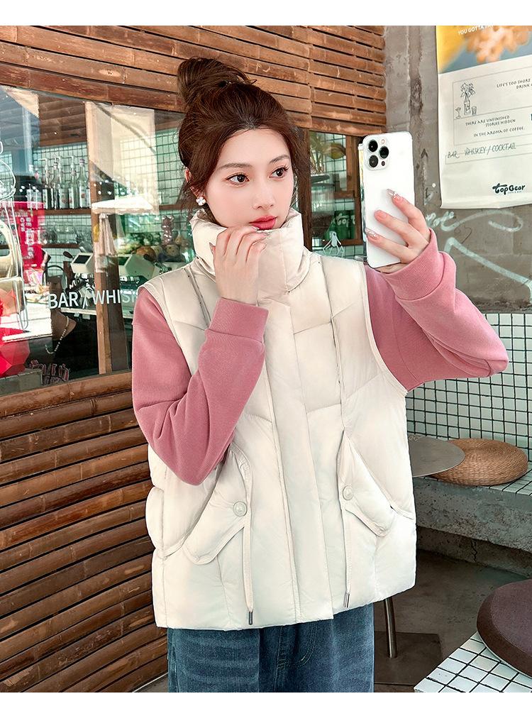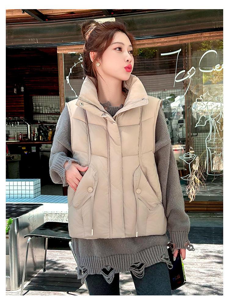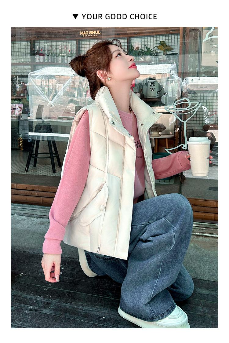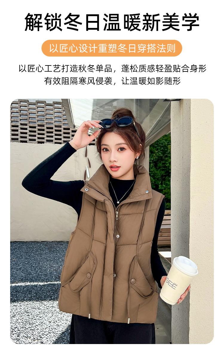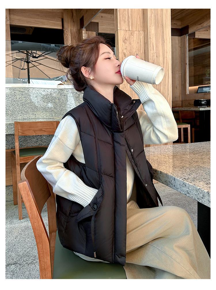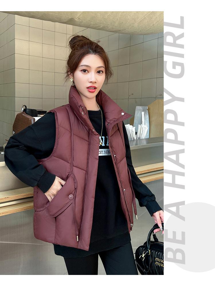 Chaleco de algodón para mujer estilo corto 2025 otoño e invierno nuevo estilo coreano versátil suelto cuello alto chaleco de algodón chaqueta sin mangas de algodón chaleco de algodón moderno
