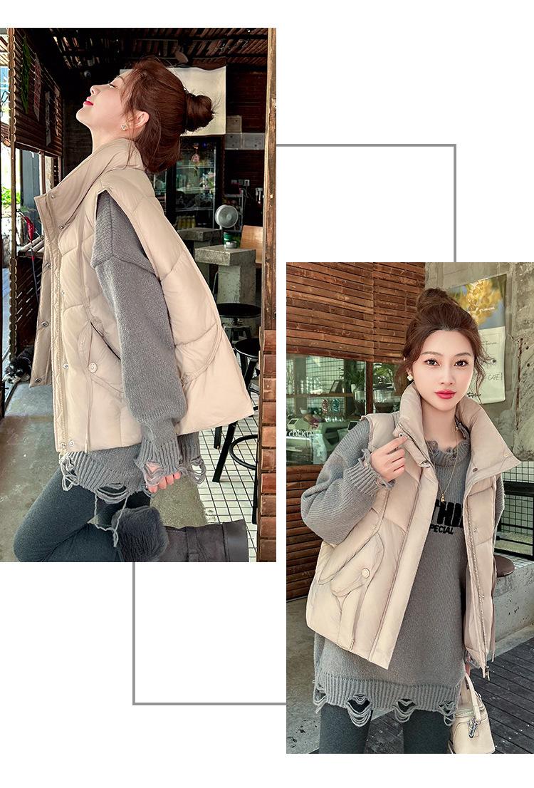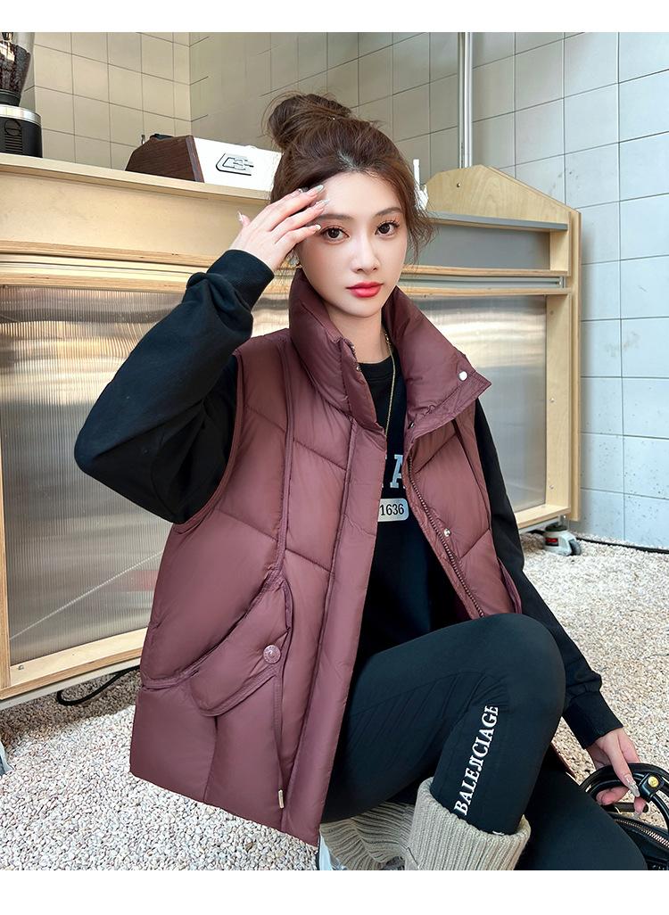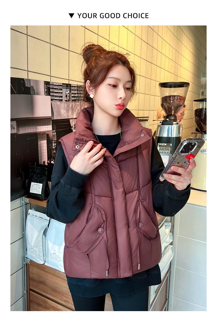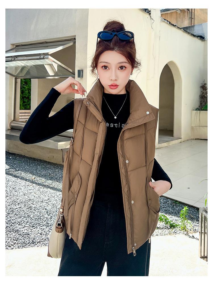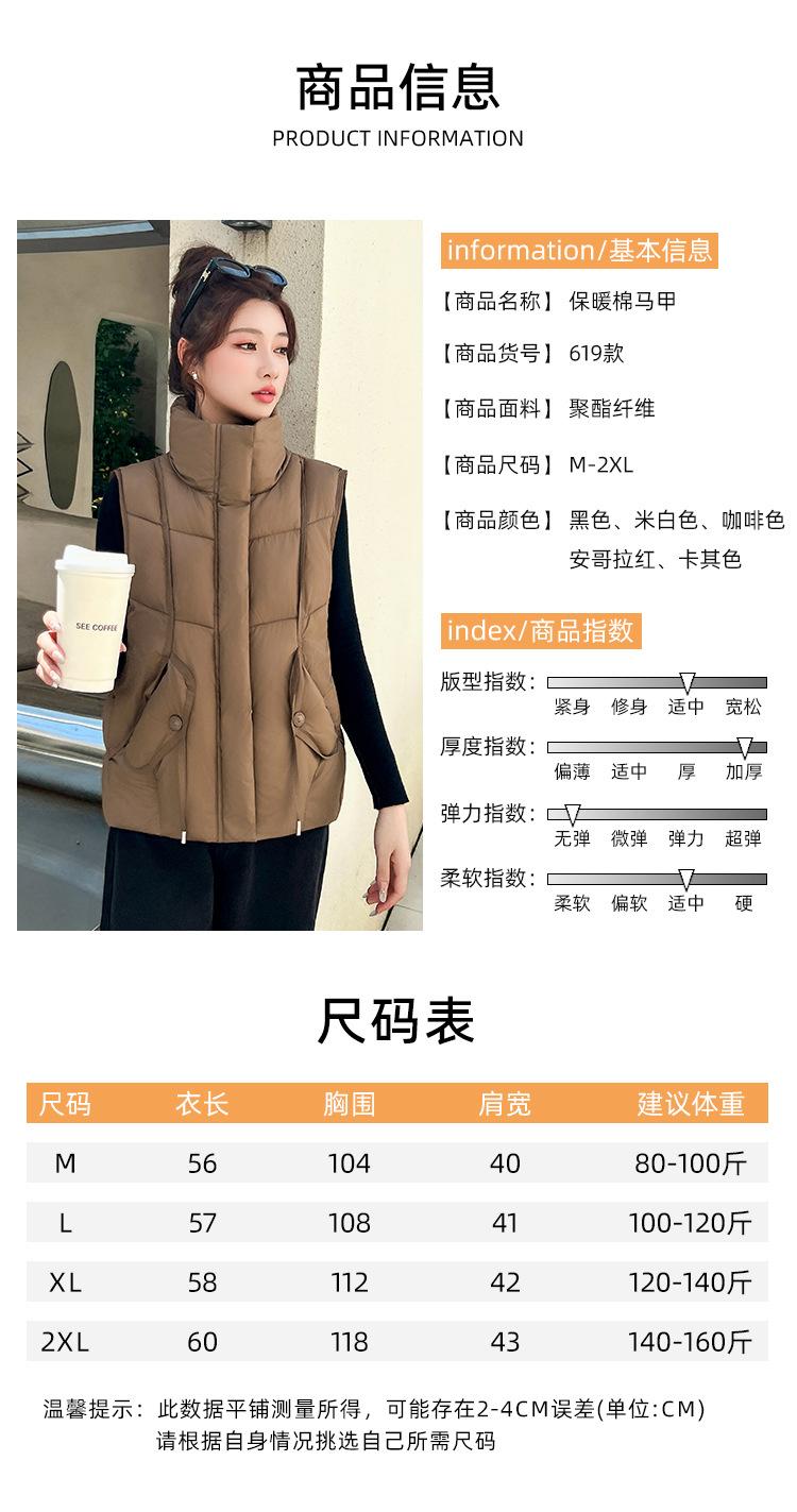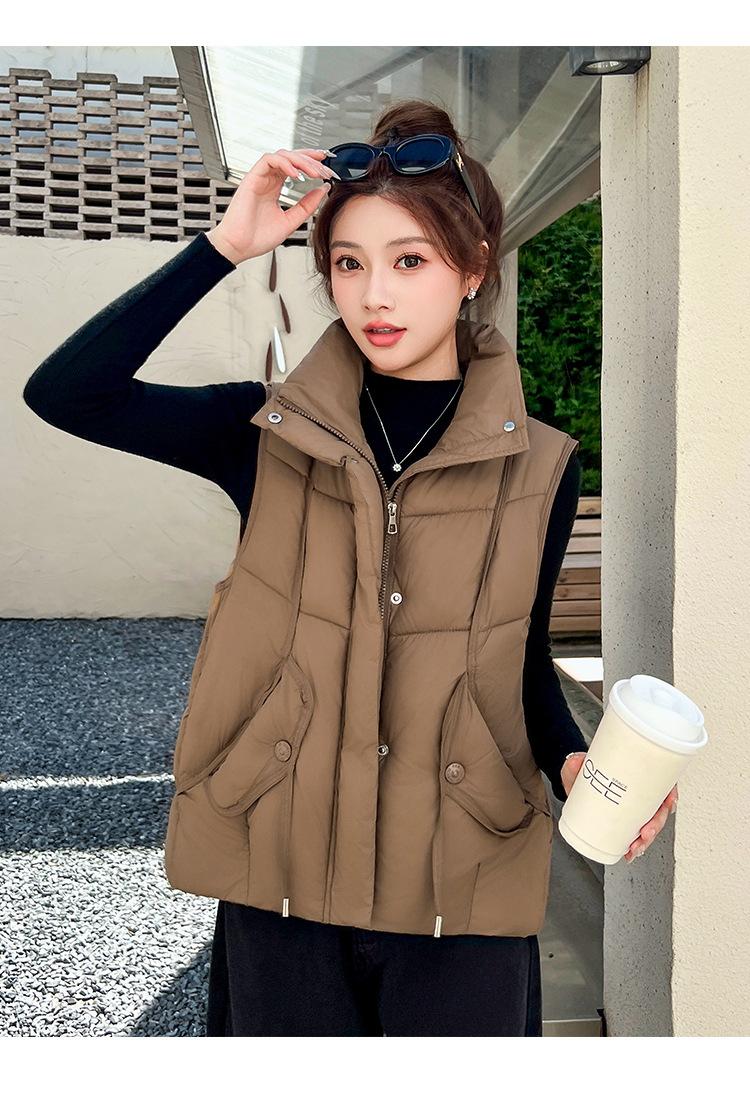 Chaleco de algodón para mujer estilo corto 2025 otoño e invierno nuevo estilo coreano versátil suelto cuello alto chaleco de algodón chaqueta sin mangas de algodón chaleco de algodón moderno