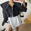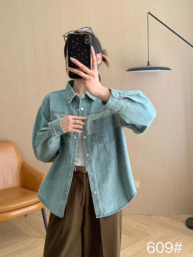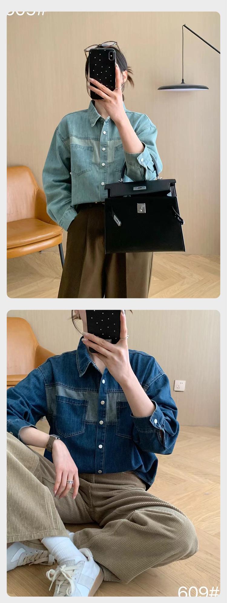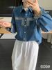 Chamarra de mezclilla estilo japonés vintage lavado para mujer, diseño apilado, sentido del diseño, holgada, estilo nuevo, ropa superior, chamarra camisa para mujer