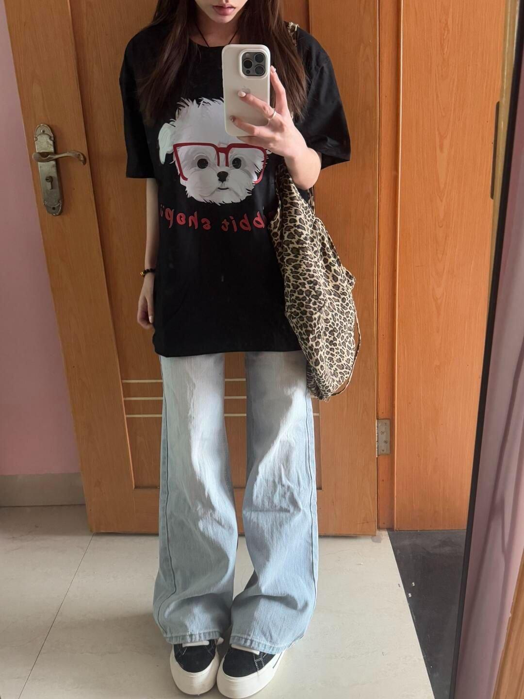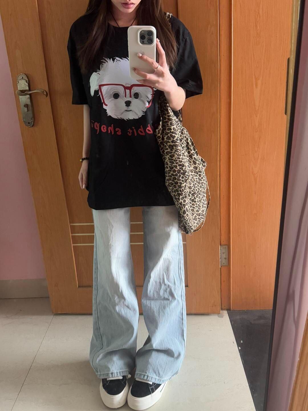 Playera Estampada de Media Manga Algodón Playera de Manga Corta Talla Grande para Mujer Dulce y Cool Creativa Floja Estilo Europeo y Americano Top para Hombre