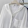 Camisa Delgada de Manga Larga con Capucha para Mujer 2025 Verano Nuevo Diseño Holgado Microtransparente Versátil Protección Solar Top Cárdigan