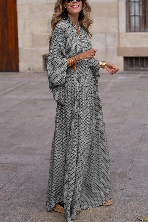 Vestido de Otoño de Estilo Europeo y Americano 2023 de Manga Larga Holgado con Cuello en V Cintura Bajo Amplio para Mujer