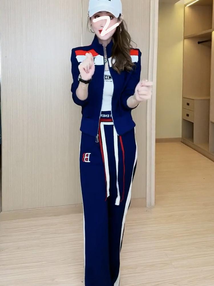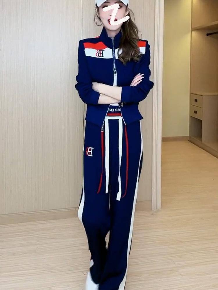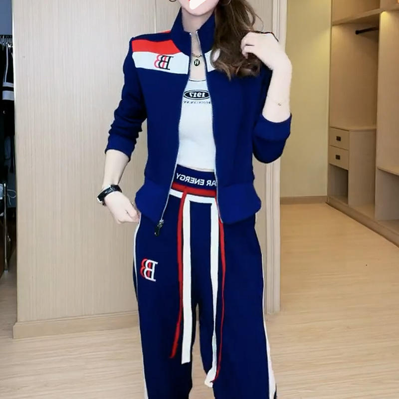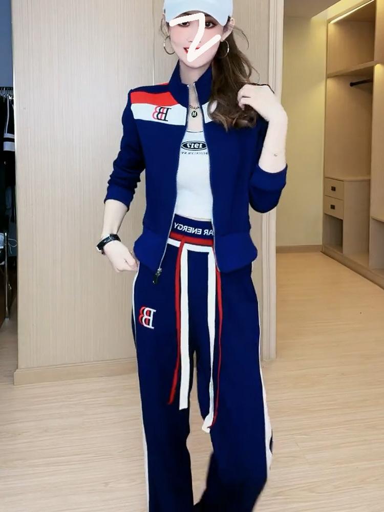 Traje Deportivo de Otoño para Mujer 2022 Nuevo Estilo de Moda Versátil Sudadera Europea Chaqueta Conjunto de Dos Piezas Trendy