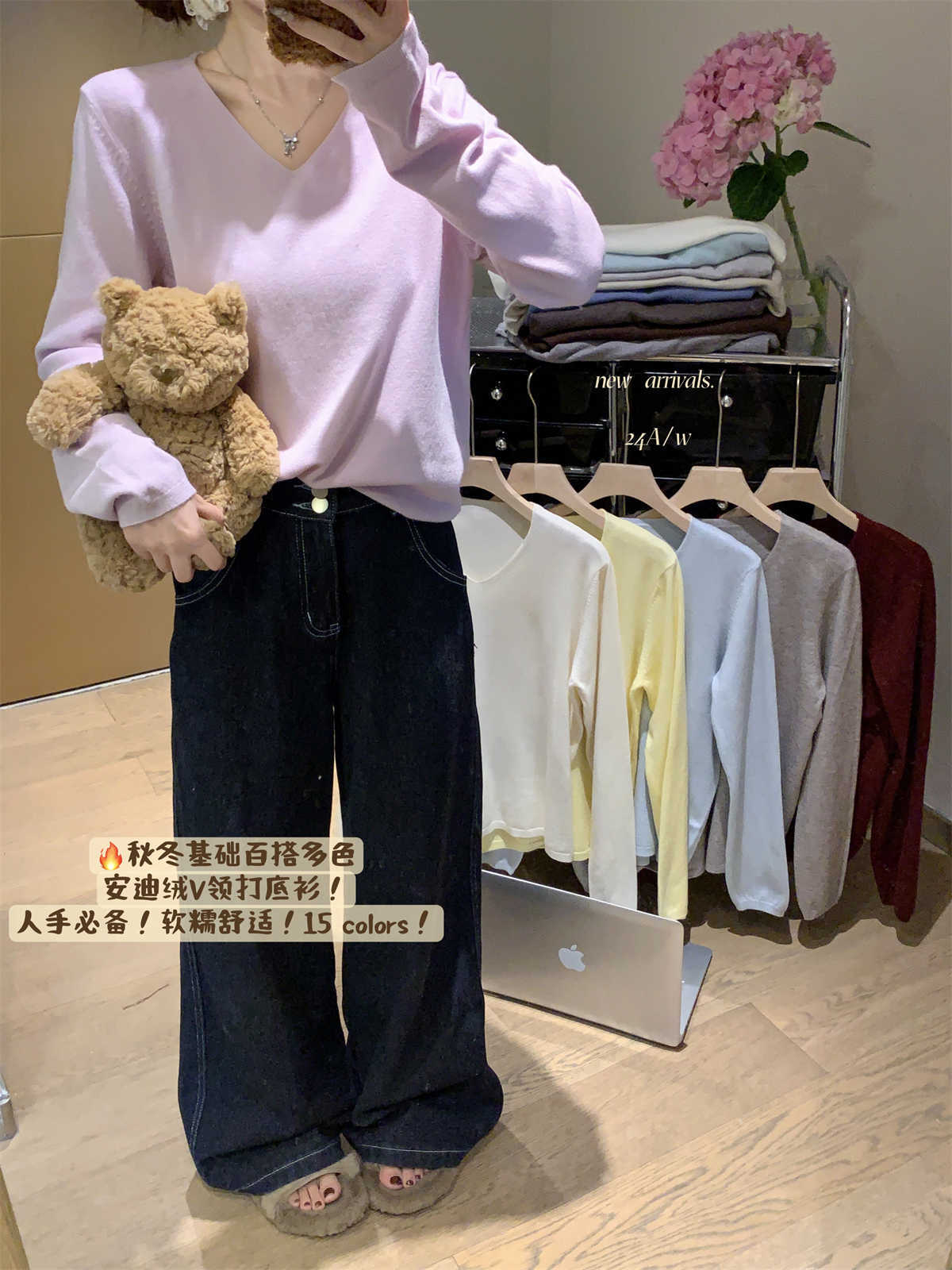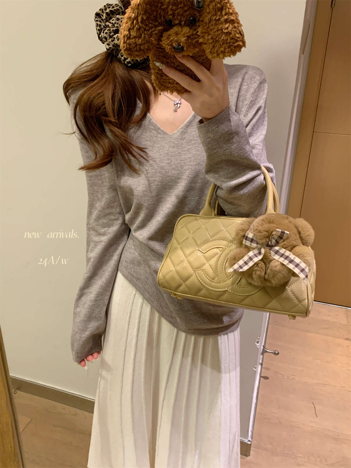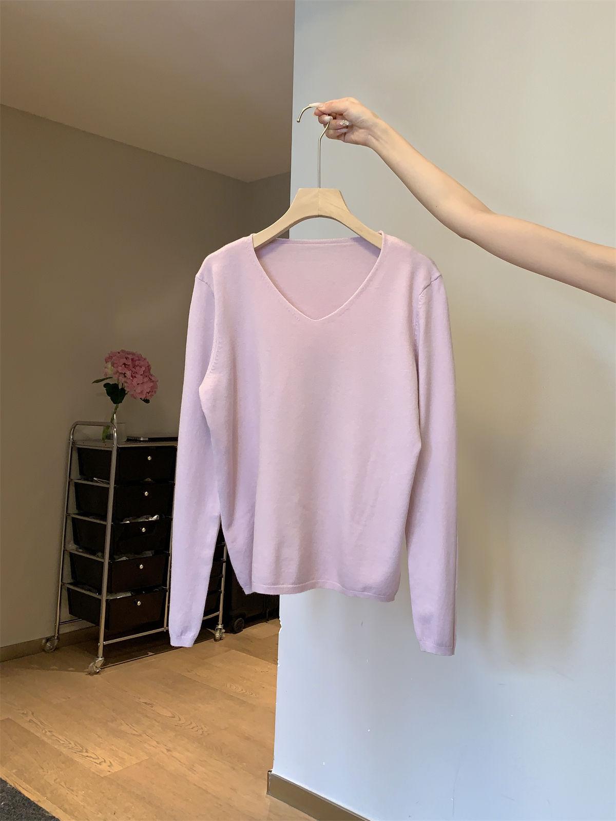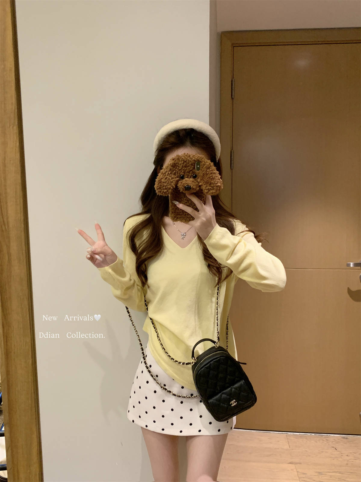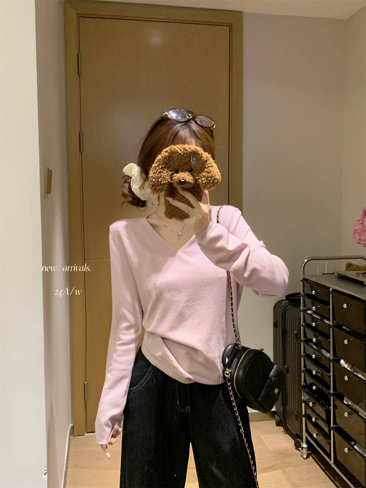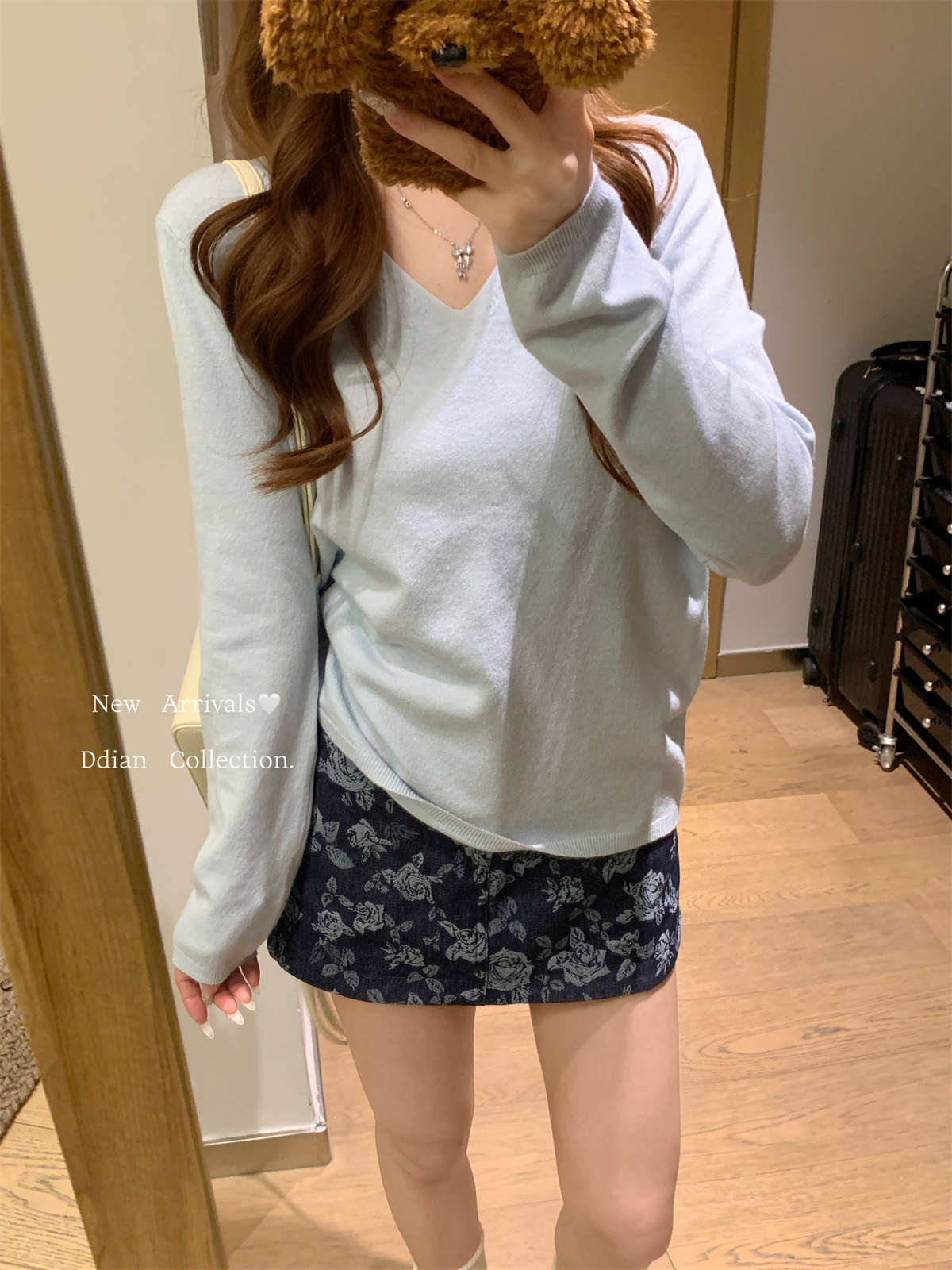 Suéter de Punto Romántico Esponjoso Versátil de Cuello en V Casual de Manga Larga Estilo Francés para Mujer, Elegante Capa Base de Suéter Combinable para Principios de Primavera