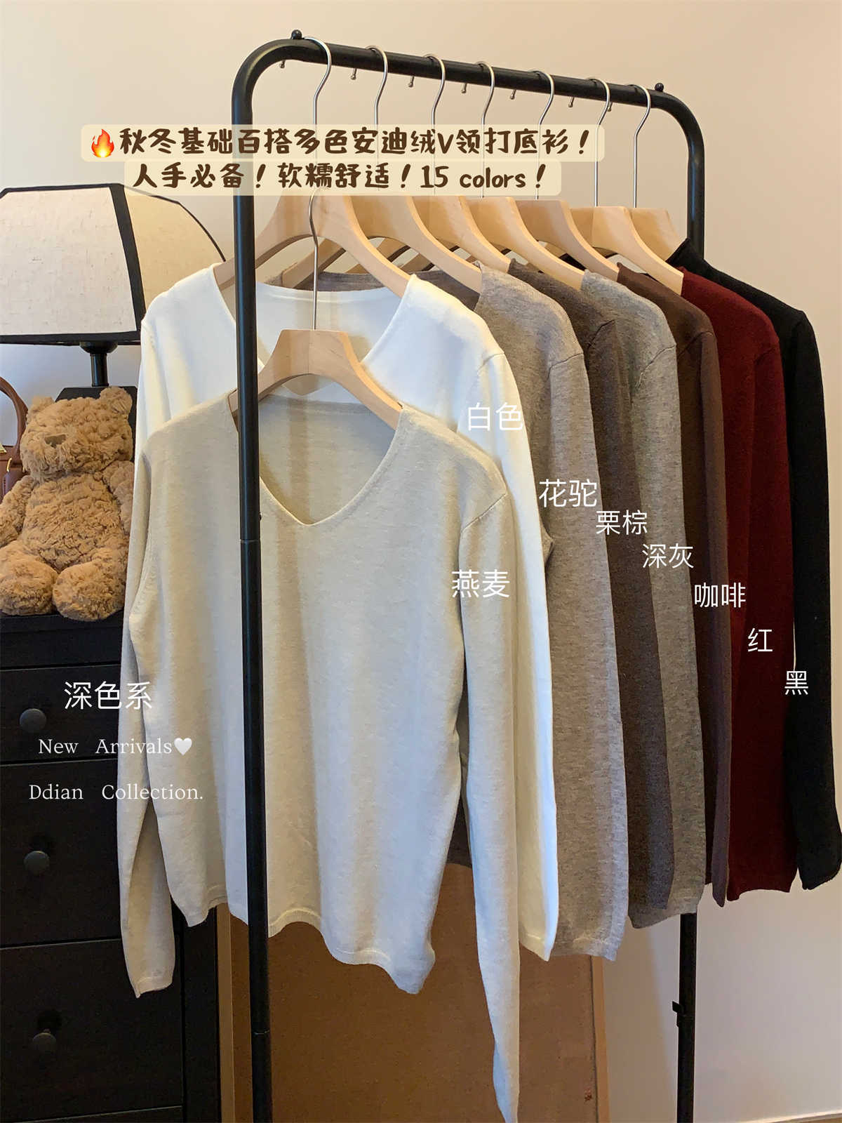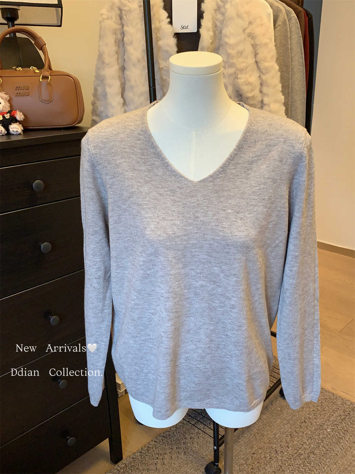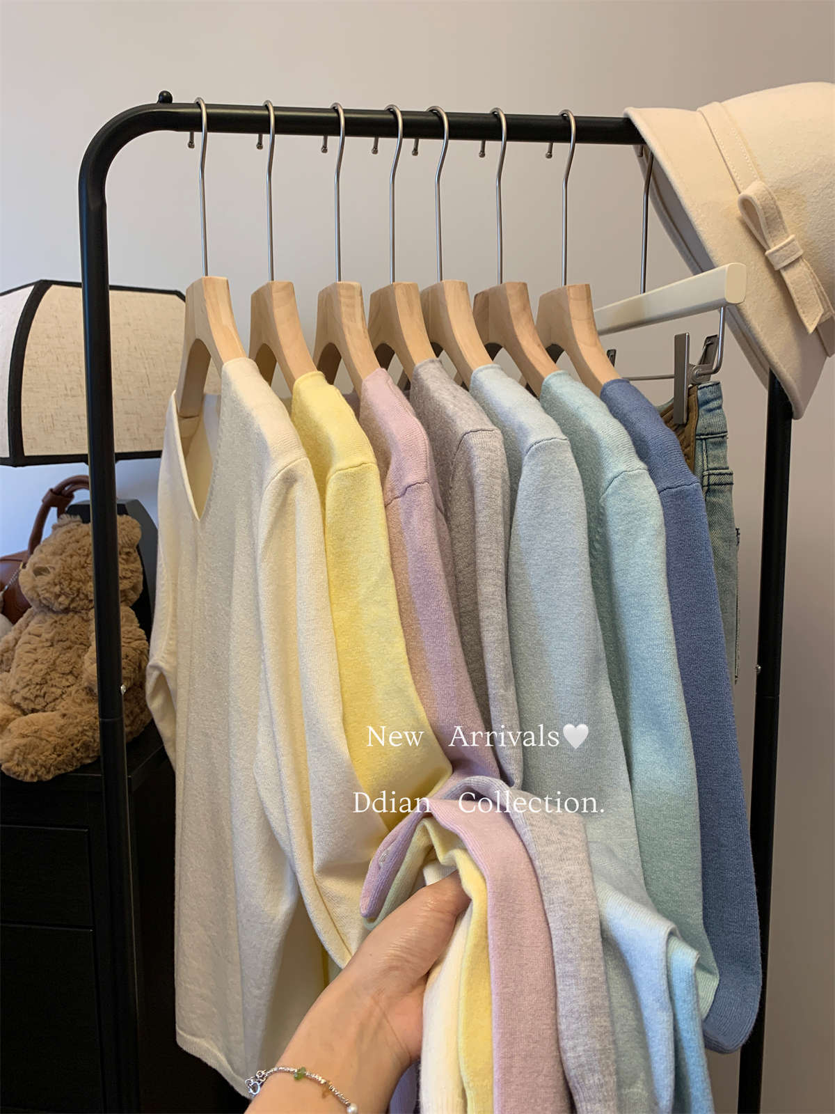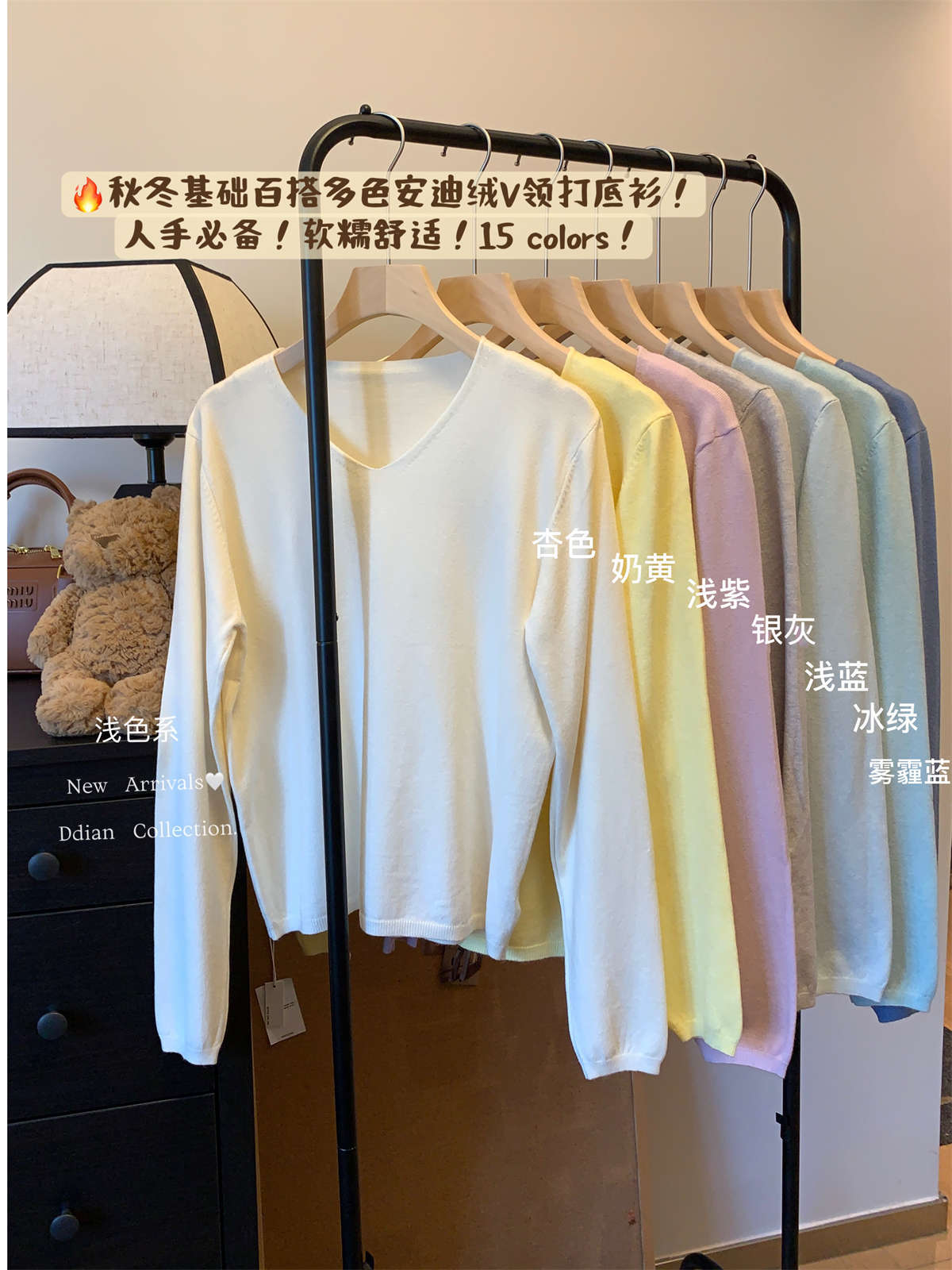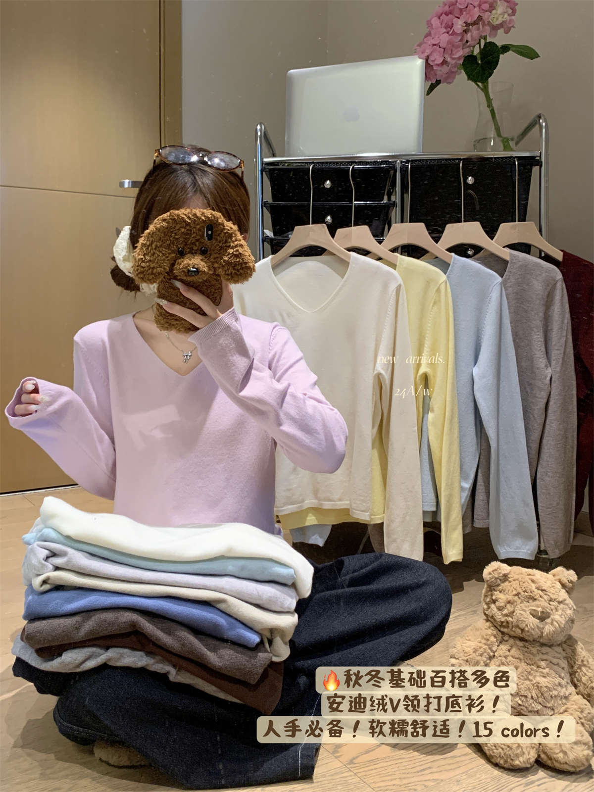 Suéter de Punto Romántico Esponjoso Versátil de Cuello en V Casual de Manga Larga Estilo Francés para Mujer, Elegante Capa Base de Suéter Combinable para Principios de Primavera