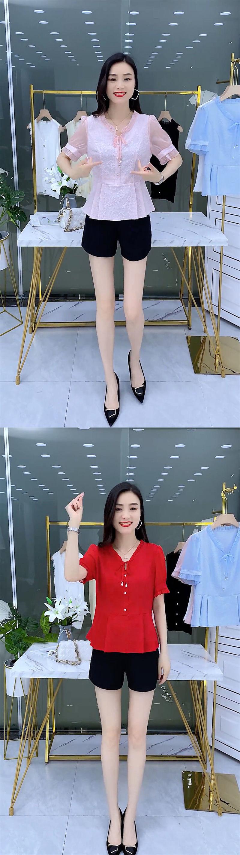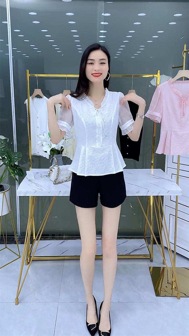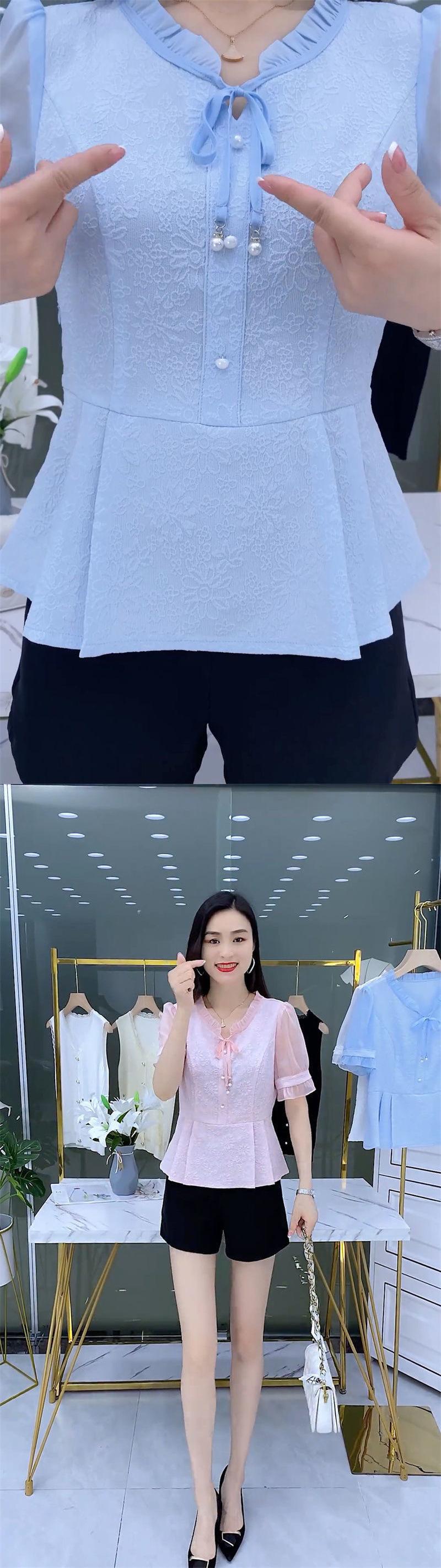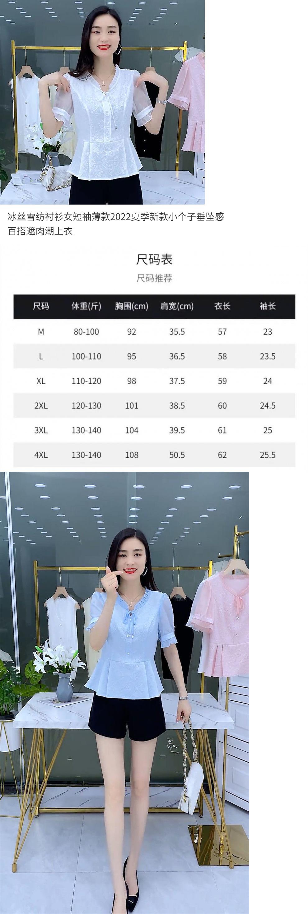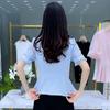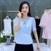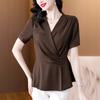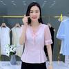Camisa de Gasa Jacquard para Mujer Manga Corta Delgada Verano 2025 Nuevo Estilo Petite Drapeada Cubre Vientre Versátil Top de Moda