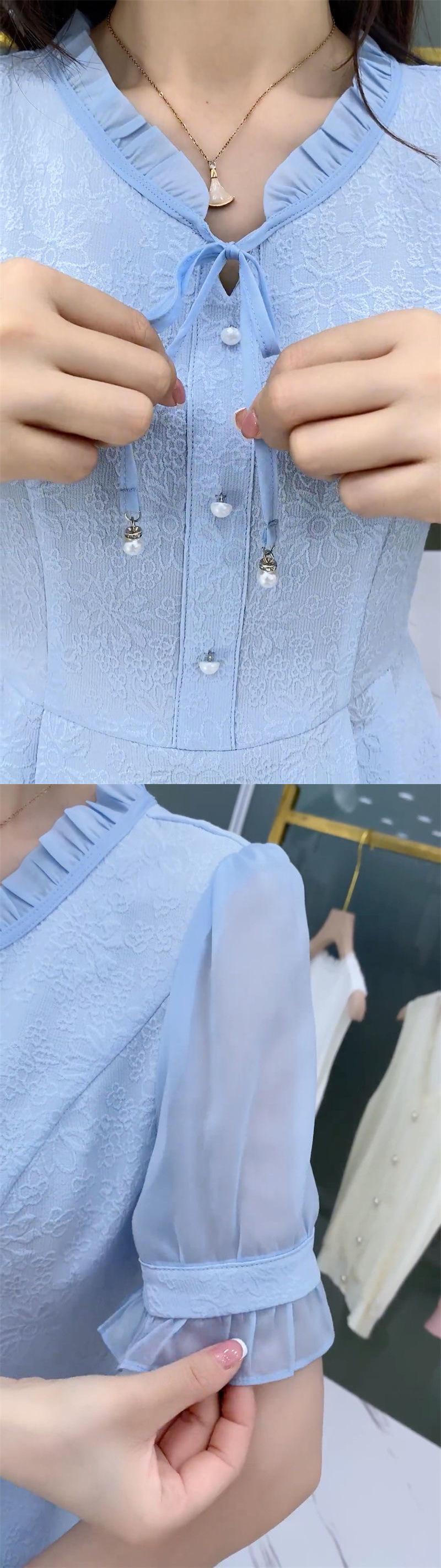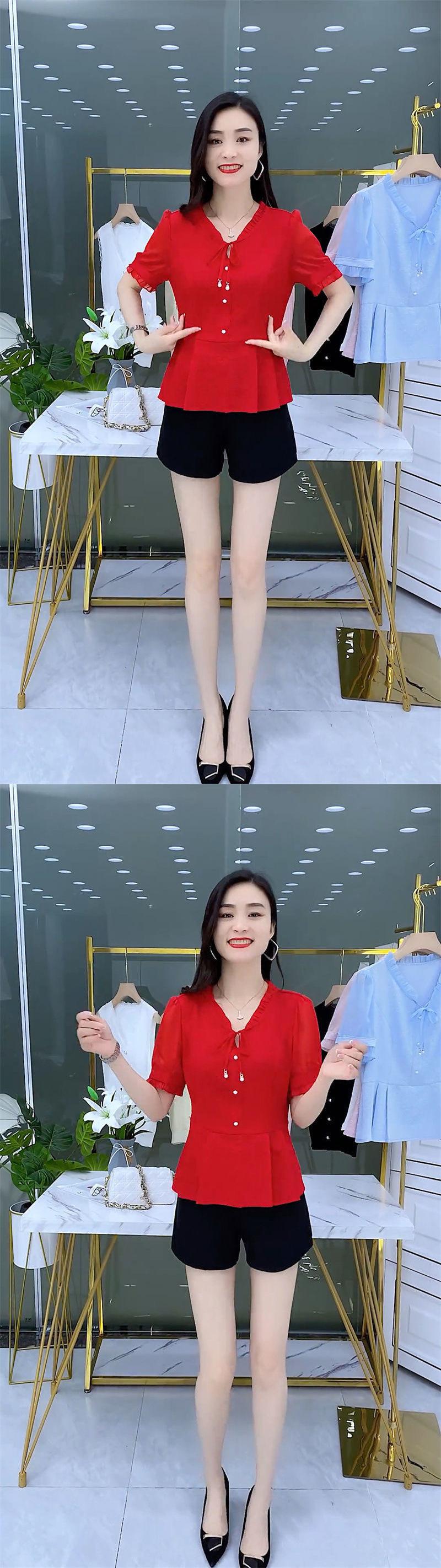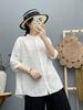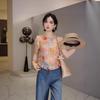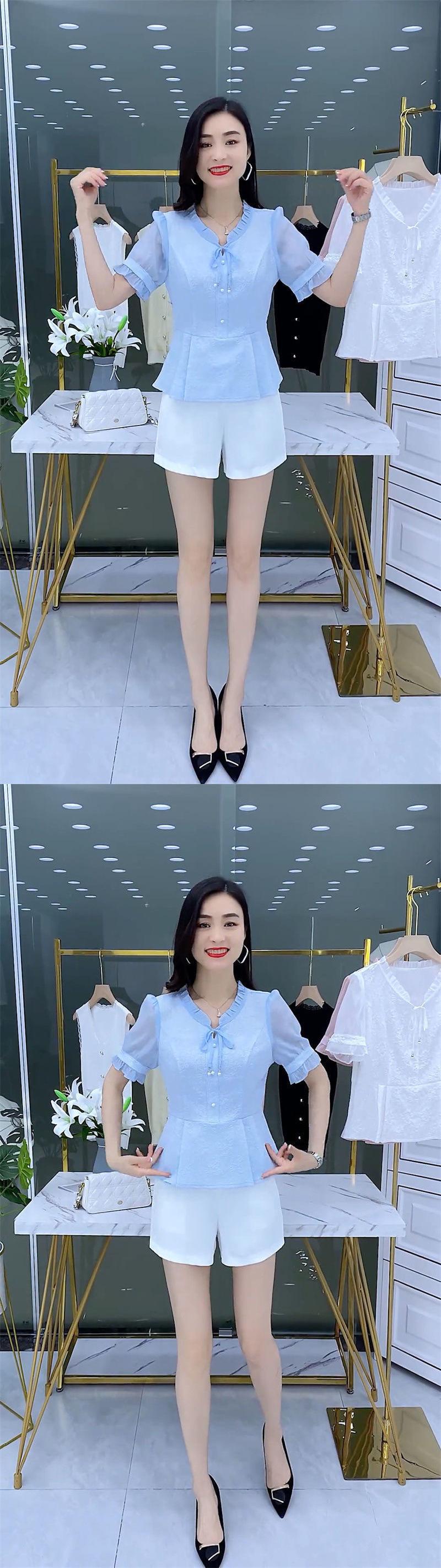 Camisa de Gasa Jacquard para Mujer Manga Corta Delgada Verano 2025 Nuevo Estilo Petite Drapeada Cubre Vientre Versátil Top de Moda