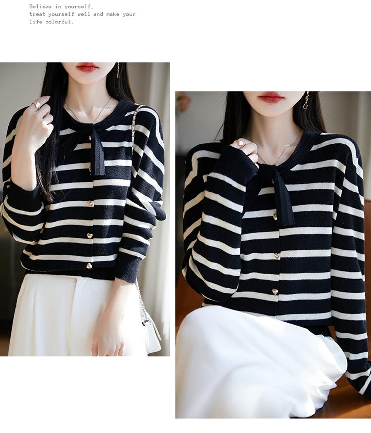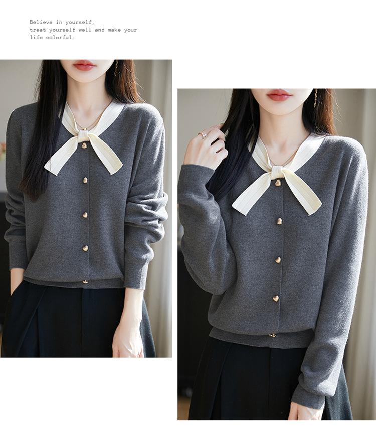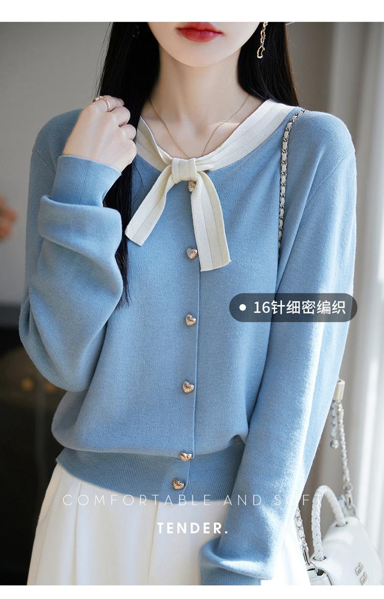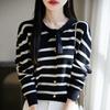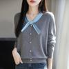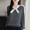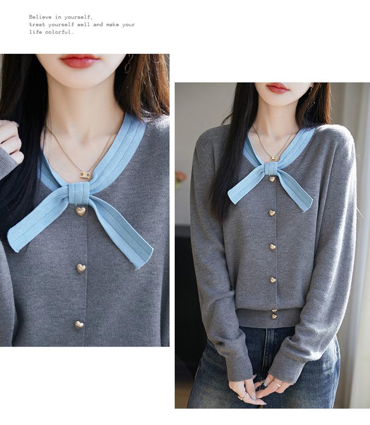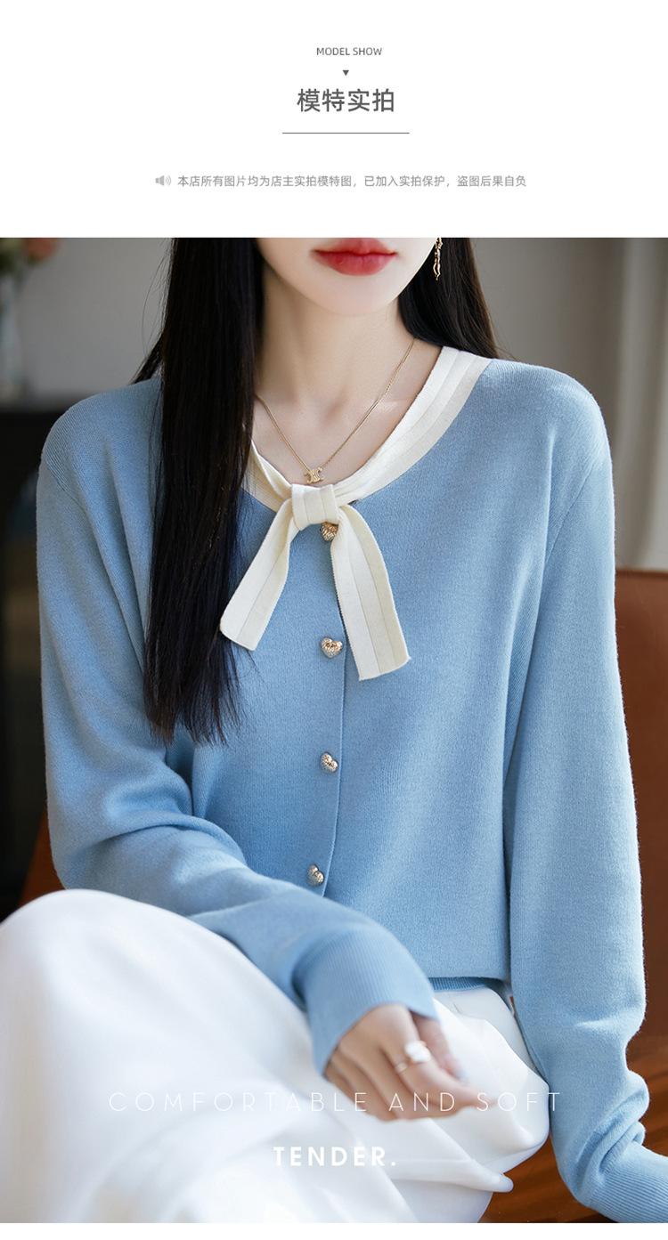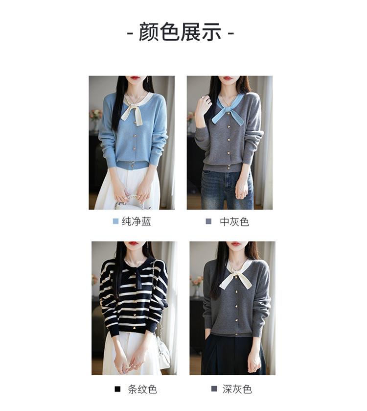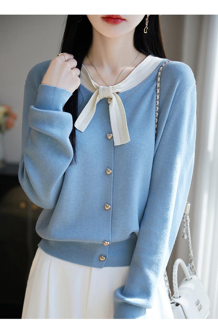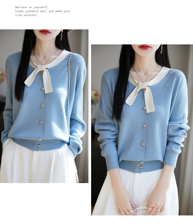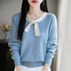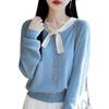 Cárdigan de Punto de Lazo de Verano Nuevo 2025 de Seda Lana Cuello Redondo Manga Larga Holgado Versátil Combinación de Colores Top