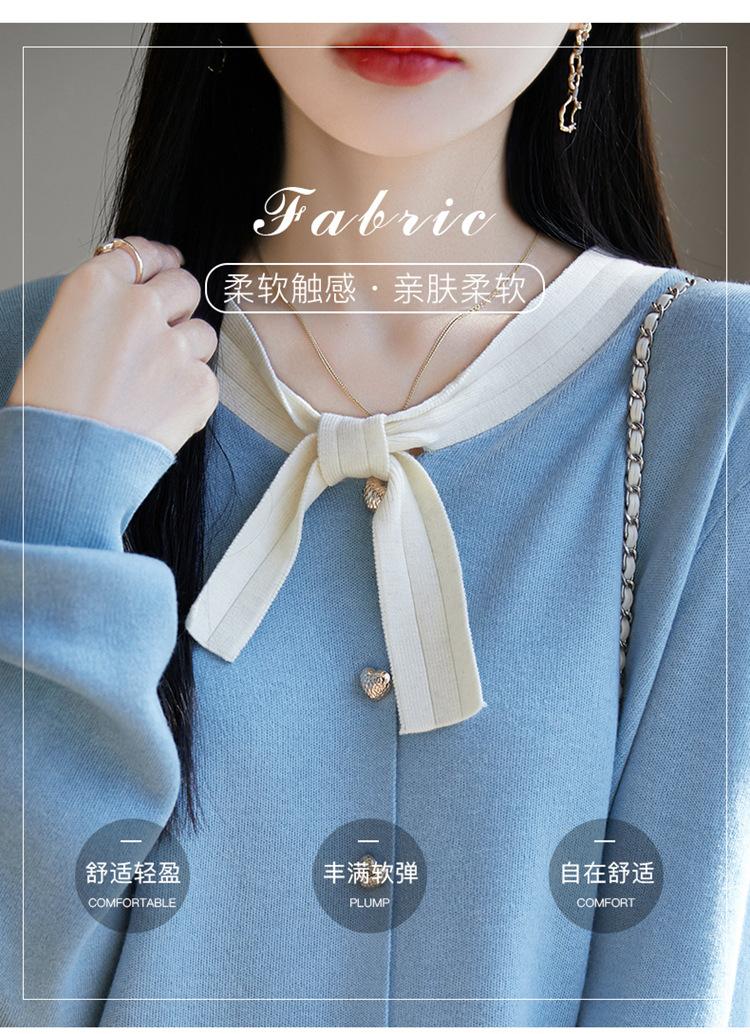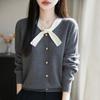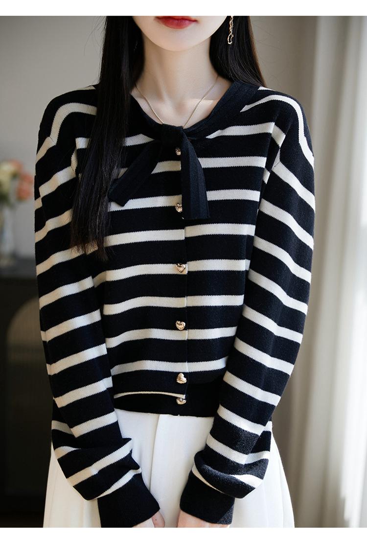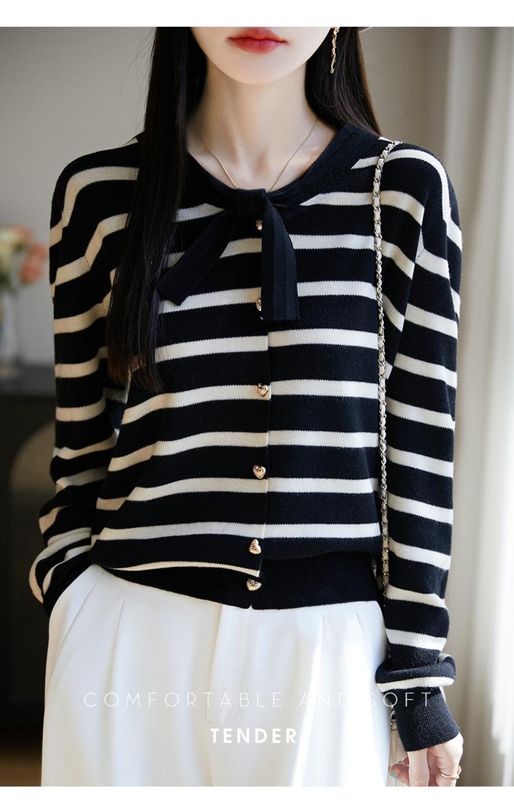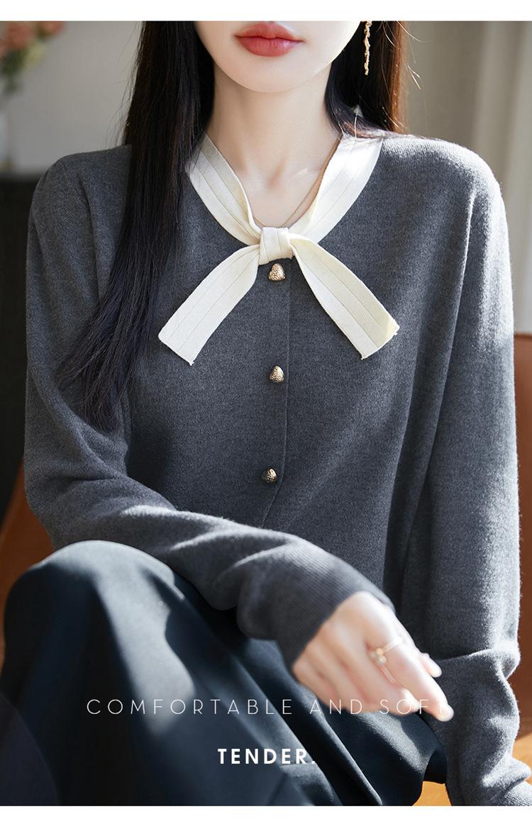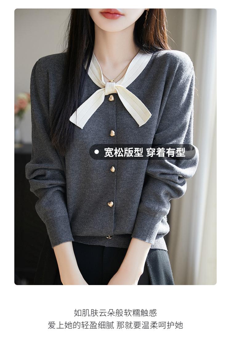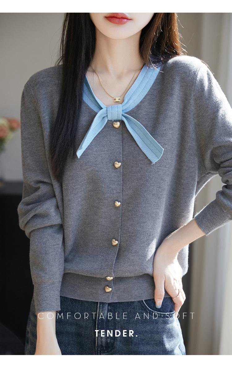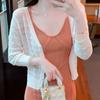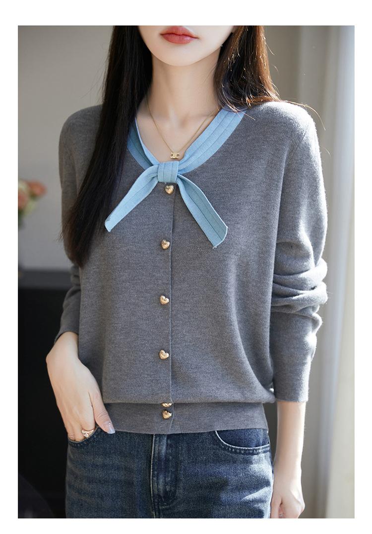 Cárdigan de Punto de Lazo de Verano Nuevo 2025 de Seda Lana Cuello Redondo Manga Larga Holgado Versátil Combinación de Colores Top