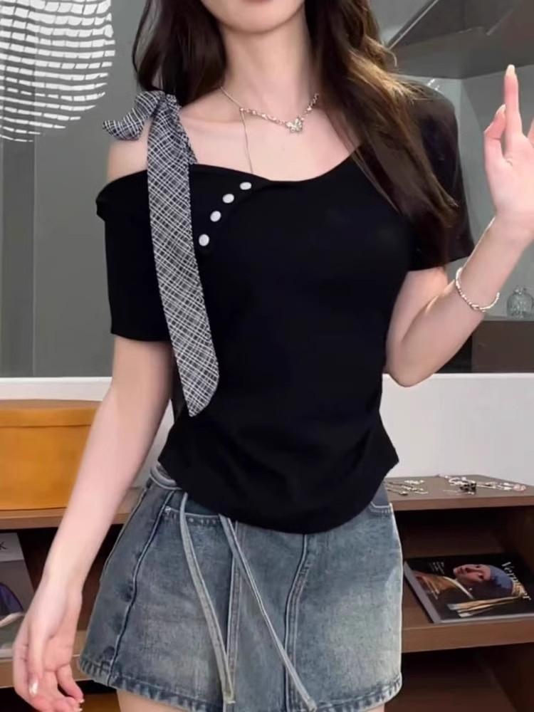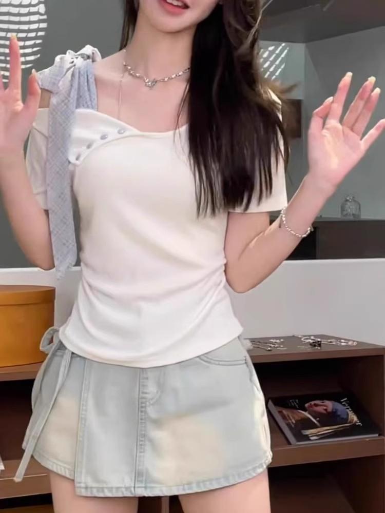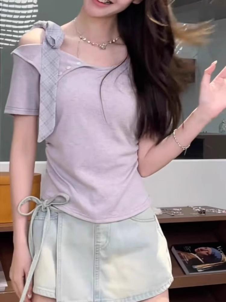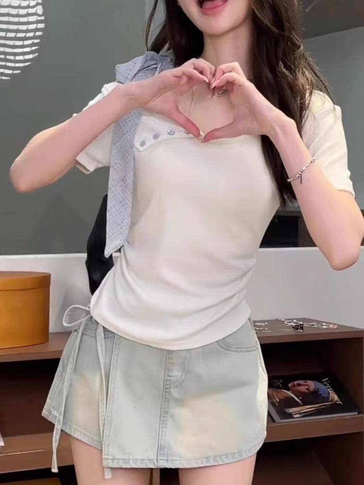 Verano 2025 Temperamento Suave y Único Top Ajustado Diseño Nicho Chica Dulce y Hot Camiseta de Manga Corta de Moda para Mujer