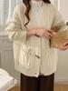 Cárdigan de Punto Vintage con Botones de Cuerno Trenzado para Mujer, Nuevo Otoño/Invierno Estilo Coreano y Japonés, Suéter Casual Holgado Talla Extra Transfronterizo