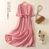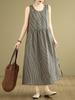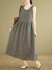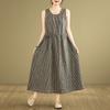 Vestido Francés Retro de Lino a Cuadros para Mujer Verano 2025 Temperamento Literario Cintura con Cordones Adelgazante Algodón Lino Vestido sin Mangas