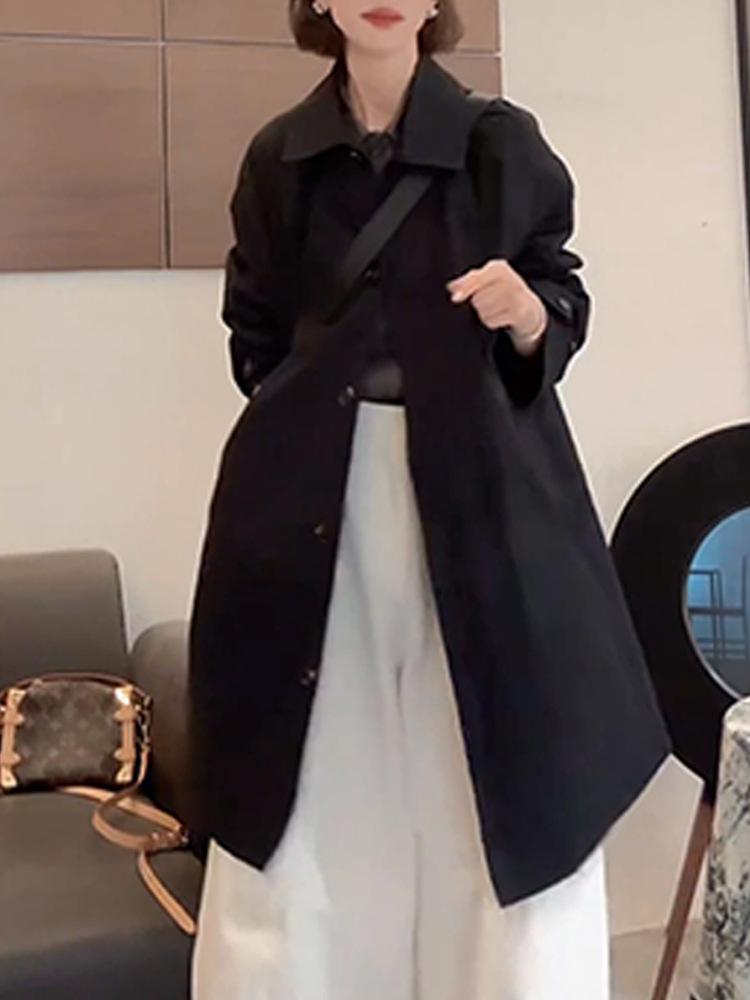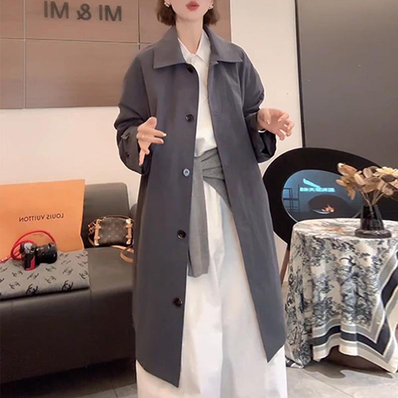 Abrigo trench de temperamento casual estilo coreano para mujer 2025 primavera y otoño nuevo abrigo de longitud media estilo británico top petite