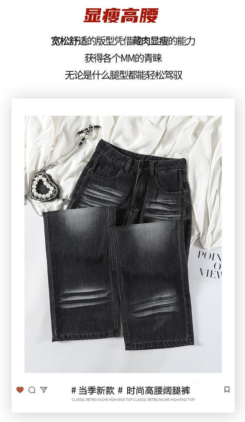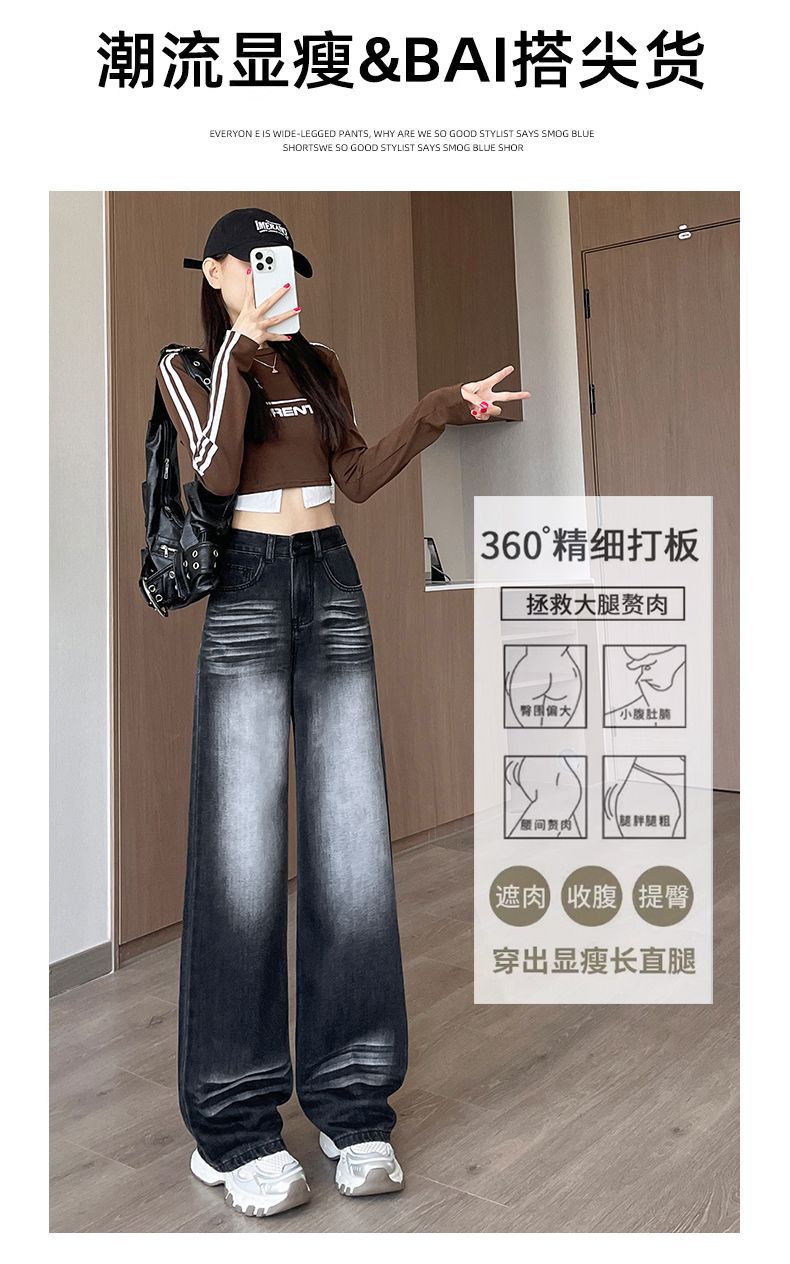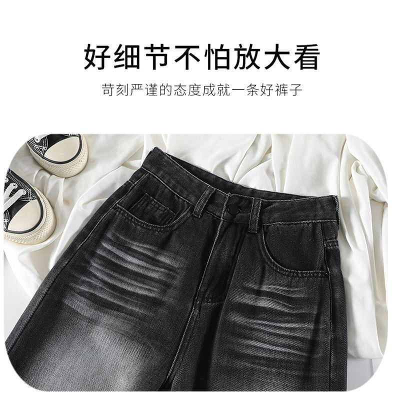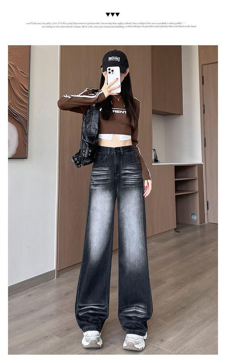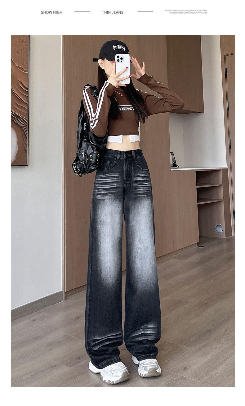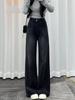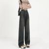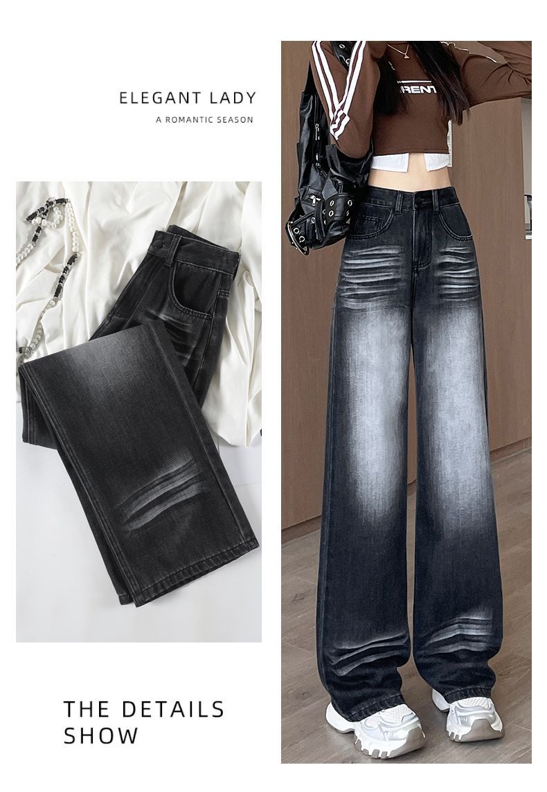 Jeans Retro Americanos Negros y Grises para Mujer de Pierna Ancha Nuevos Otoño 2025 Lavados Rectos de Cintura Alta Sueltos Pantalones Largos hasta el Piso