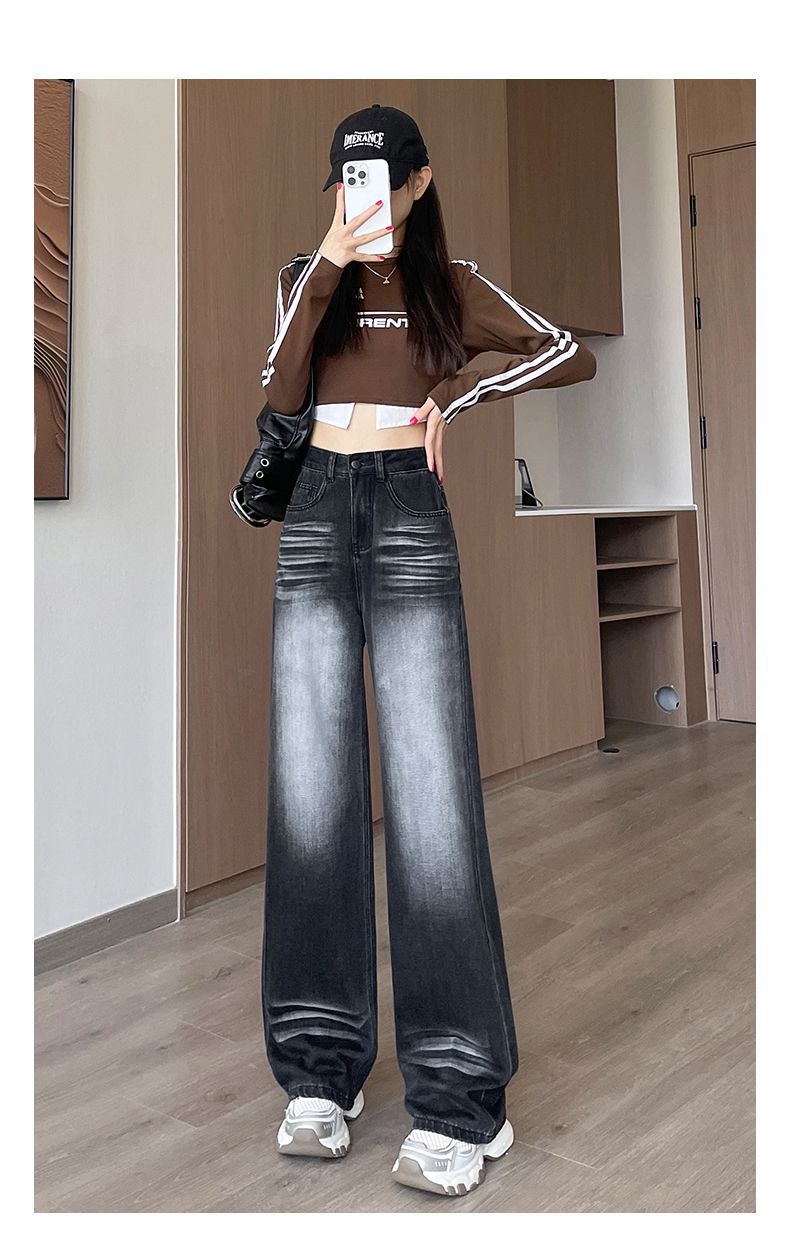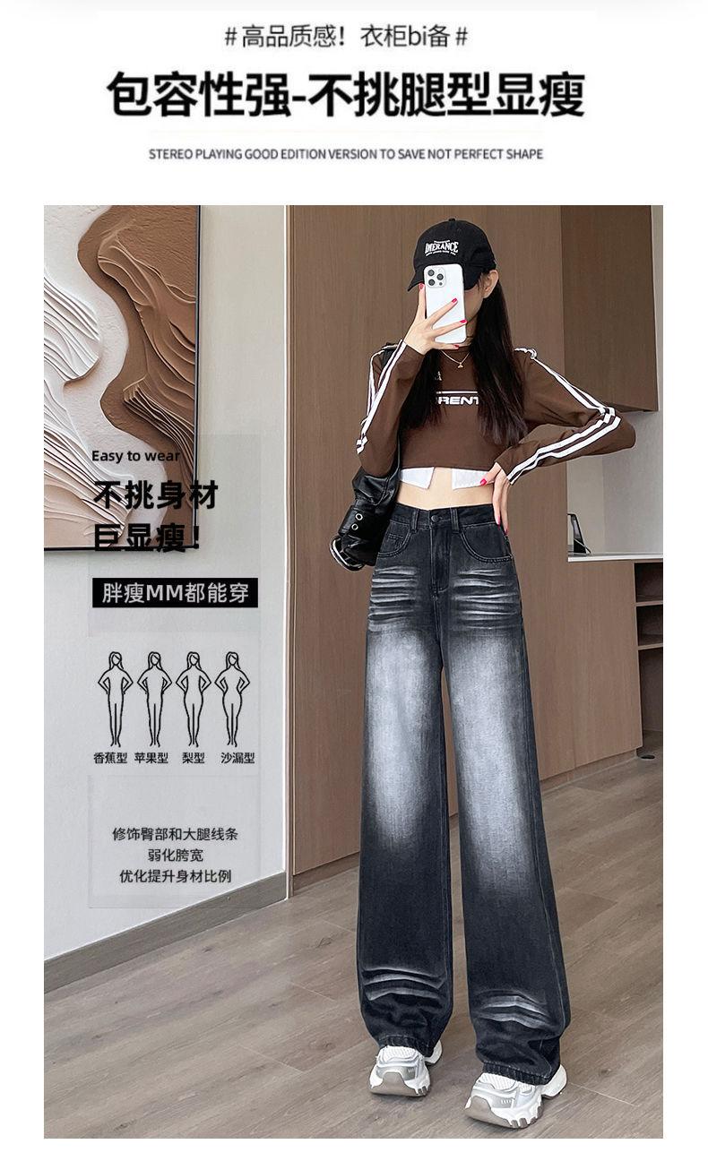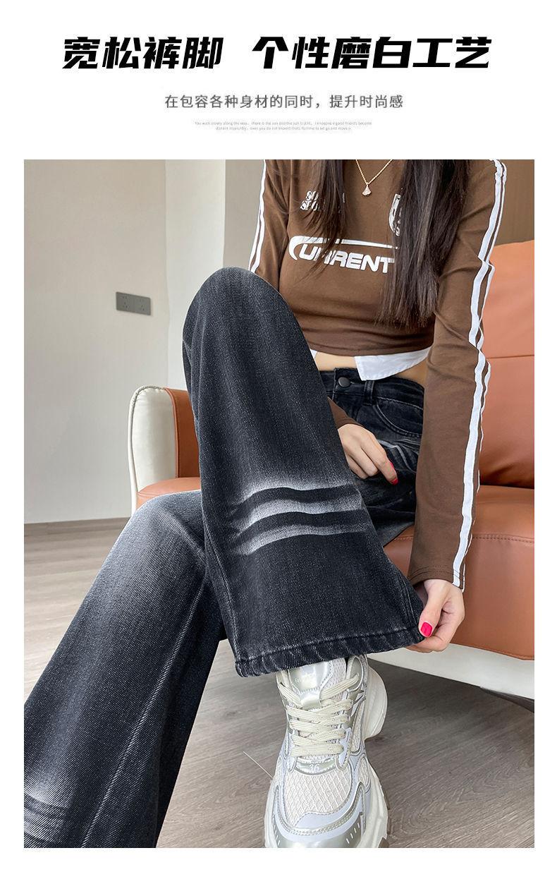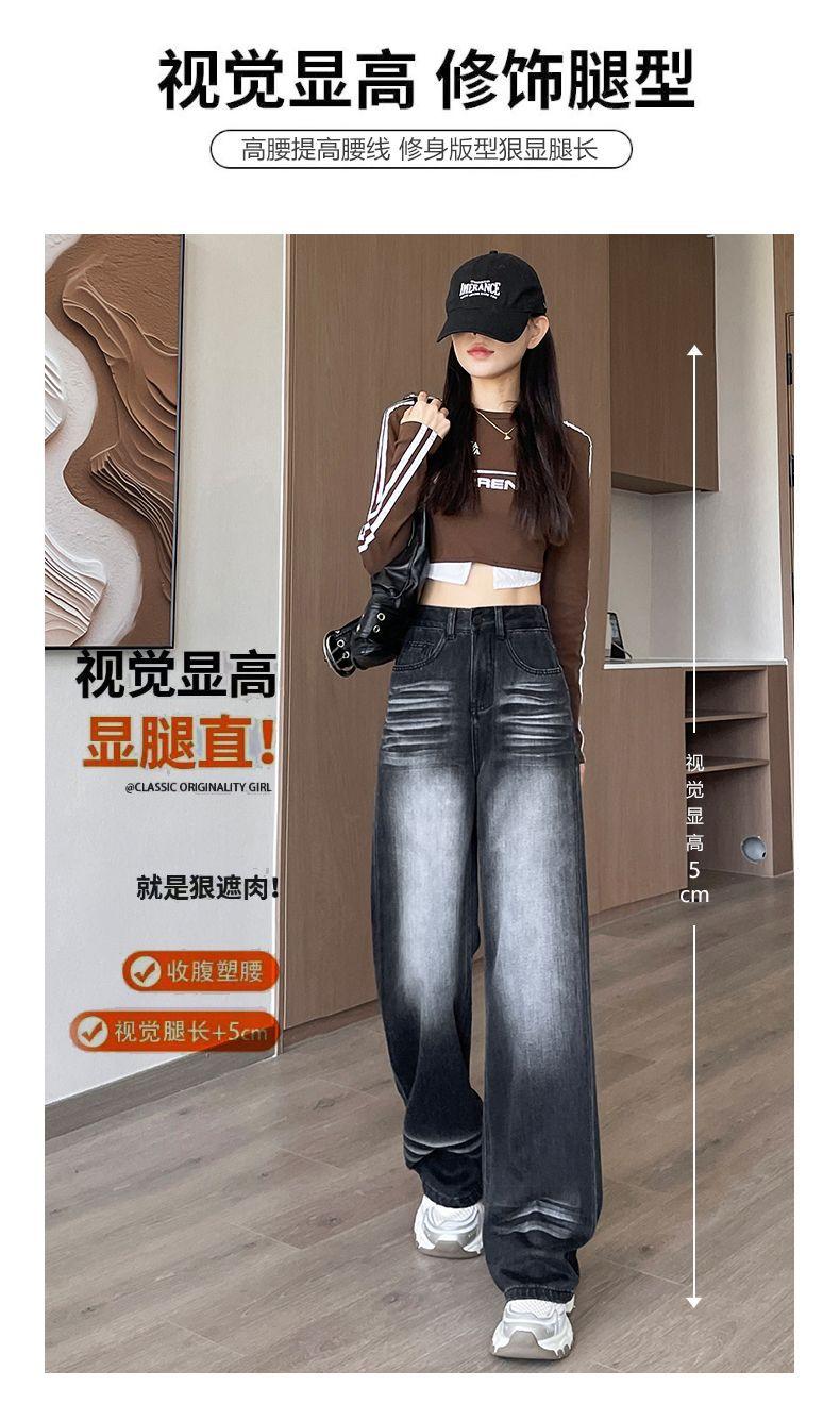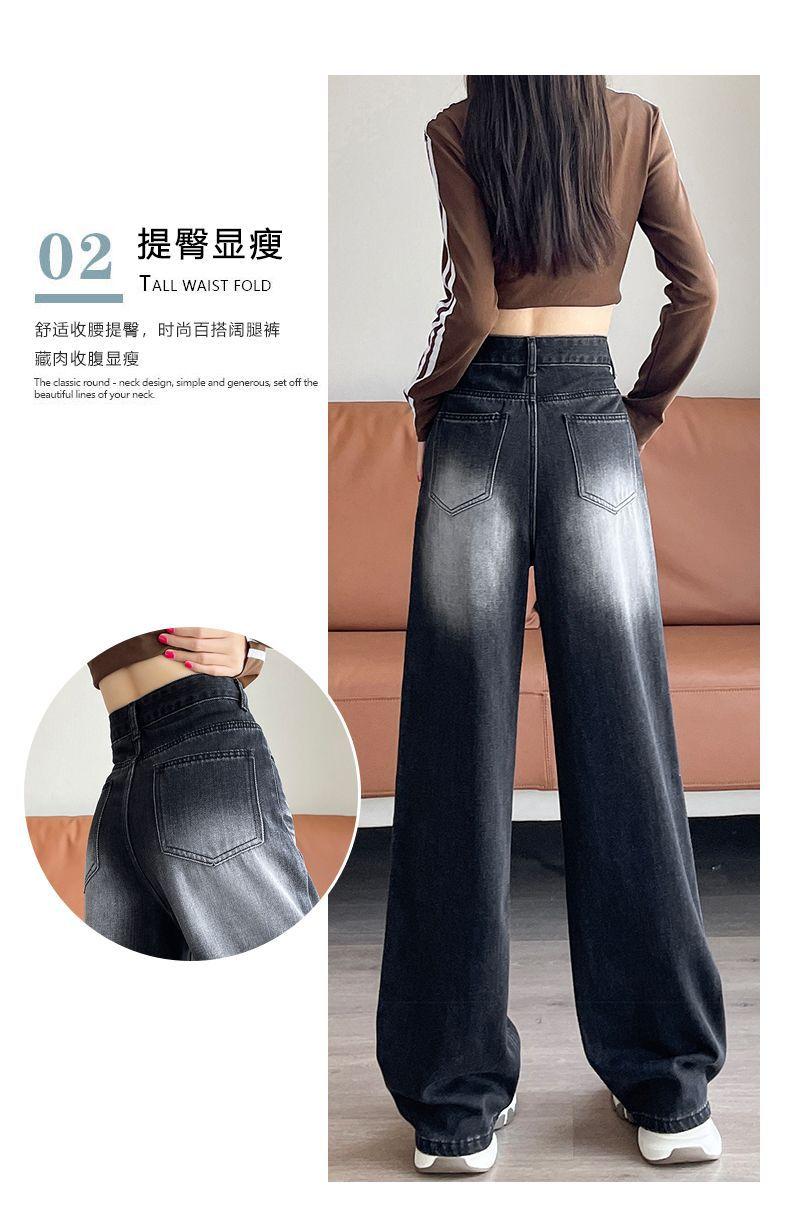 Jeans Retro Americanos Negros y Grises para Mujer de Pierna Ancha Nuevos Otoño 2025 Lavados Rectos de Cintura Alta Sueltos Pantalones Largos hasta el Piso