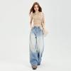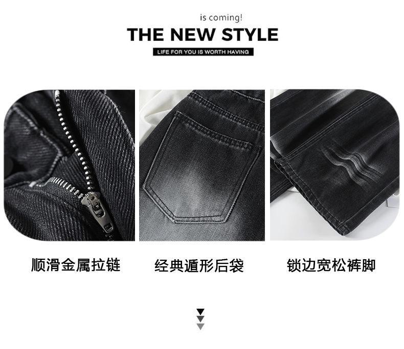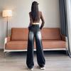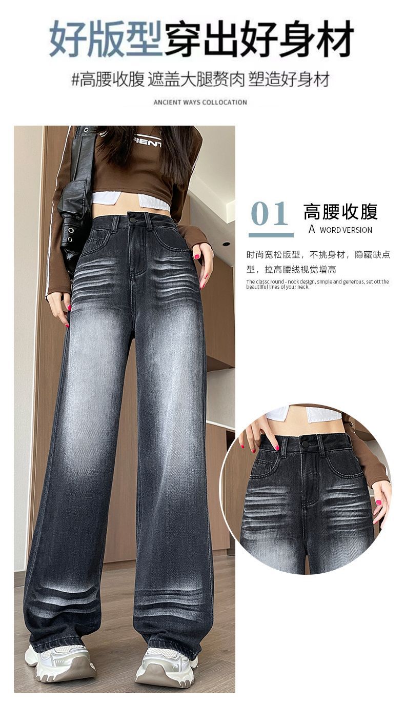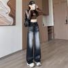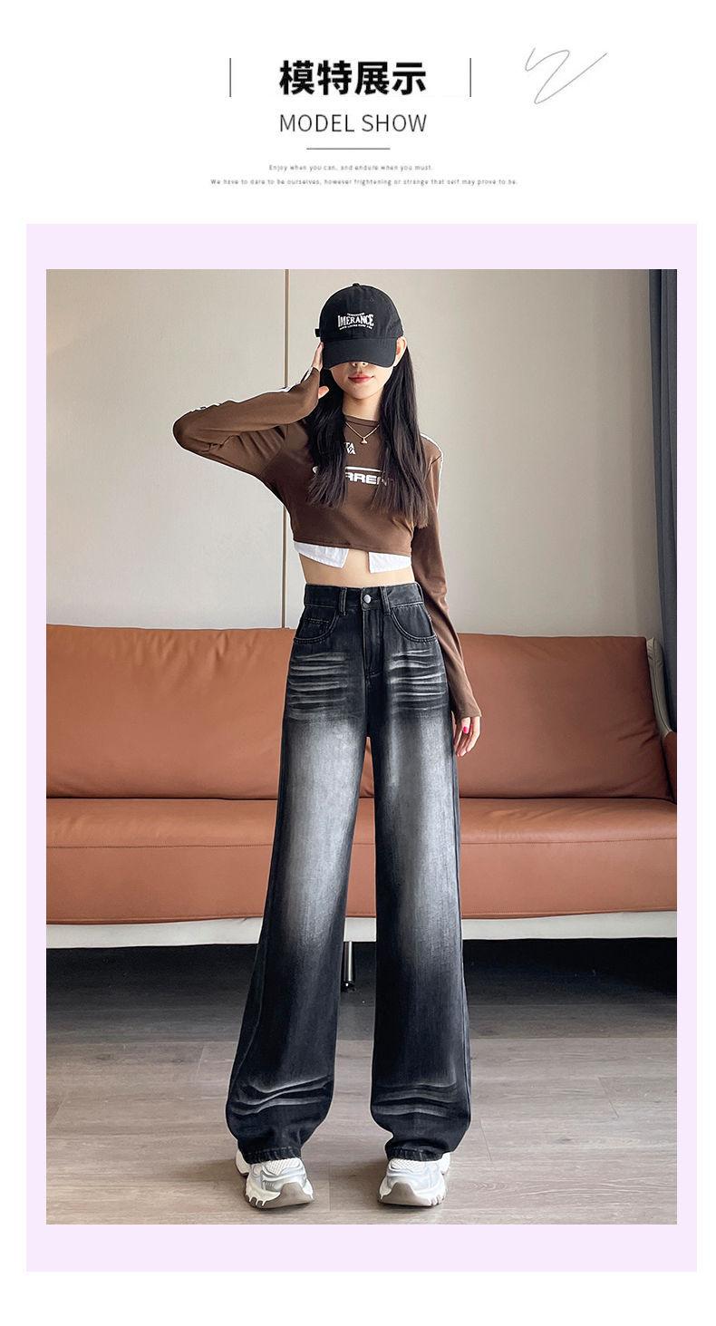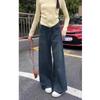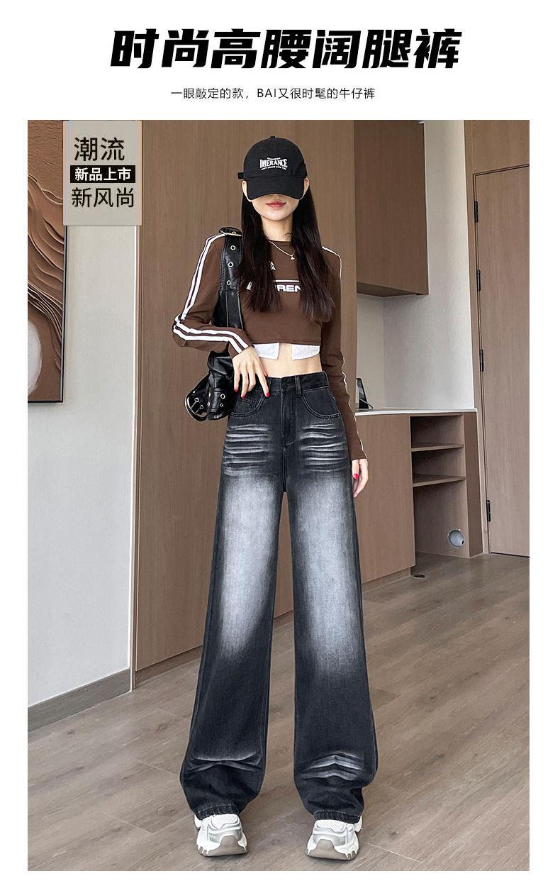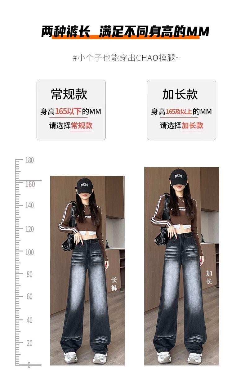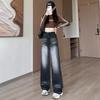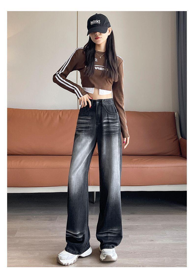 Jeans Retro Americanos Negros y Grises para Mujer de Pierna Ancha Nuevos Otoño 2025 Lavados Rectos de Cintura Alta Sueltos Pantalones Largos hasta el Piso